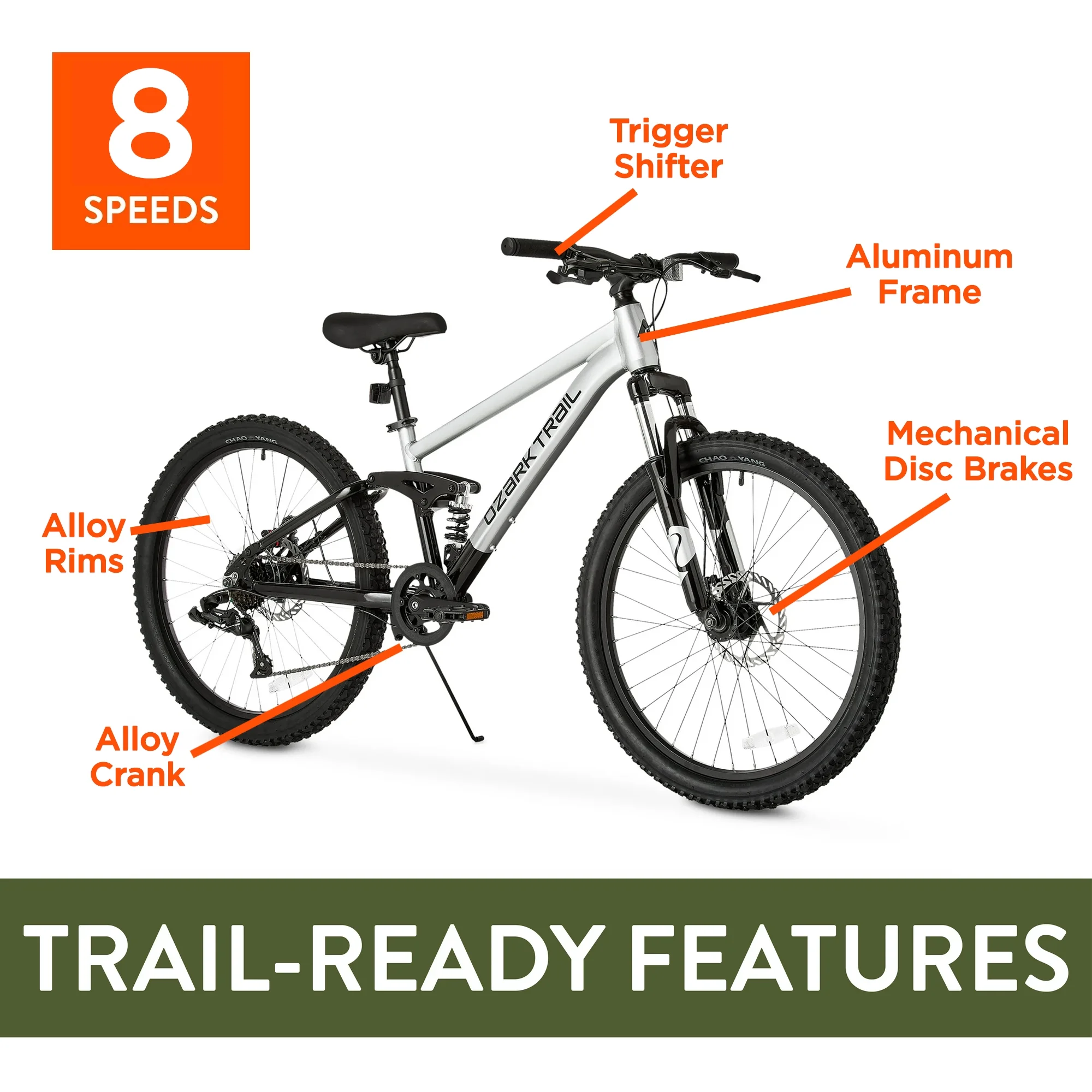 - 24x2.35 inch tires with double-wall alloy rims and alloy hubs