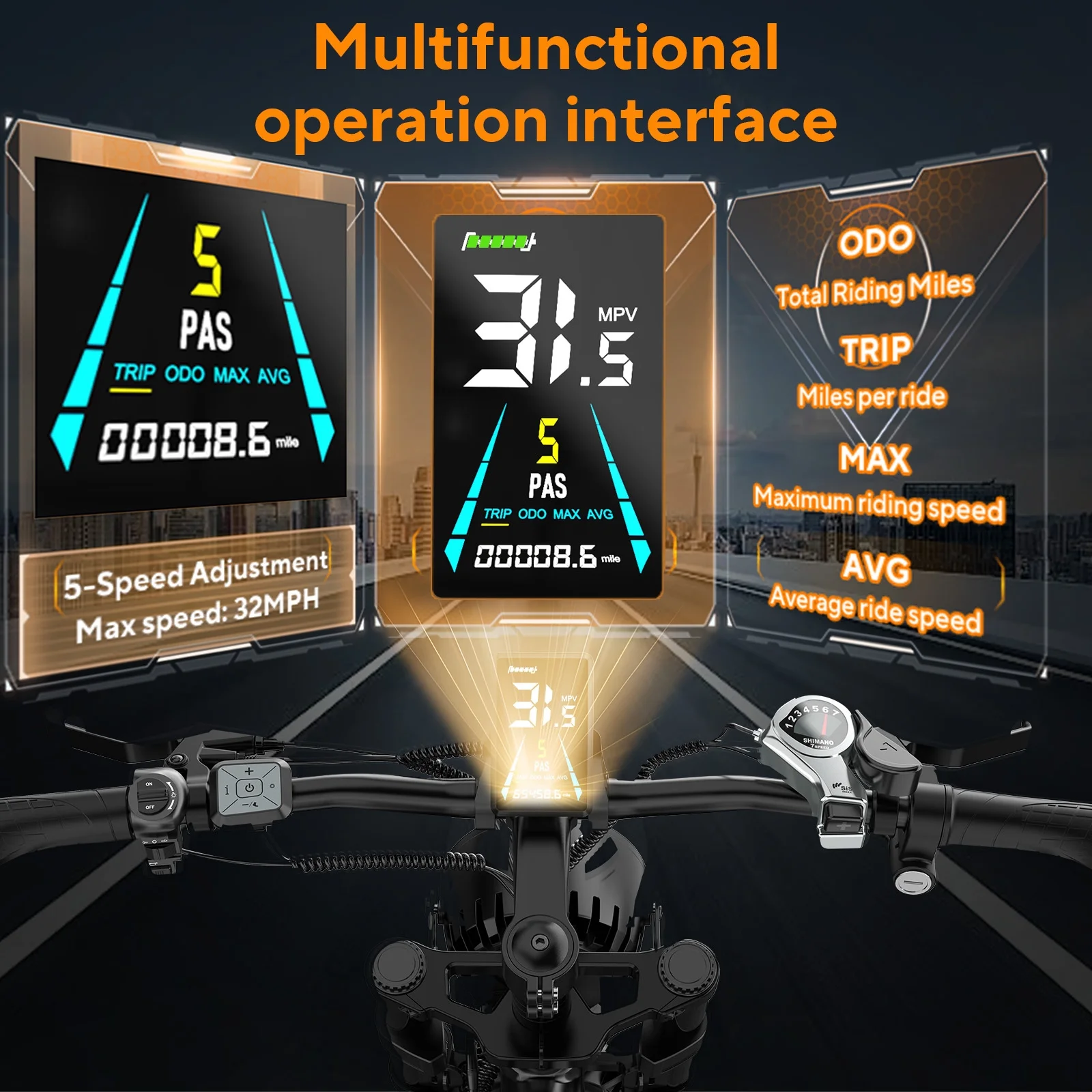 🛣️[Intelligent LCD Display]: This electric bike features a smart LCD display with upgraded chip technology, instantly showing speed, battery level, assist mode, and mileage. Optimize every ride with real-time data tracking for smarter, more efficient cycling.