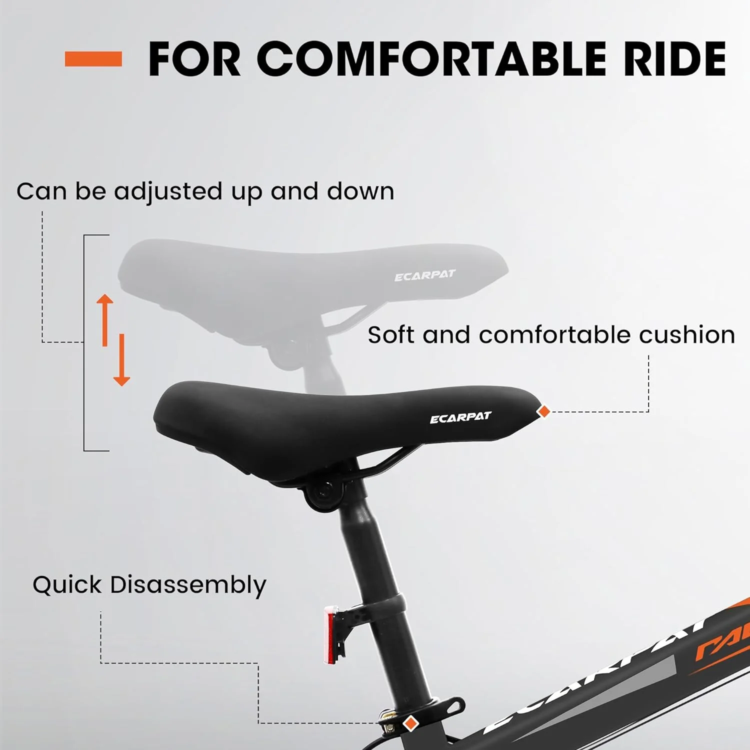 - [Sturdy High-Carbon Steel Frame] At the heart of this bike lies a high-carbon steel frame, engineered to withstand the rigors of off-road riding while keeping weight manageable for kid cyclists. The reinforced design ensures long-lasting durability, so your child can ride confidently through bumps, jumps, and rough terrain without worrying about wear and tear. The sleek, modern frame is not only tough but also aesthetically appealing, with bold colors and a sporty silhouette that kids will love.