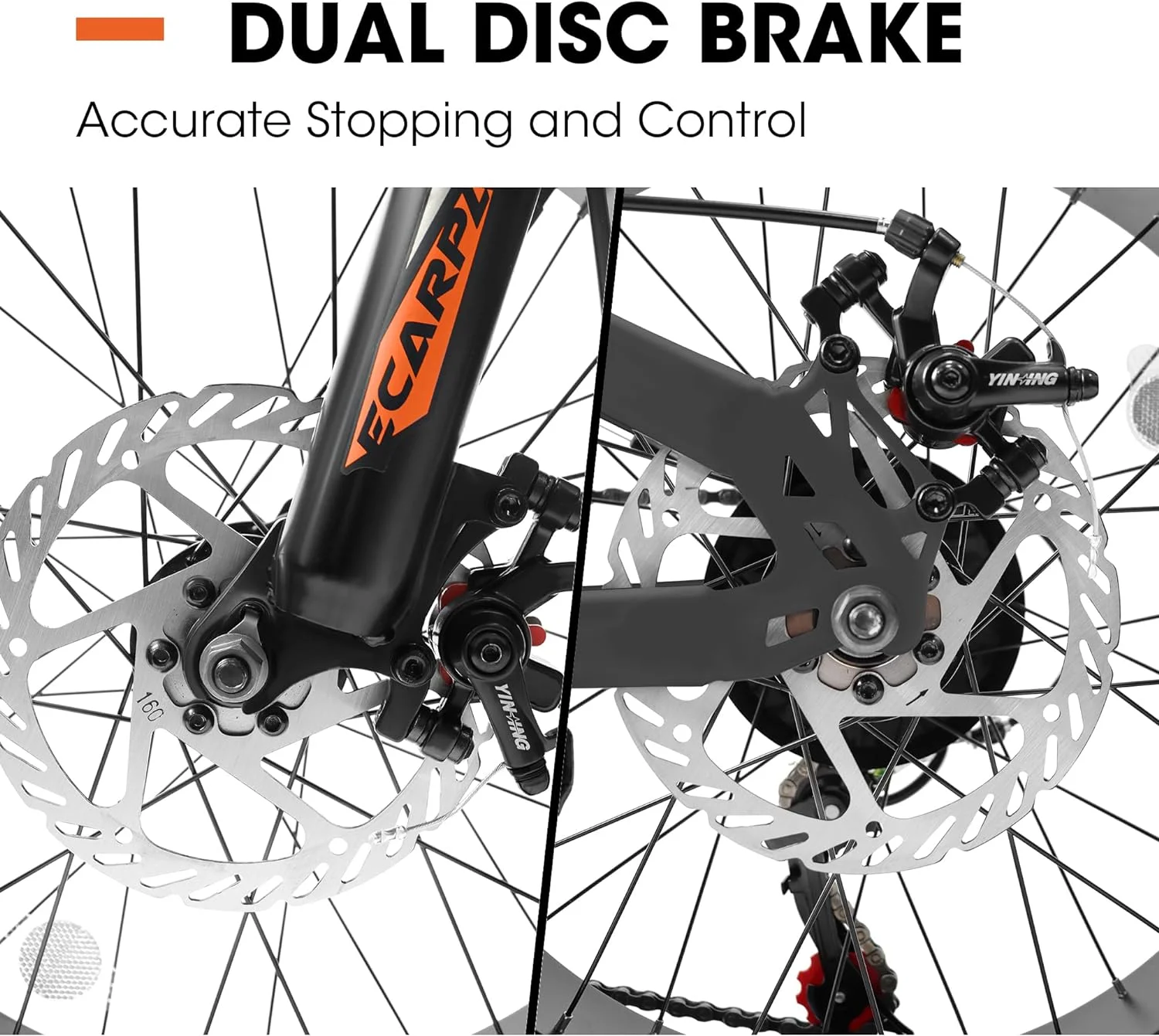 - [Dual Disc Brakes for Enhanced Safety] Safety is paramount, and this bike delivers with front and rear mechanical disc brakes. Offering superior stopping power compared to traditional rim brakes, they deliver consistent performance in wet or dry conditions. The responsive brake levers are ergonomically designed for little fingers, allowing quick, precise stops and giving parents peace of mind.