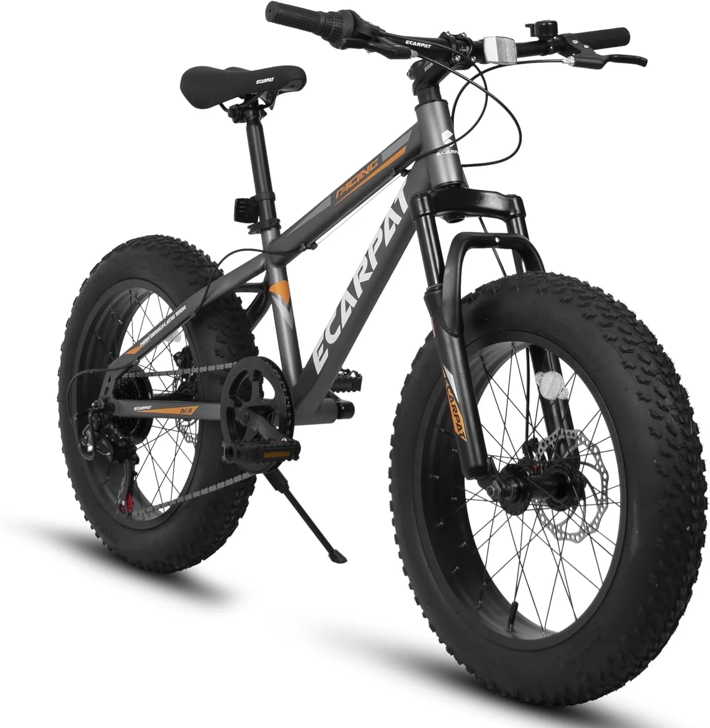 20 in Mountain Bike for 7 - 15 Years Old, 7 Speed Kids Bike with High Carbon Steel Frame, Fat Tire and Dual Disc Brake, Front Suspension Mountain Bicycle Gift for Boys Girls, Grey - Orange