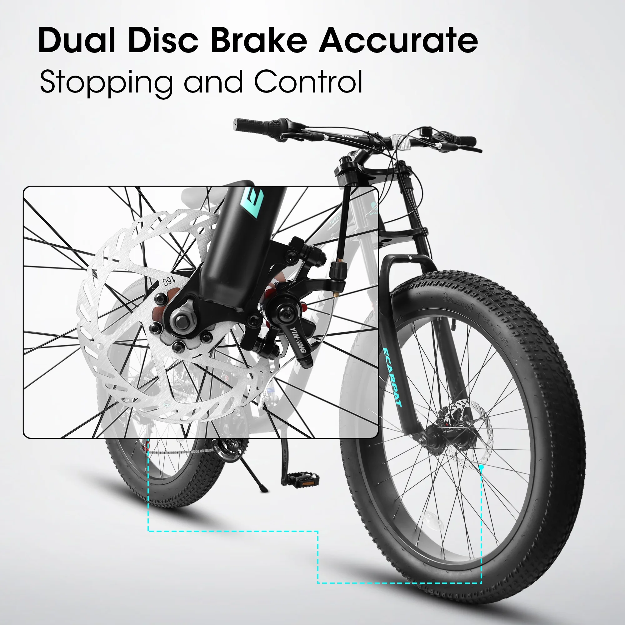 - 【4 INCH FAT TIRE】Width up to 4 inches, 5 times more wear resistance than ordinary bicycle tires. Strong grip and anti-skid, fully able to challenge any terrain, conquer any off-road trails and urban roads.