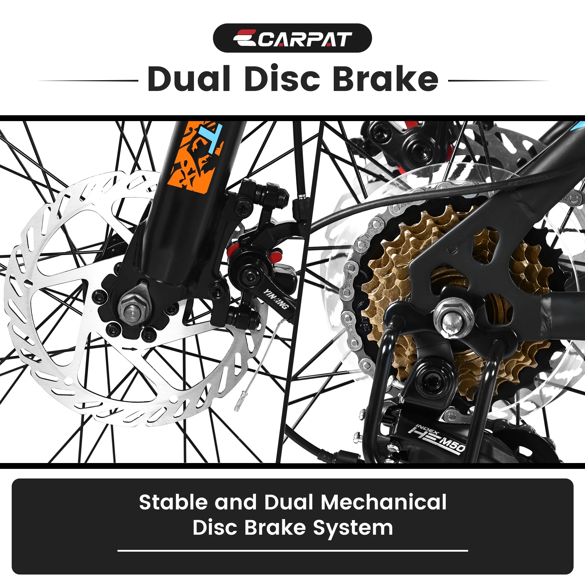 - Disc brakes and front suspension enhance your control