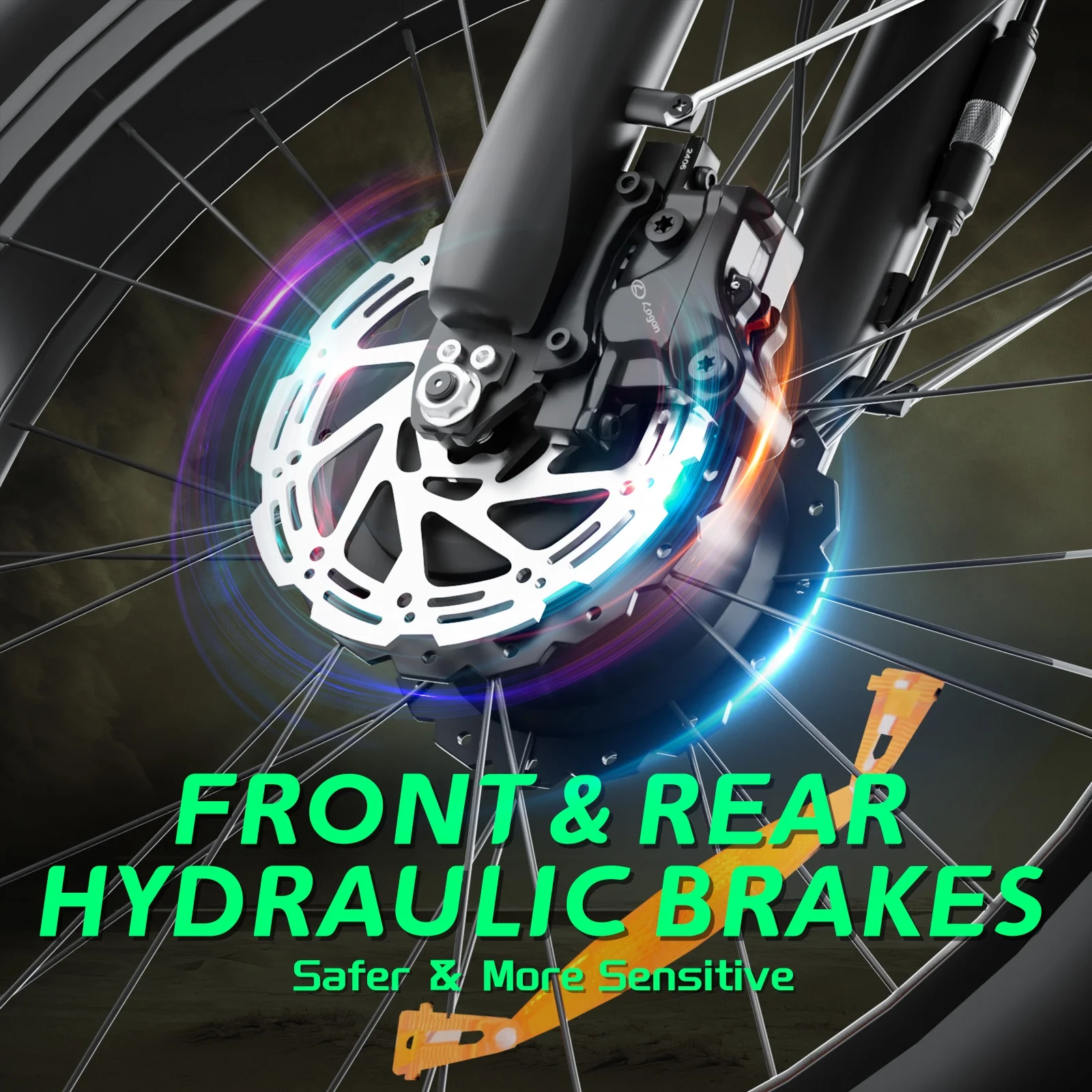- Hydraulic Disc Brakes & Suspension Fork: The hydraulic disc brakes enable the ebike to brake more quickly and smoothly when riding at high speed, shortening the braking distance even on a wet road. The lockable suspension fork helps you pass rough terrain with less effort. The 26" x 4" fat tires provide good grip and excellent shock absorption for greater durability