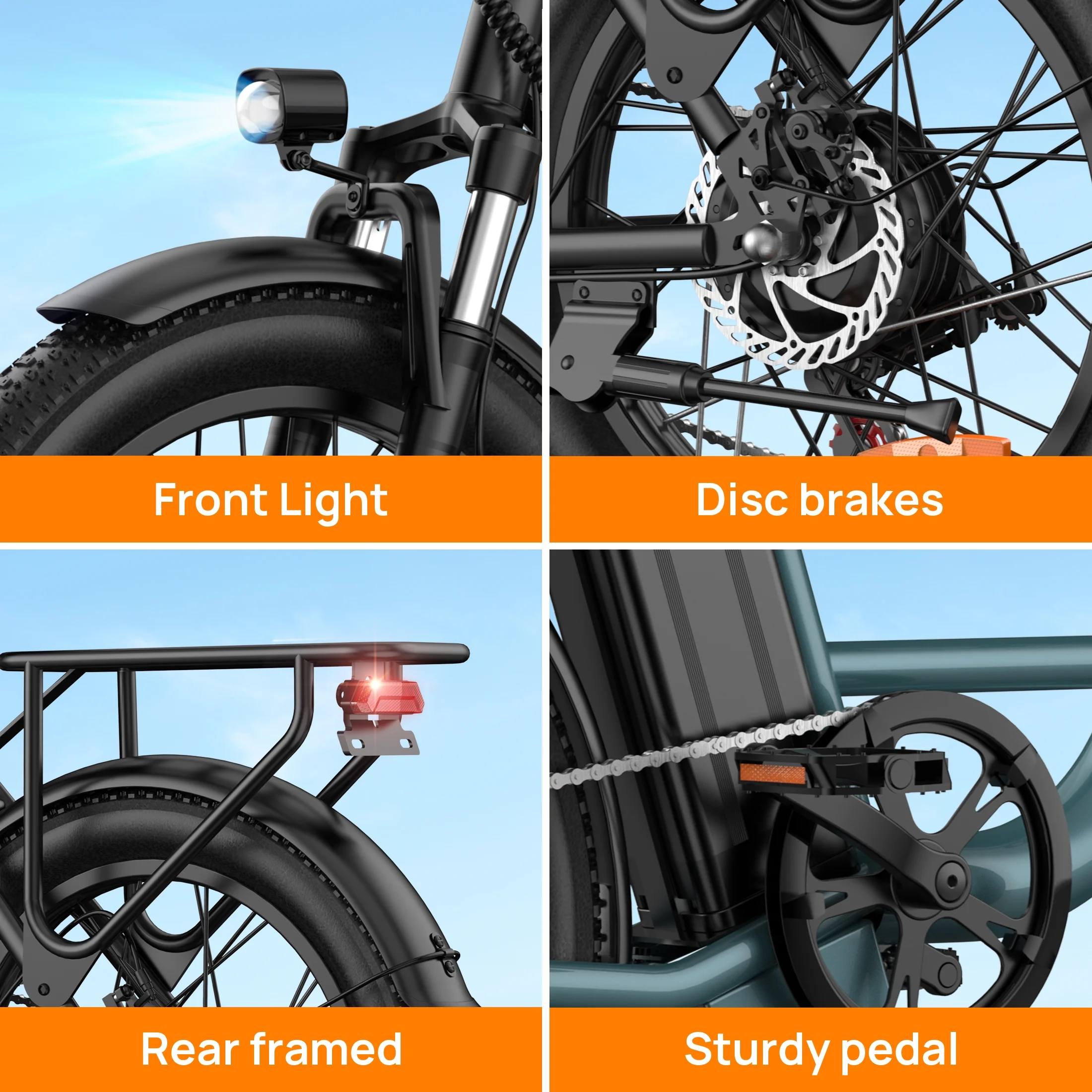 - 【Powerful Peak 750 Motor】: This electric bike is powered by Peak 750W brushless motor, easily reach a top speed of 20 MPH. With strong driving force and climbing hills ability, climbing 30°slopes, can conquer various terrains such as beaches, mountains, snow, city streets.