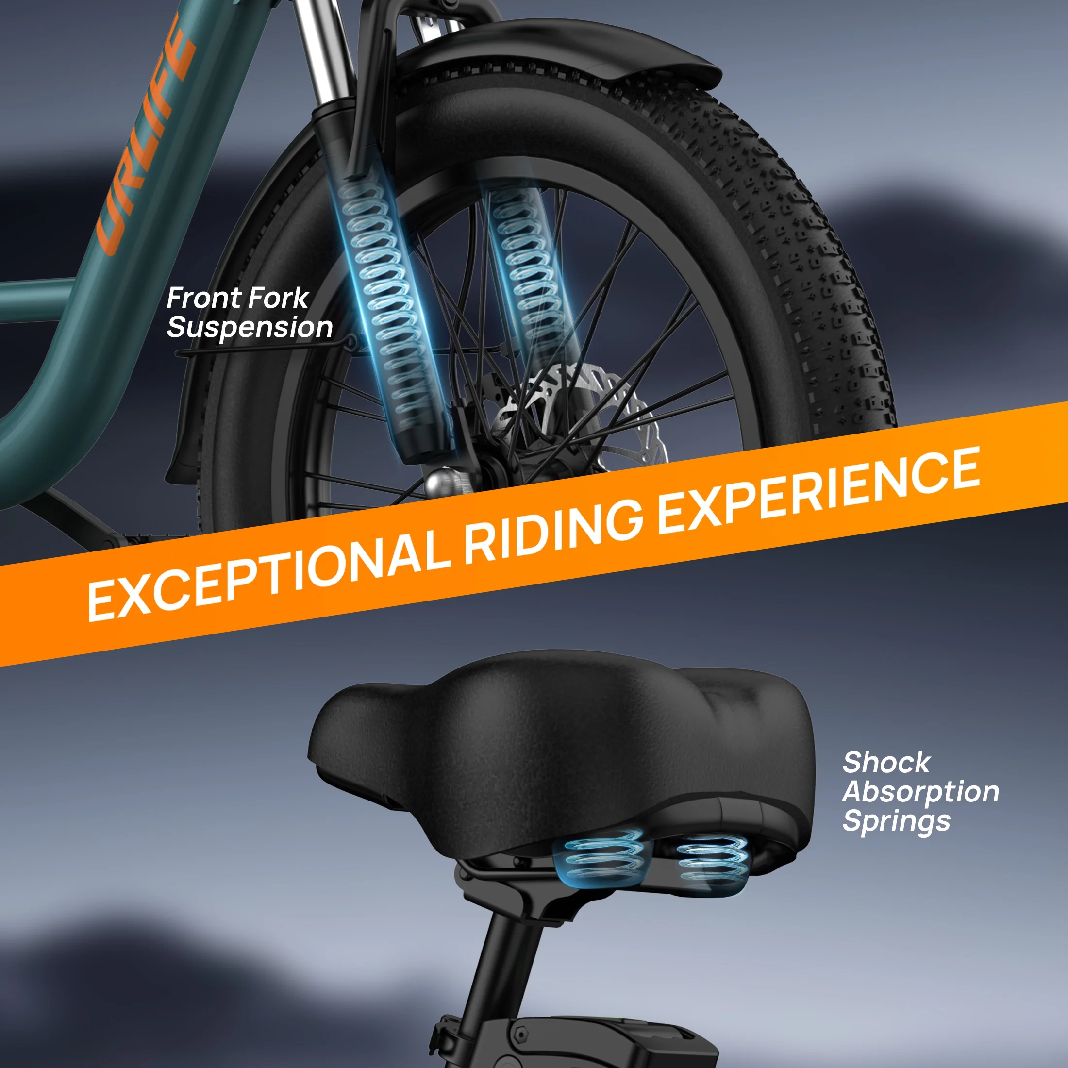 - 【Double shock absorption comfort system】: front fork and ergonomic seats, capable of sliding on bumpy and rugged terrain. Each component works synchronously, turning bumpy roads into easy journeys.