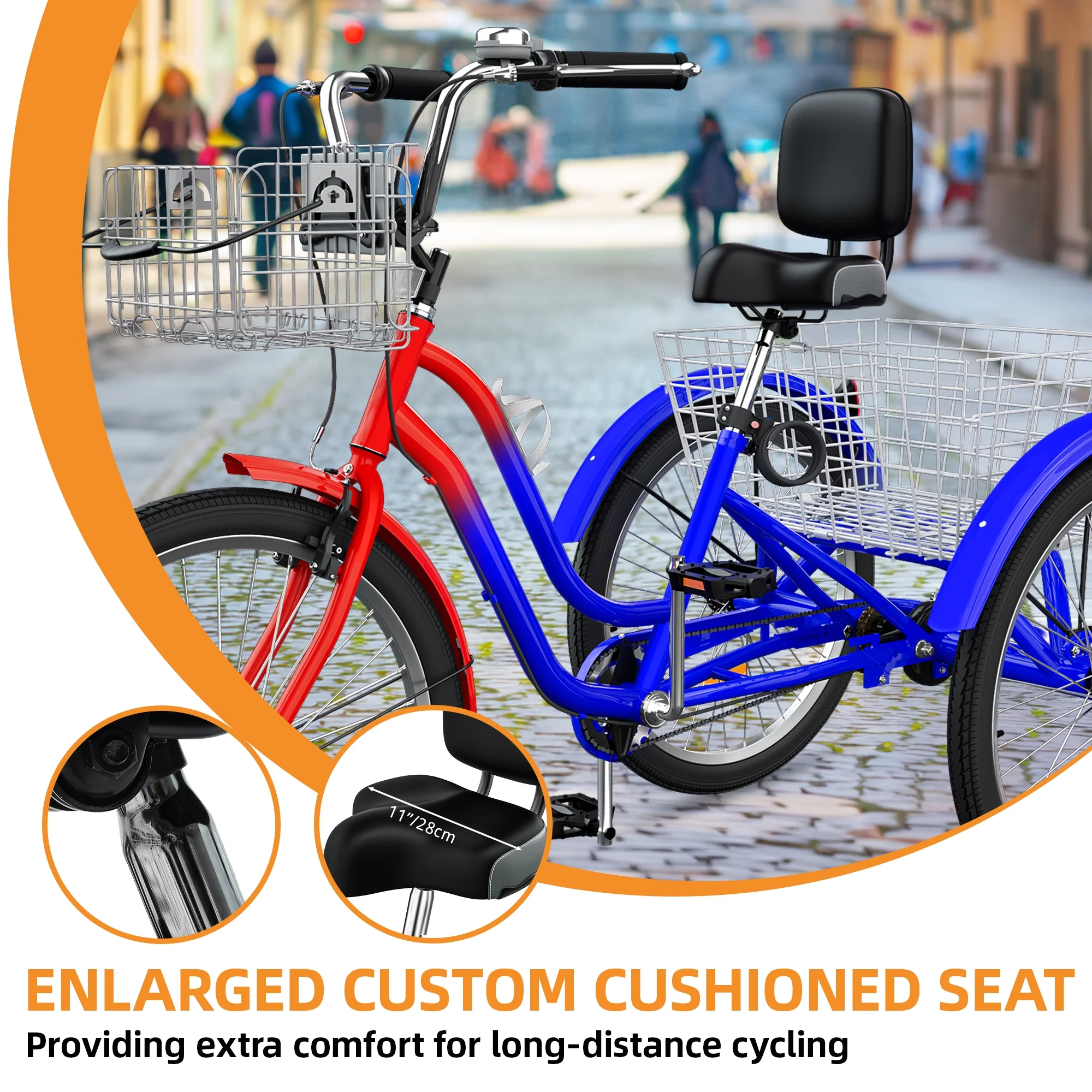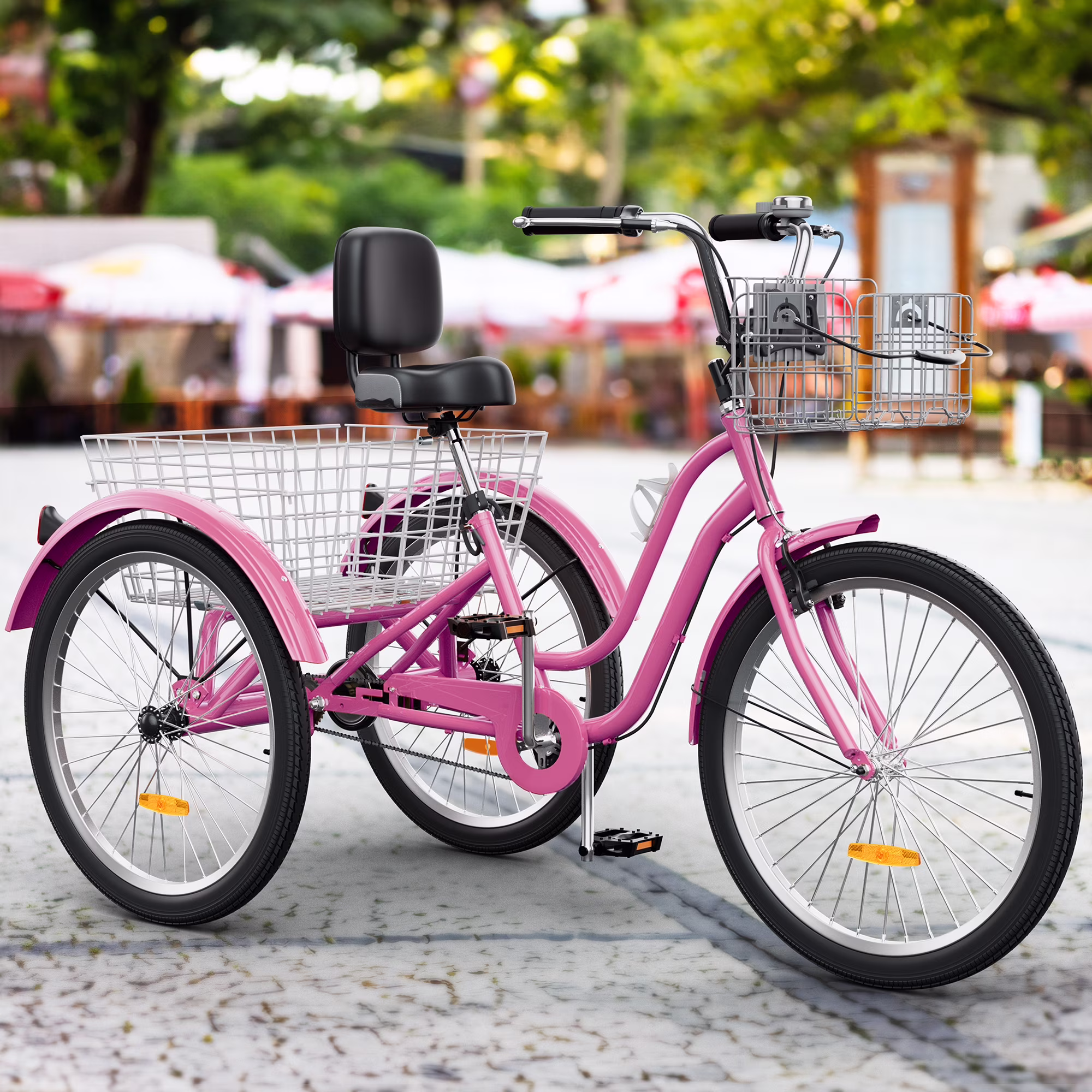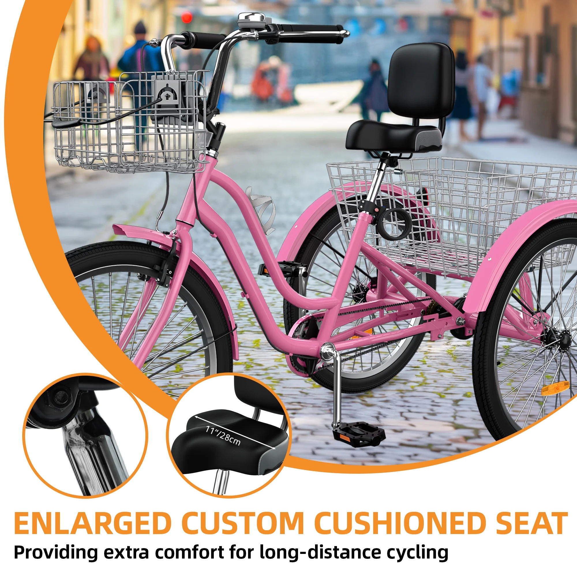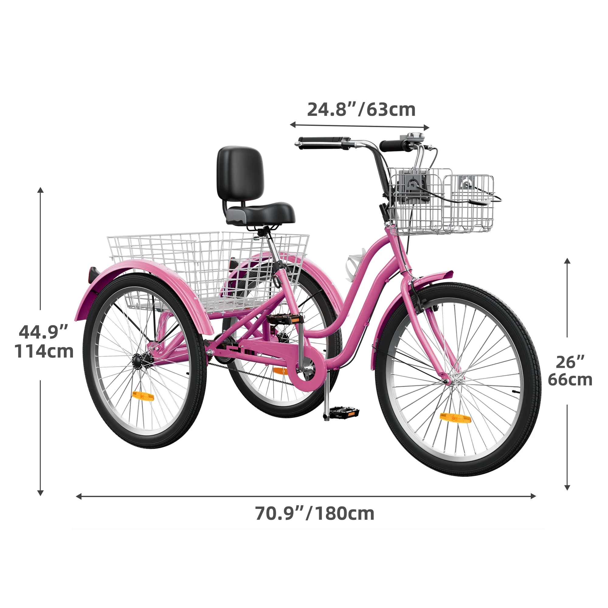 Dextrus 24 in 3 - Wheel Bike, Single Speed Adult Trike, Low Step - Through Cruiser with Front & Rear Baskets, Large Adjustable Seat with Backrest for Seniors, Men, and Women (Purple)