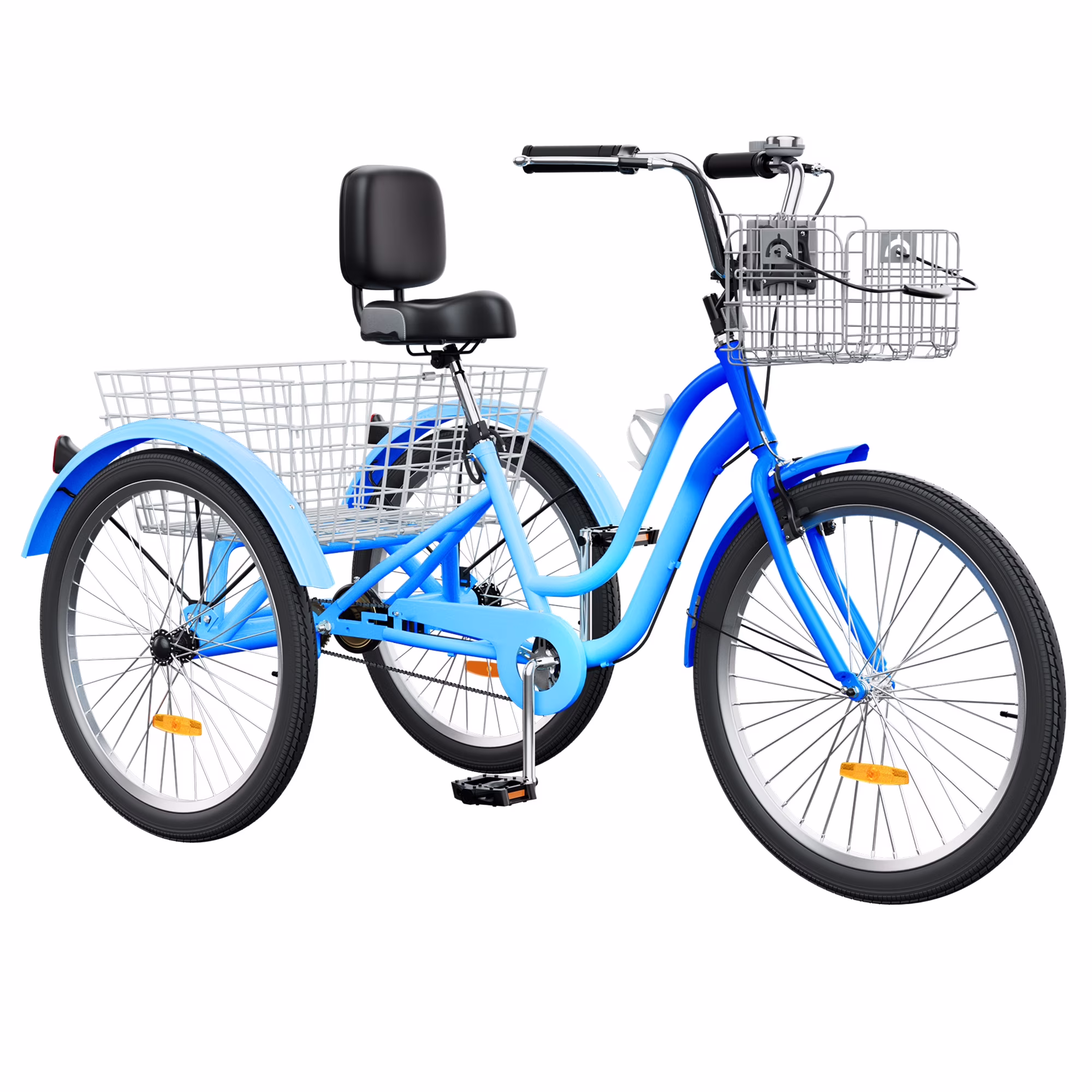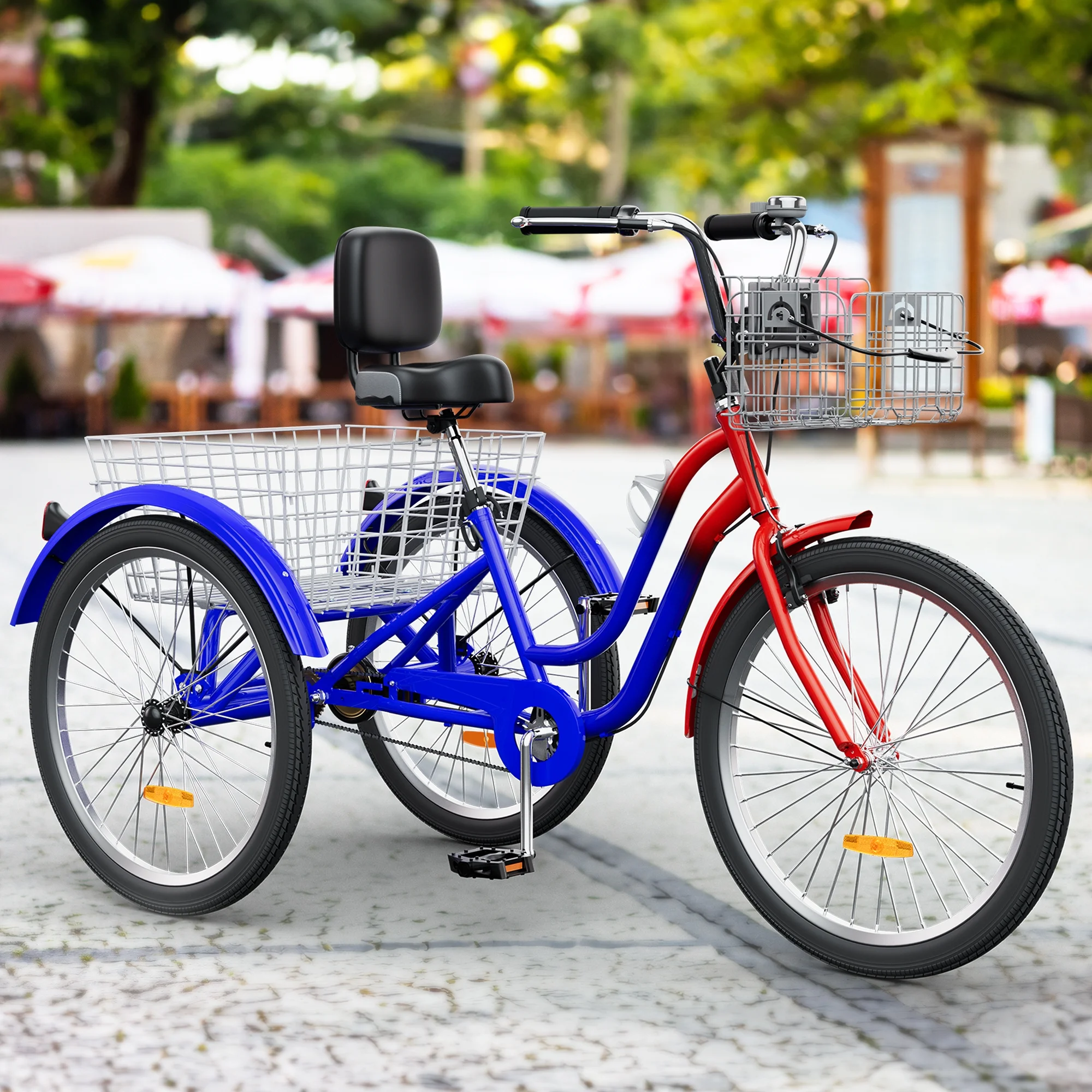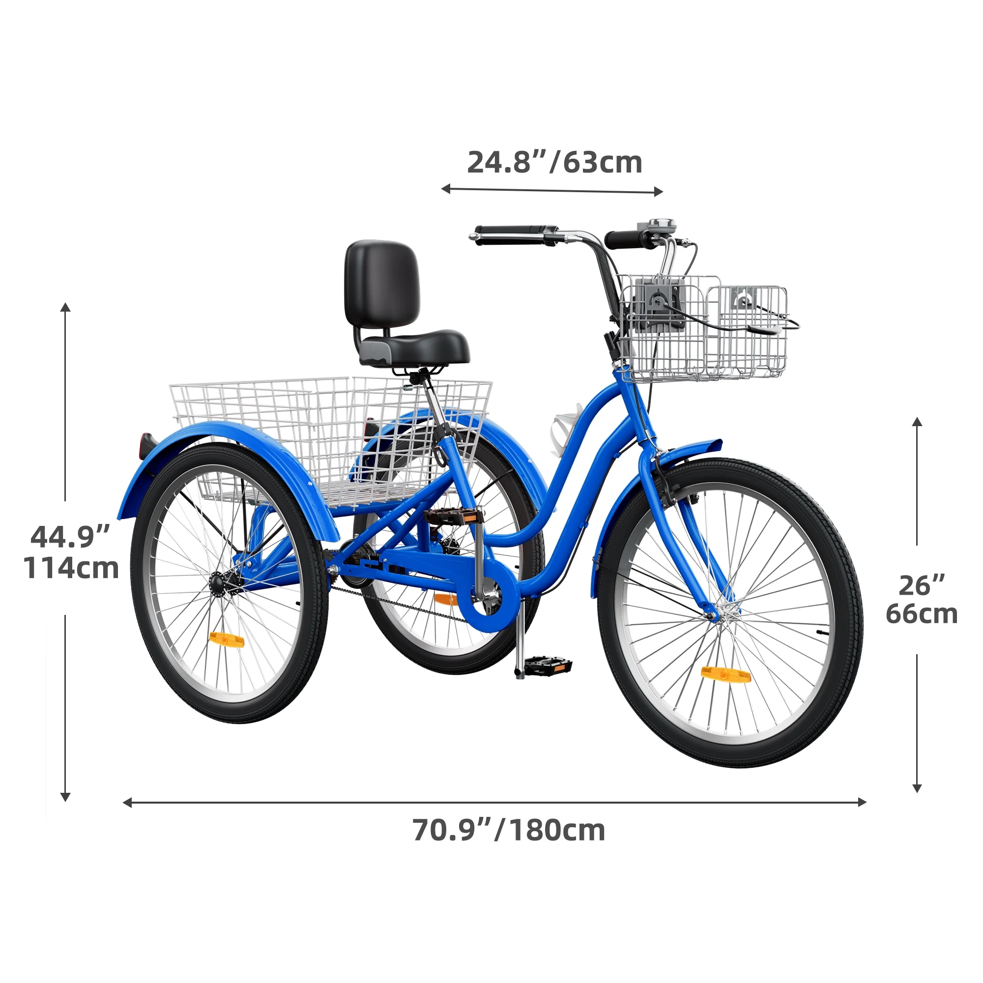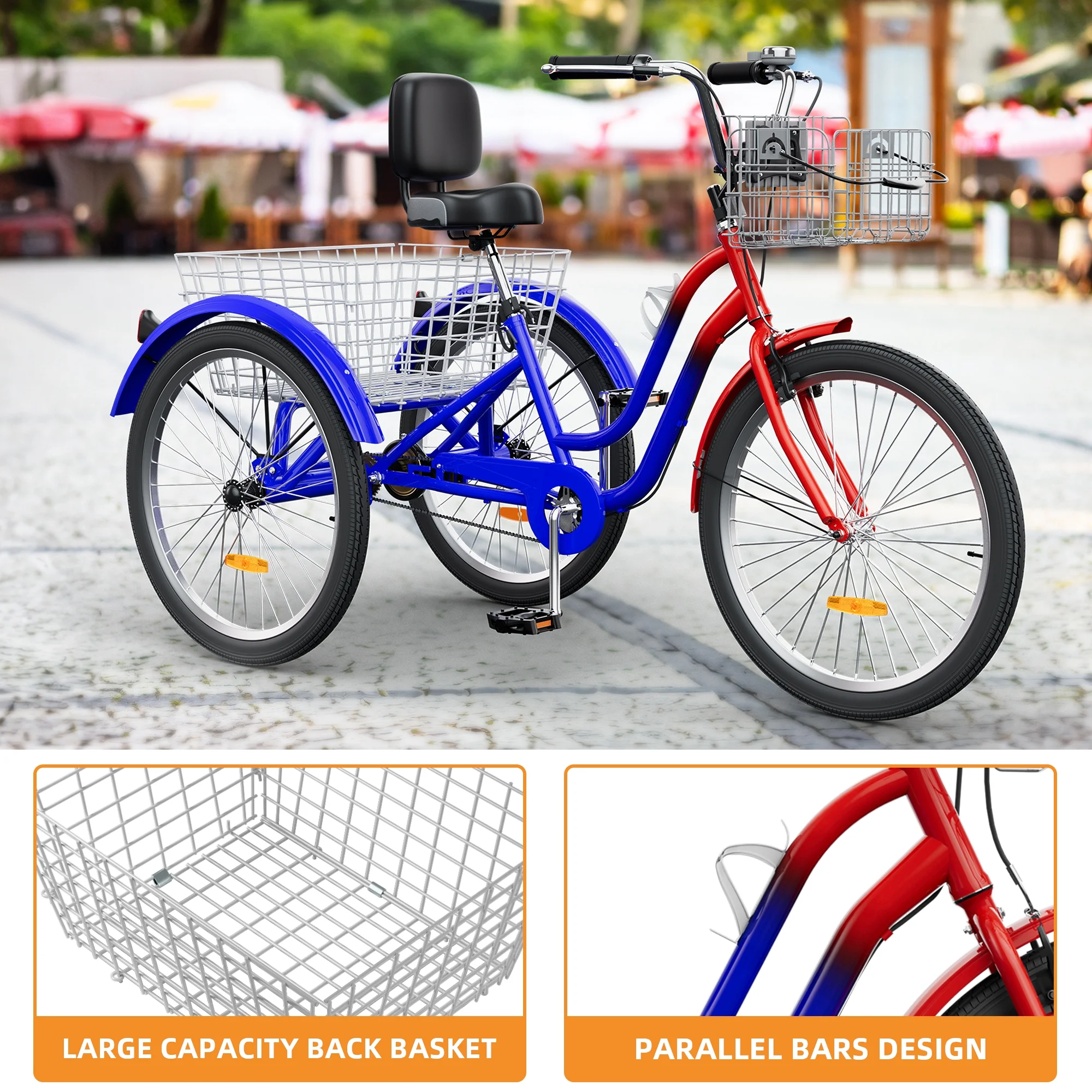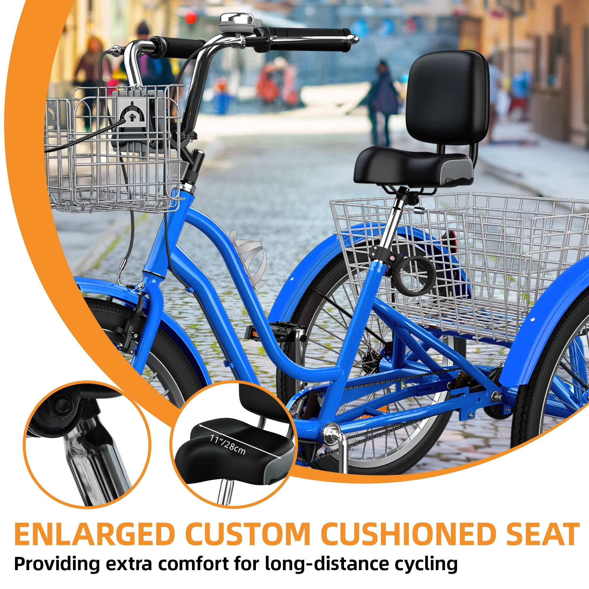 Dextrus 24 in 3 - Wheel Bike, Single Speed Adult Trike, Low Step - Through Cruiser with Front & Rear Baskets, Large Adjustable Seat with Backrest for Seniors, Men, and Women (Purple)