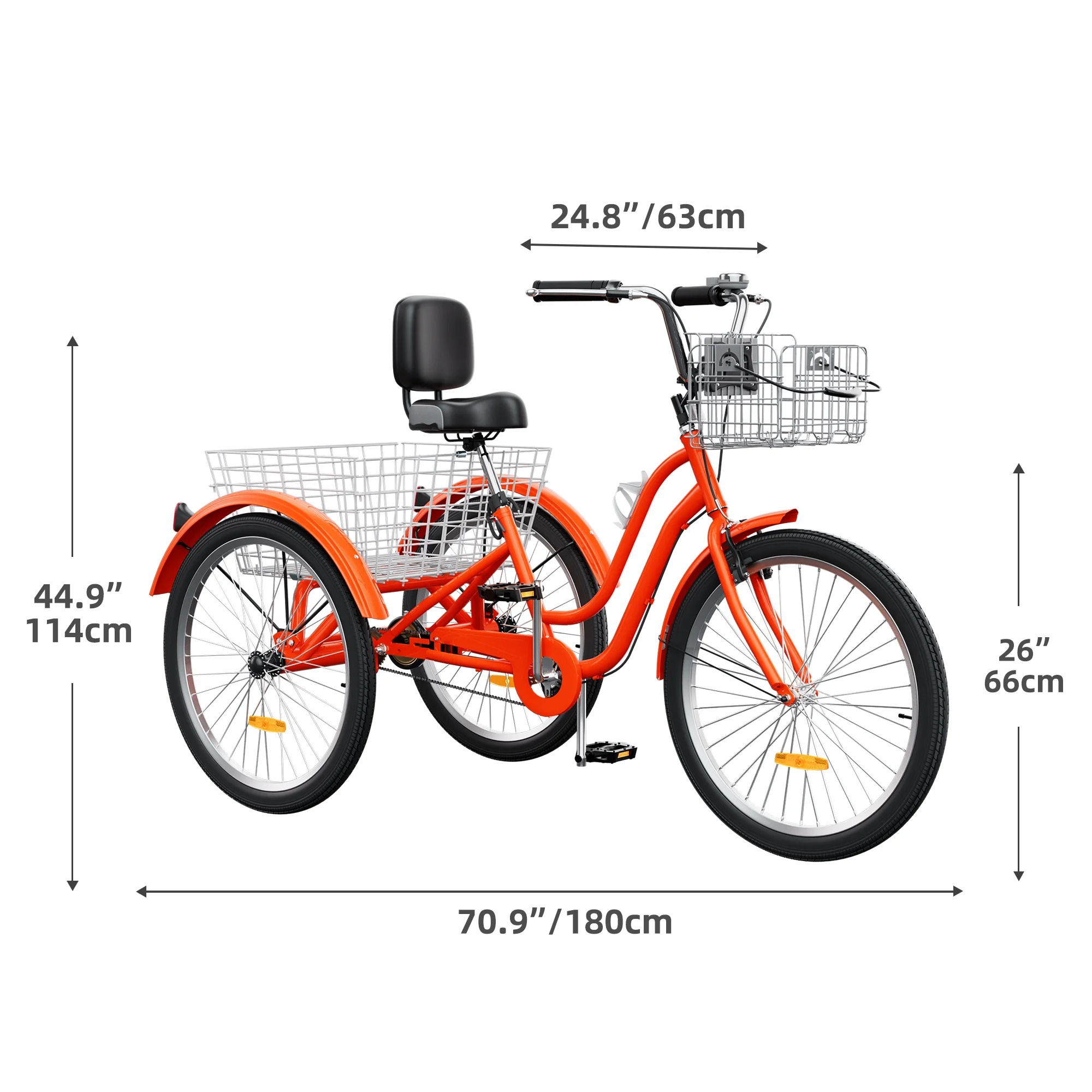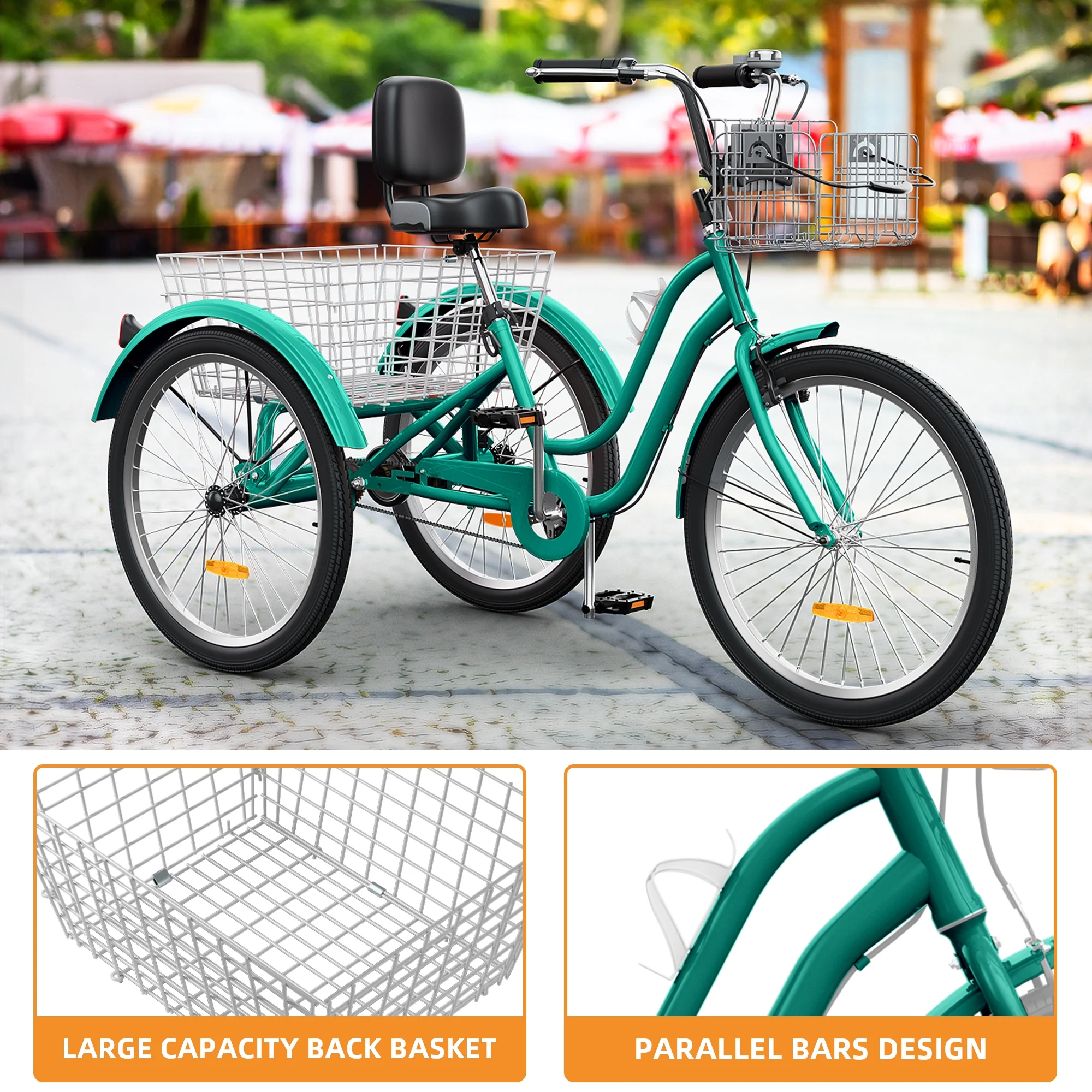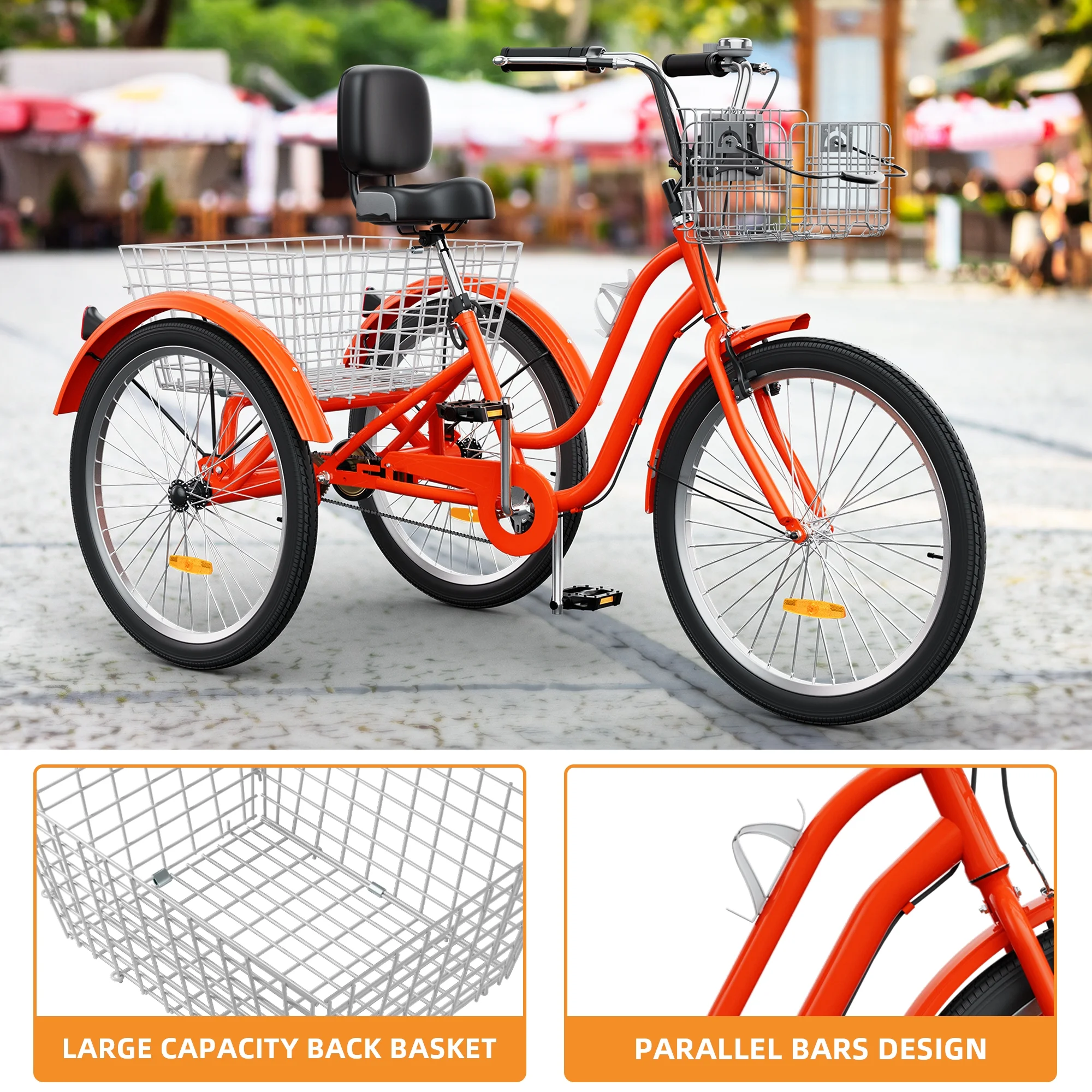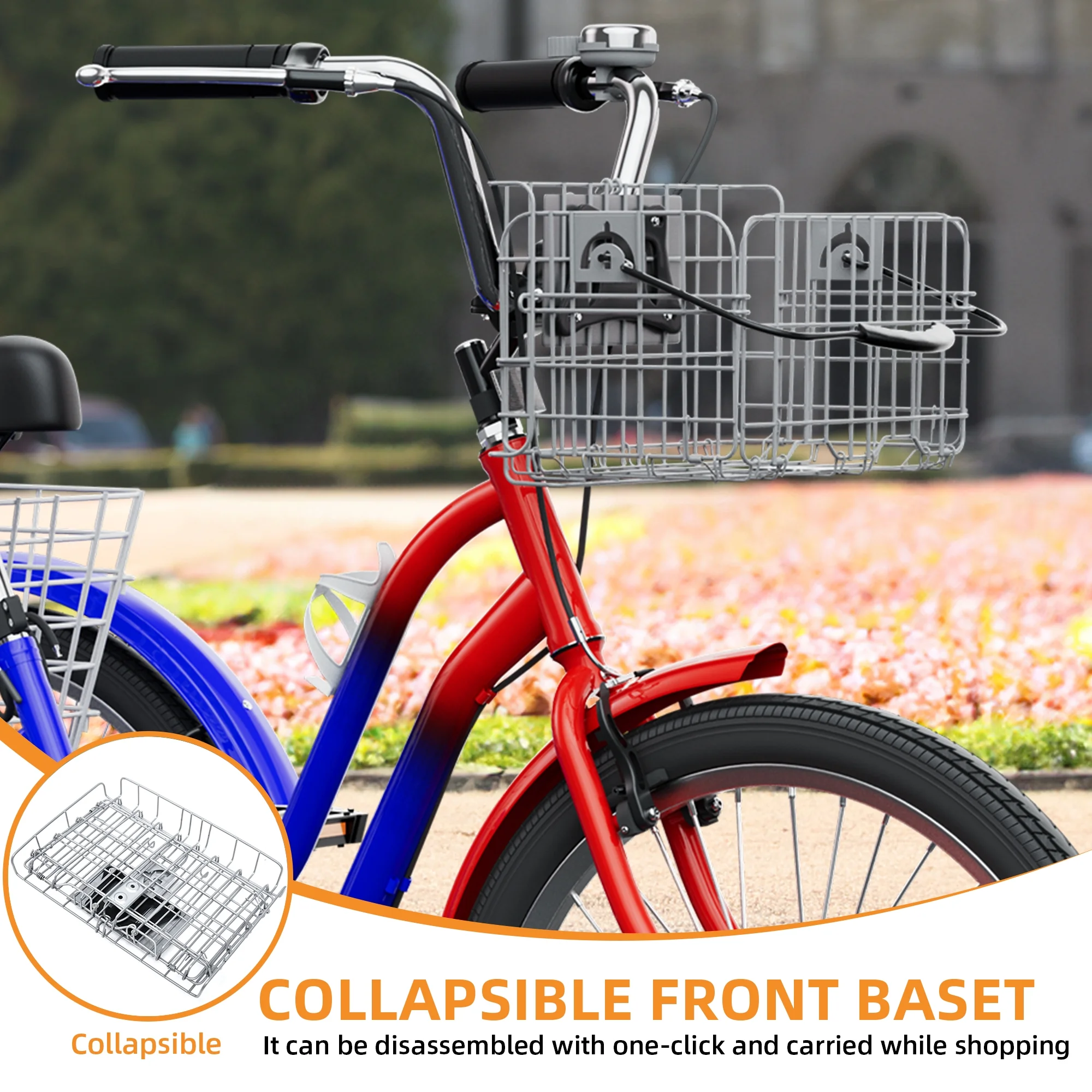 Dextrus 24 in 3 - Wheel Bike, Single Speed Adult Trike, Low Step - Through Cruiser with Front & Rear Baskets, Large Adjustable Seat with Backrest for Seniors, Men, and Women (Purple)