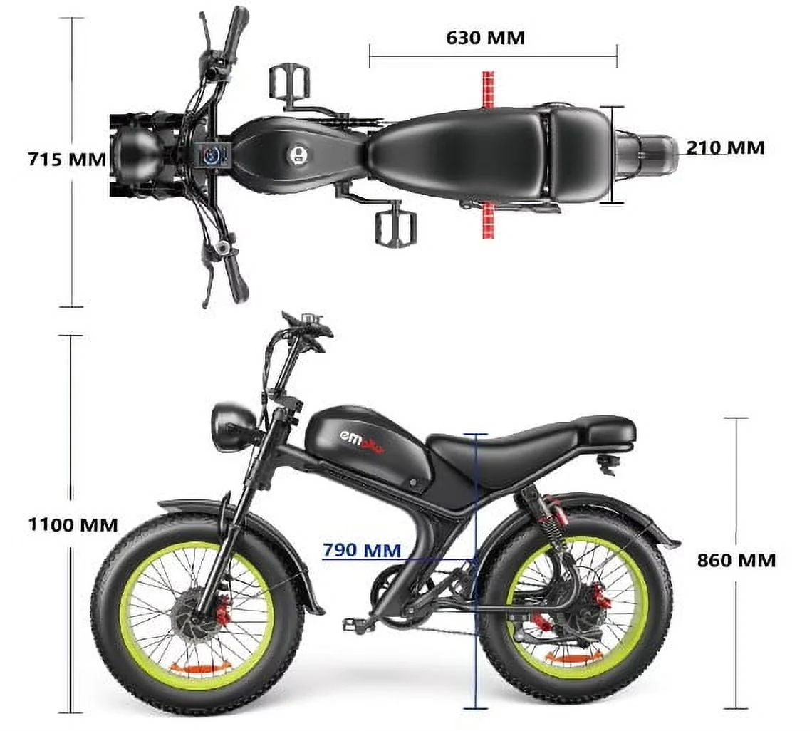Designed specifically for off-road enthusiasts, the 20-inch 4.0" fat tires paired with aluminum alloy rims deliver excellent grip and stability, making it easy to handle sandy, muddy, and rugged mountain paths. The dual hydraulic braking system is highly responsive, ensuring efficient and stable braking for safety. Dual shock absorbers effectively cushion vibrations, providing a smooth and comfortable ride even on challenging terrains, allowing you to fully enjoy the thrill of off-road adventures.