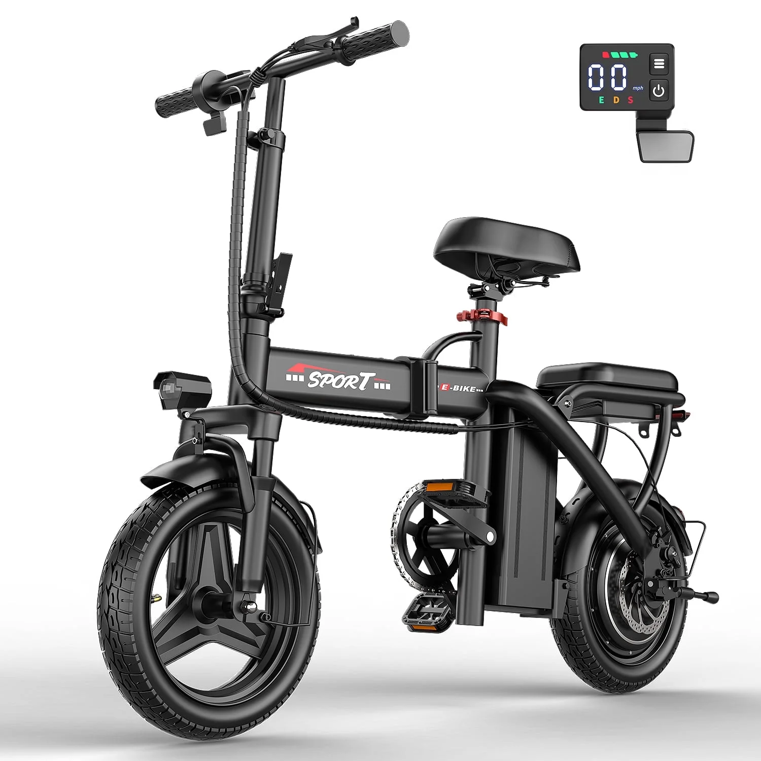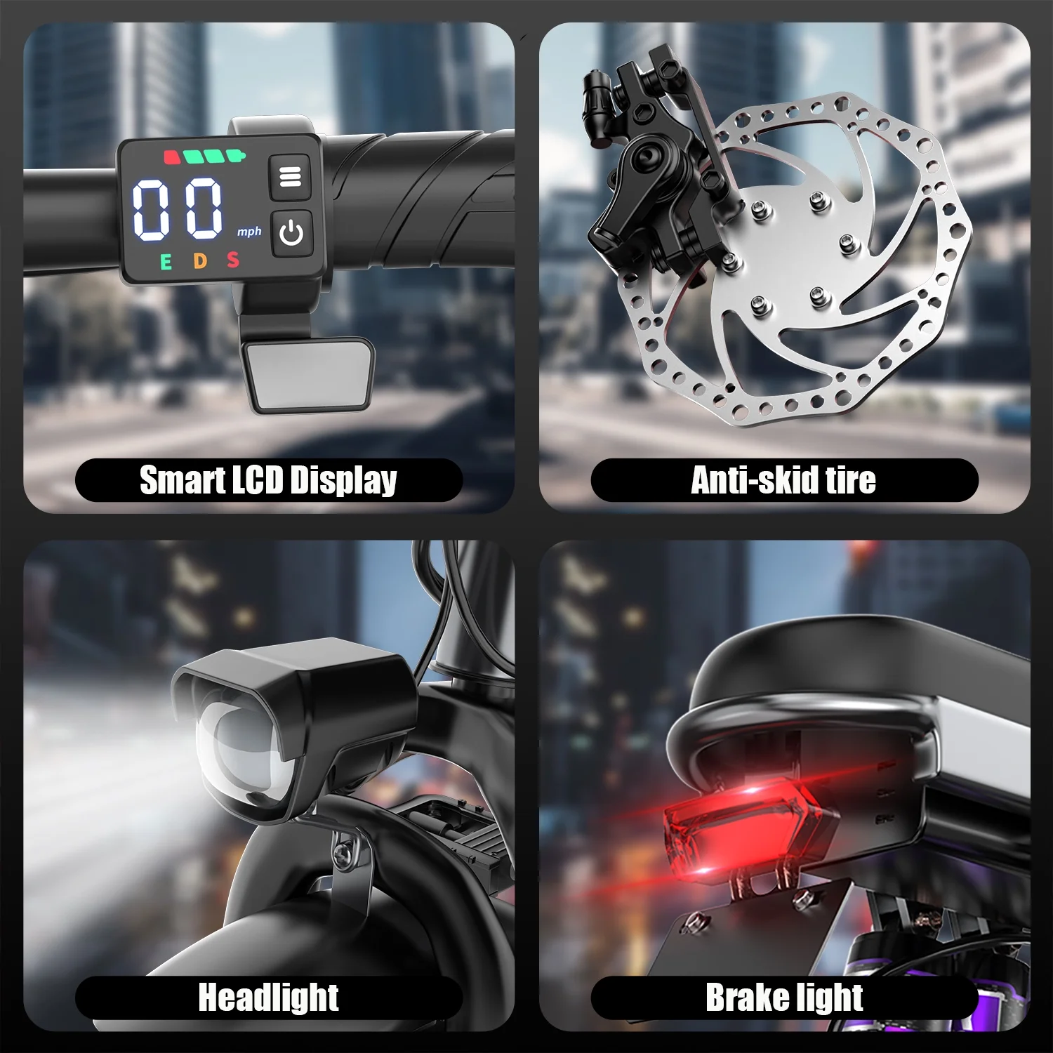- 【Safety-First Engineering & User-Friendly Features】Front/rear disc brakes ensure reliable stopping power, while LED headlights and a rear reflector enhance visibility. Includes a digital display for real-time speed, battery level, and mileage tracking