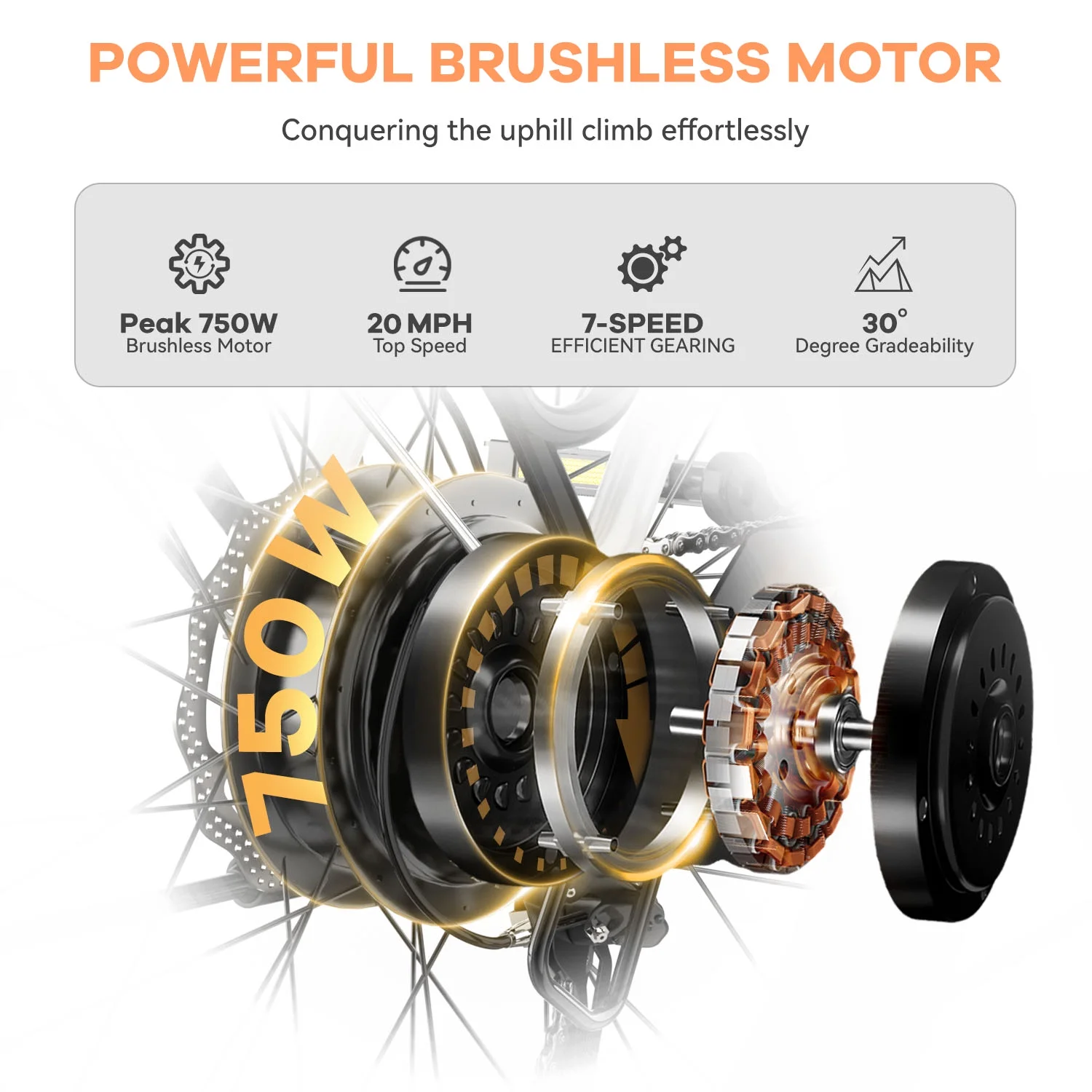 750W Motor/48V 18AH Battery/20"*4.0 Fat tires🔥Today's Deal