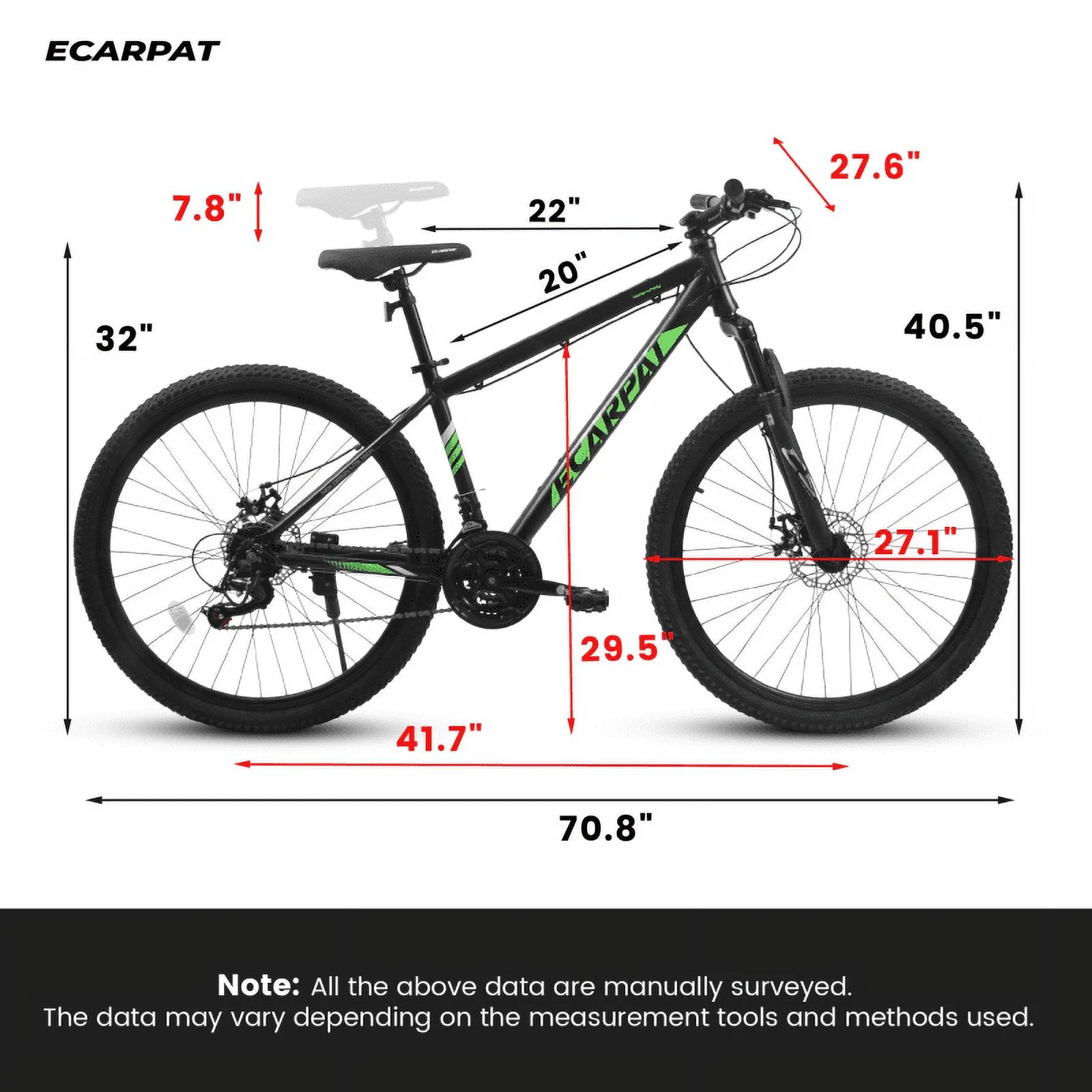 - 【Brake&Shifter】Front and rear disc brakes ensure timely and effective braking,provide you better durability and stopping power for your rugged and damp adventures.The 21-speed drivetrain with Shimano shifters and Trigger Shifter allows you to find the most comfortable and efficient gear for the kind of road.