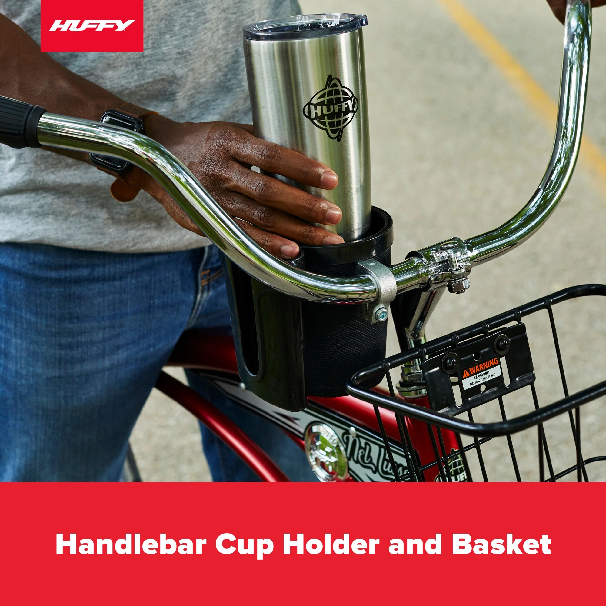 - Convenient: Handlebar basket, storage rack, & cup holder for small essentials.