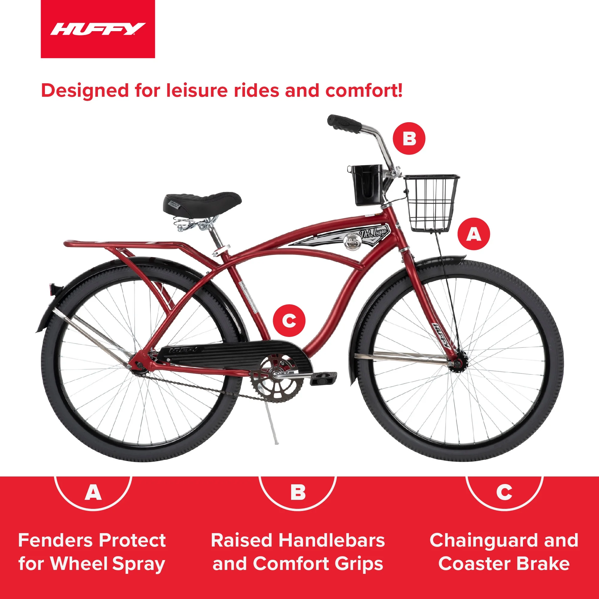 - Stylish: Red frame with classic cruiser style for timeless charm.