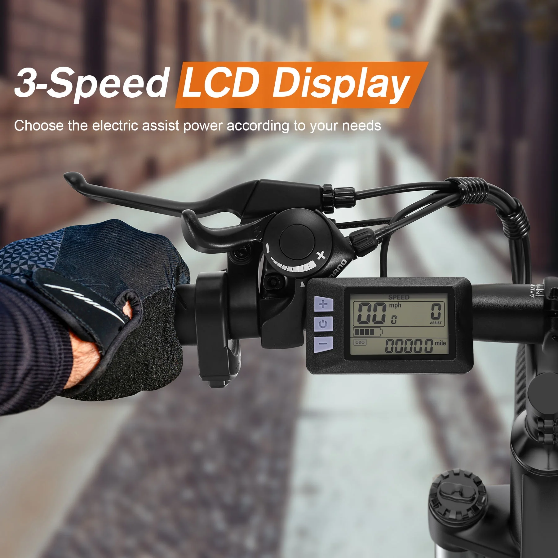 👉INTELLIGENT LCD DISPLAY: The ABS LCD display on this fat tire electric bike shows the remaining battery power, 3 assist levels, mileage, voltage, speed, and use time, making it easy to read your statistics.