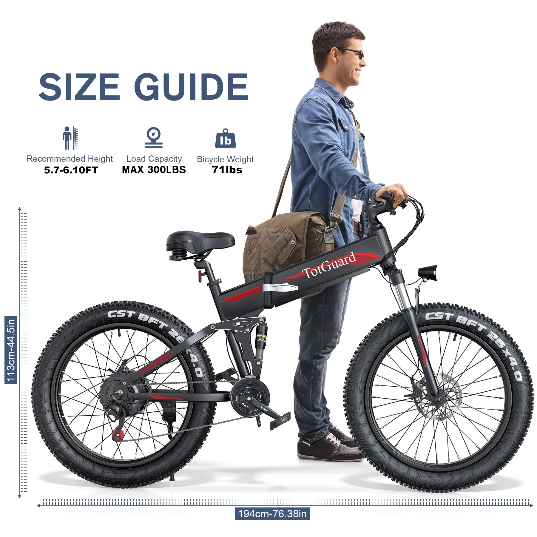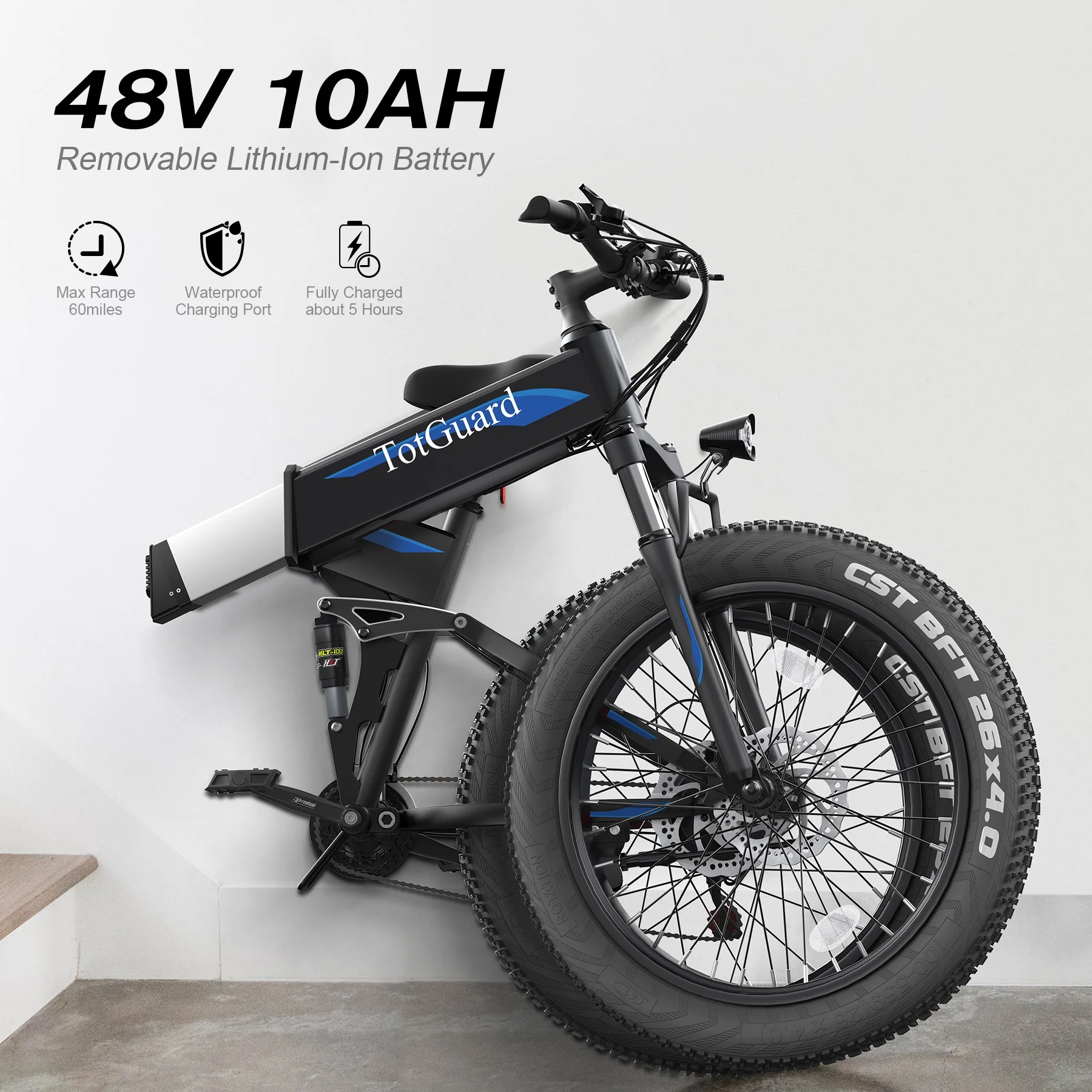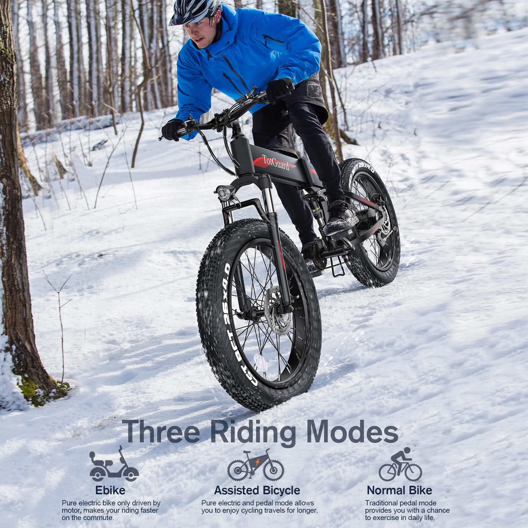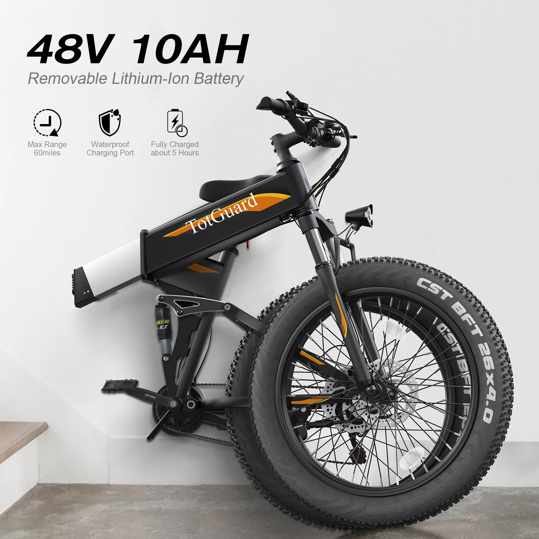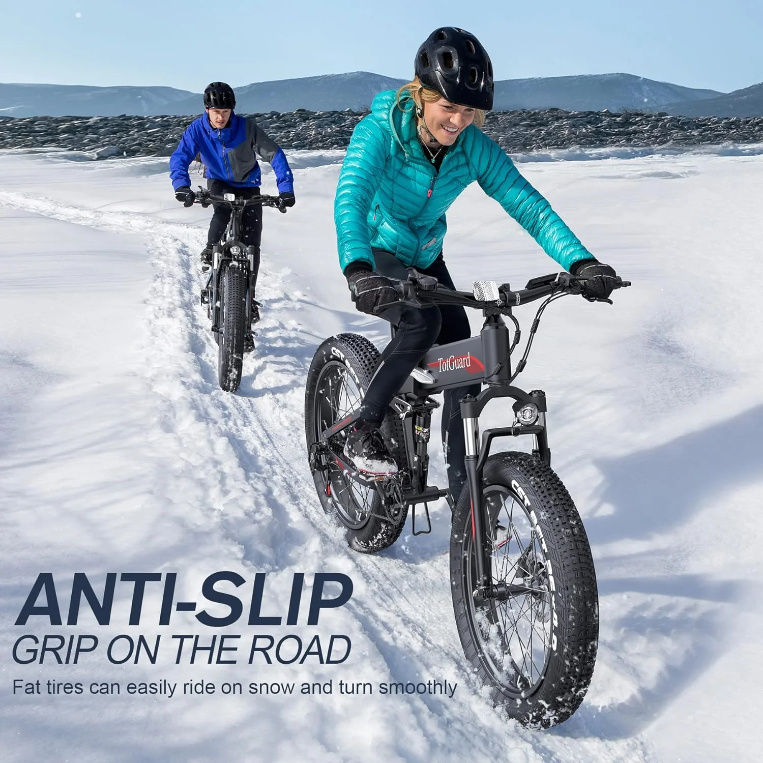 TotGuard fat tire ebike offers unmatched value and versatility with a powerful 48V 10Ah battery and 500W motor. With speed up to 21.6MPH and an impressive 50 miles max range in pedal assist, the ebike will take you to explore more places. Let's ride all seasons on all terrains with this BEAST EBIKE!