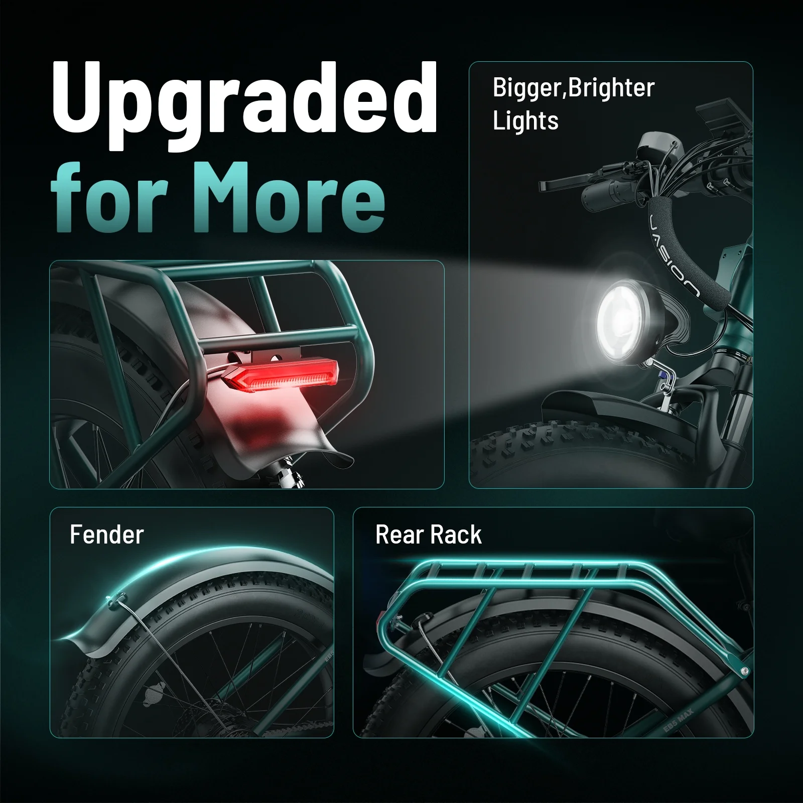 🚴♂️SAFETY AND PORTABILITY - This 26" electric mountain bike equipped with headlight and taillight to enhance your visibility during nighttime and improve your safety while riding at night. Pre-installed fenders shield you from mud and water on rugged trails, ensuring a cleaner ride in any weather. The included rear rack provides the versatility to carry essentials, allowing you to reduce the burden of carrying heavy loads on your back.