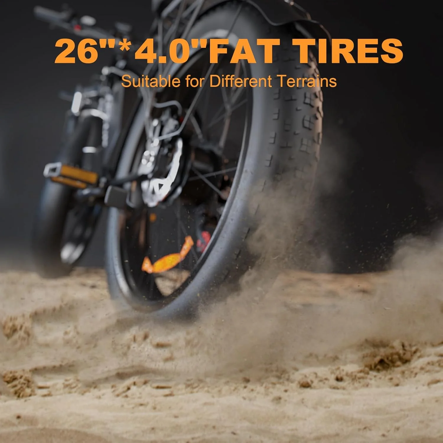 - Fat Tire Electric Bike: The 26'' *4.0'' fat tire with tread patterns has a wider contact area which enhances flexibility, excellent grip, wear resistance and anti-skid function to let you safer in rainy day.
