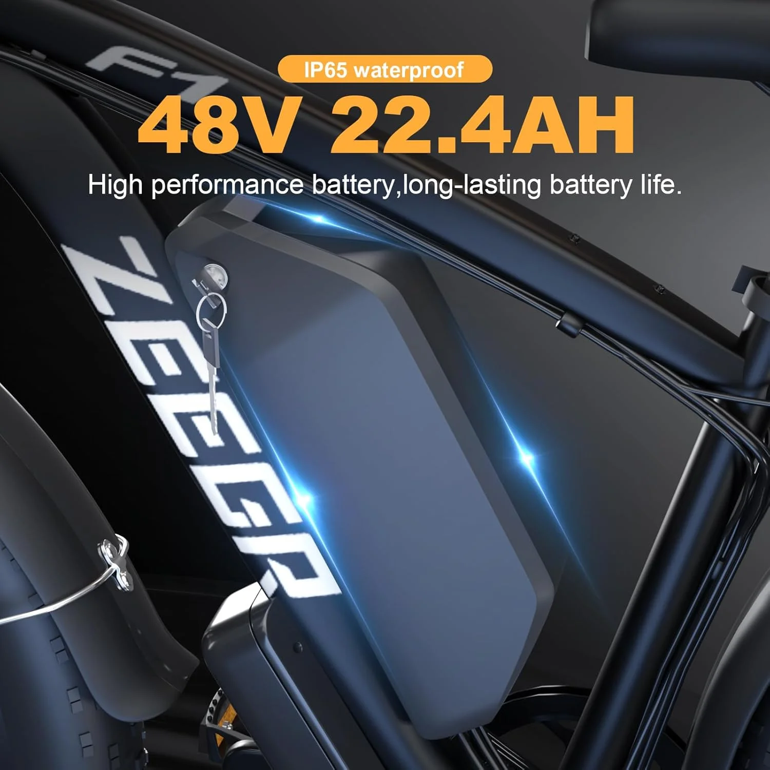 - Big Capacity Lithium Battery Ebike: Large capacity 48V 22.4Ah battery offers ebikes long riding range of 40-60 miles in pedal assist mode. Battery lock and about 5-8 hours fast charge.