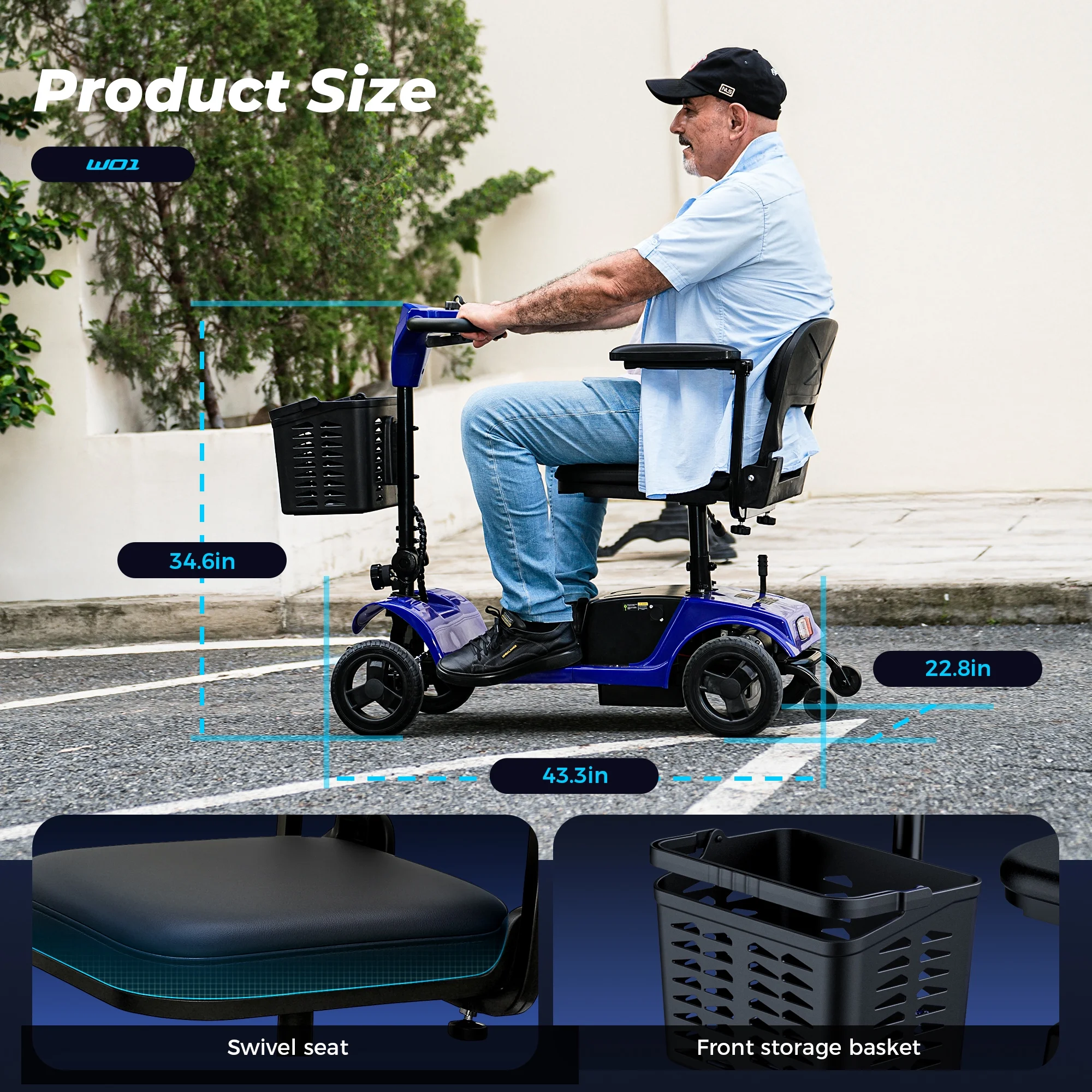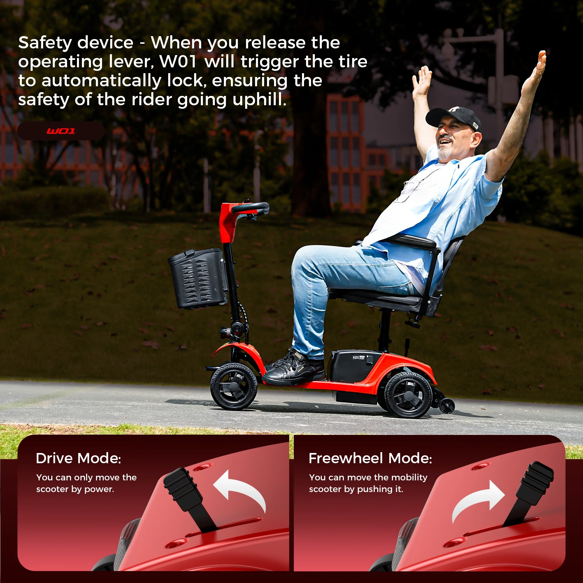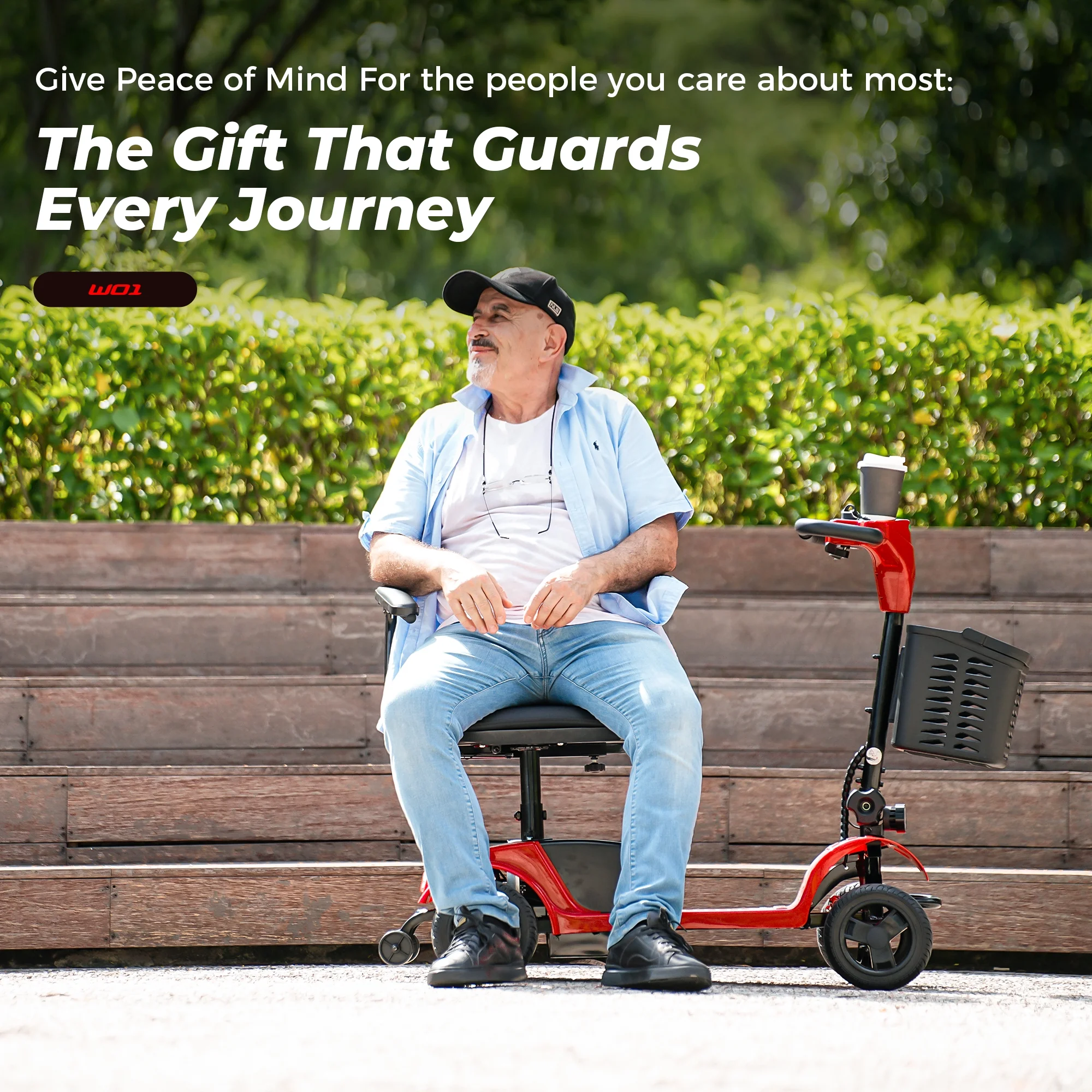 W01 mobility scooter is designed for seniors - Upgraded wider seat takes care of the comfort of the rider, no matter how far and how bumpy the journey will not make you feel uncomfortable, the front and rear are equipped with LED lights to protect the safety of the rider's night travel, if you're picking a gift for your parents/grandparents/yourself, the W01 is a very good choice!