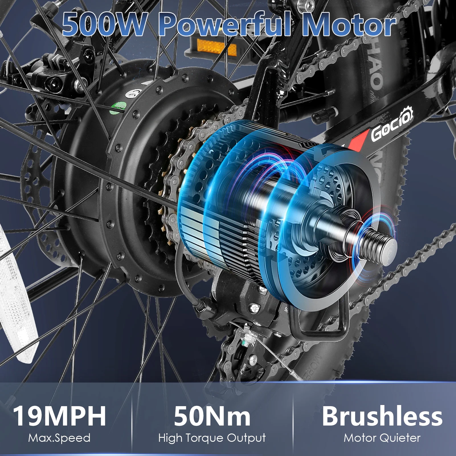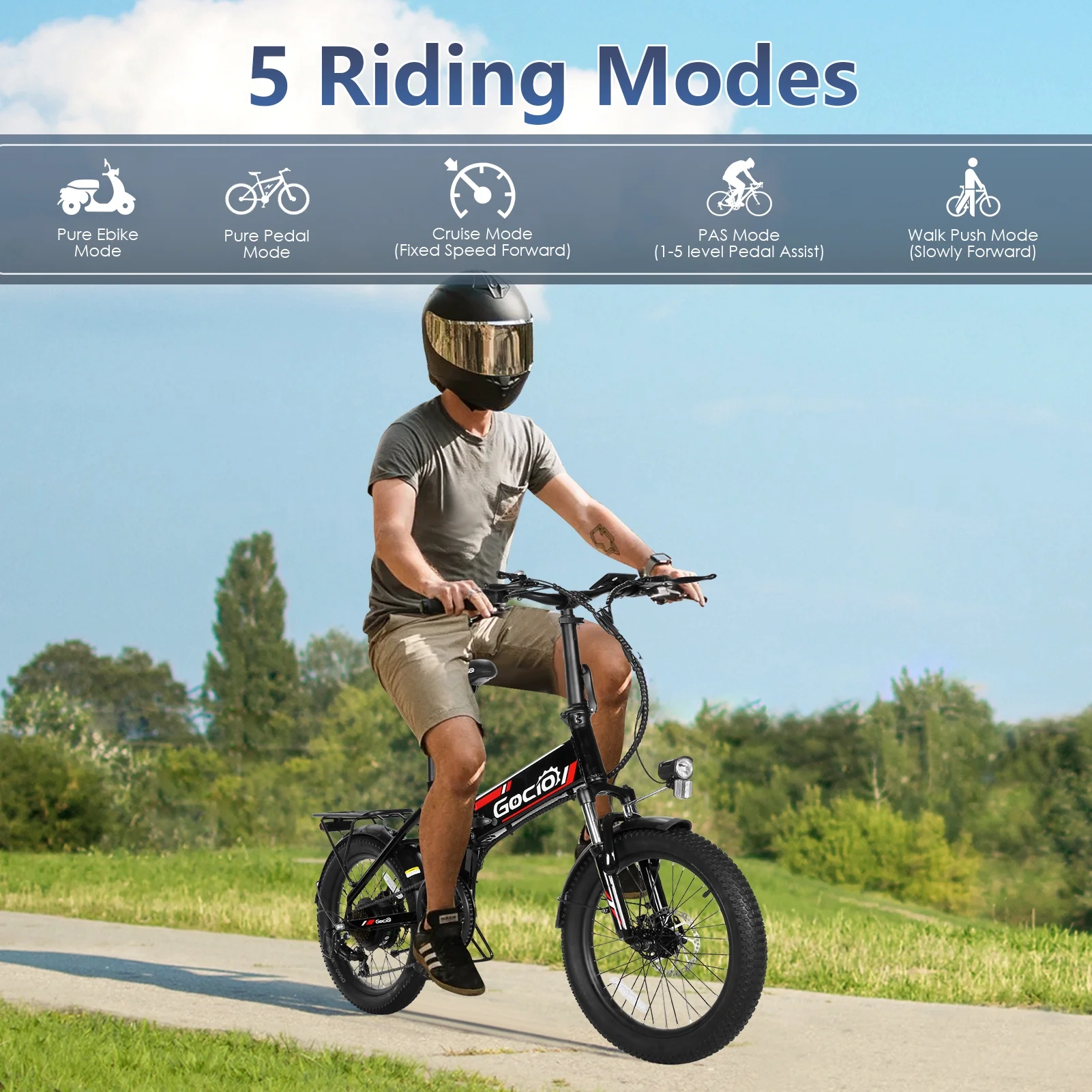 Gocio Foldable Electric Bike for Adults, Peak 750W Electric Mountain Bicycles, 20" * 2.4" Fat Tire Electric Bicycle, 375wh 48V Removable Lithium - Ion Battery, Urban Commuter Ebike Man Woman UL2849