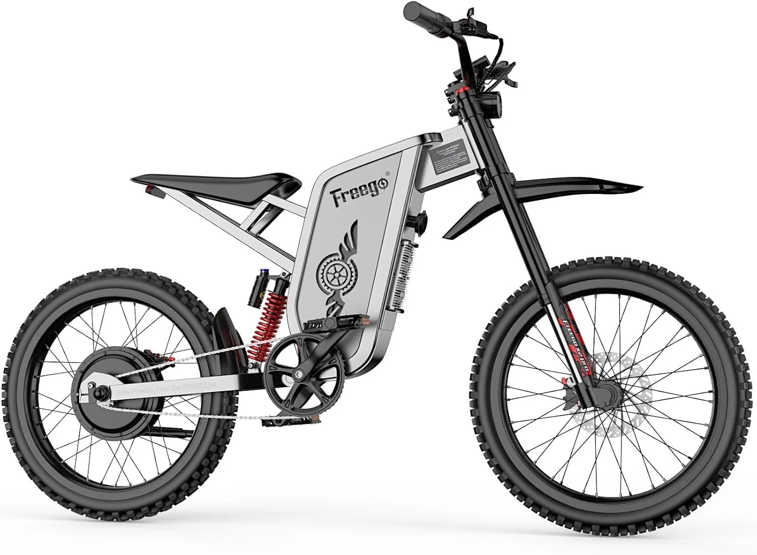 - The FreeGo X2 Pro features a robust 3000W motor (nominal), delivering up to 6000W at peak for thrilling acceleration. Its 60V, 30Ah (1800Wh) battery offers two modes: City mode (28MPH) and Off-road mode (50MPH), adapting seamlessly to various terrains. A magnetic pedal-assist sensor ensures smooth pedaling, while the advanced four-piston braking system with 203mm discs provides outstanding stopping power for unmatched safety.