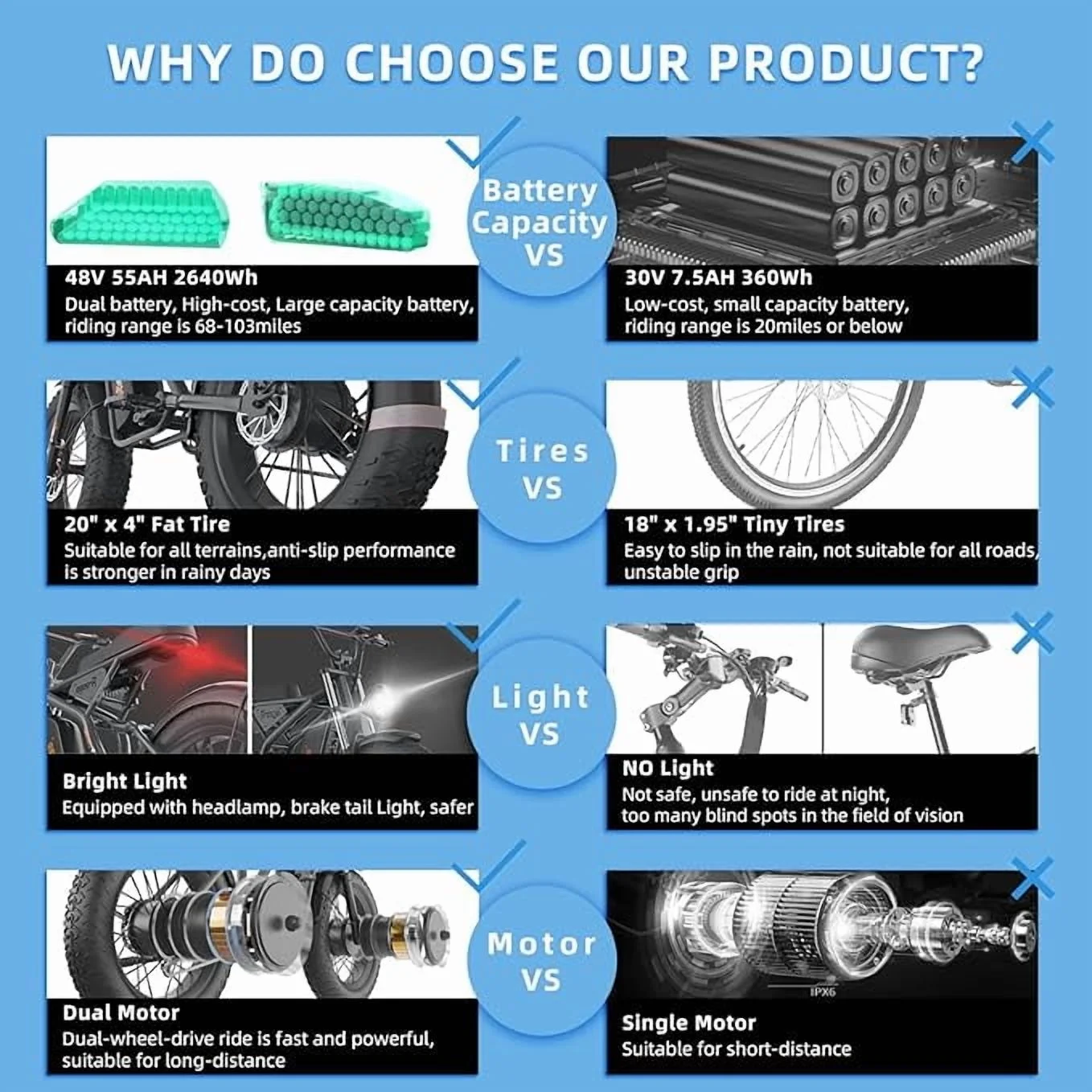 - 【Superior Riding Experience 】:Safety is a top priority with the electric bicycle, as it comes equipped with bright head and tail lights for improved visibility during night riding. The LCD control panel allows riders to easily monitor their speed, battery level, and mileage, enabling them to choose an appropriate speed for different traffic conditions.