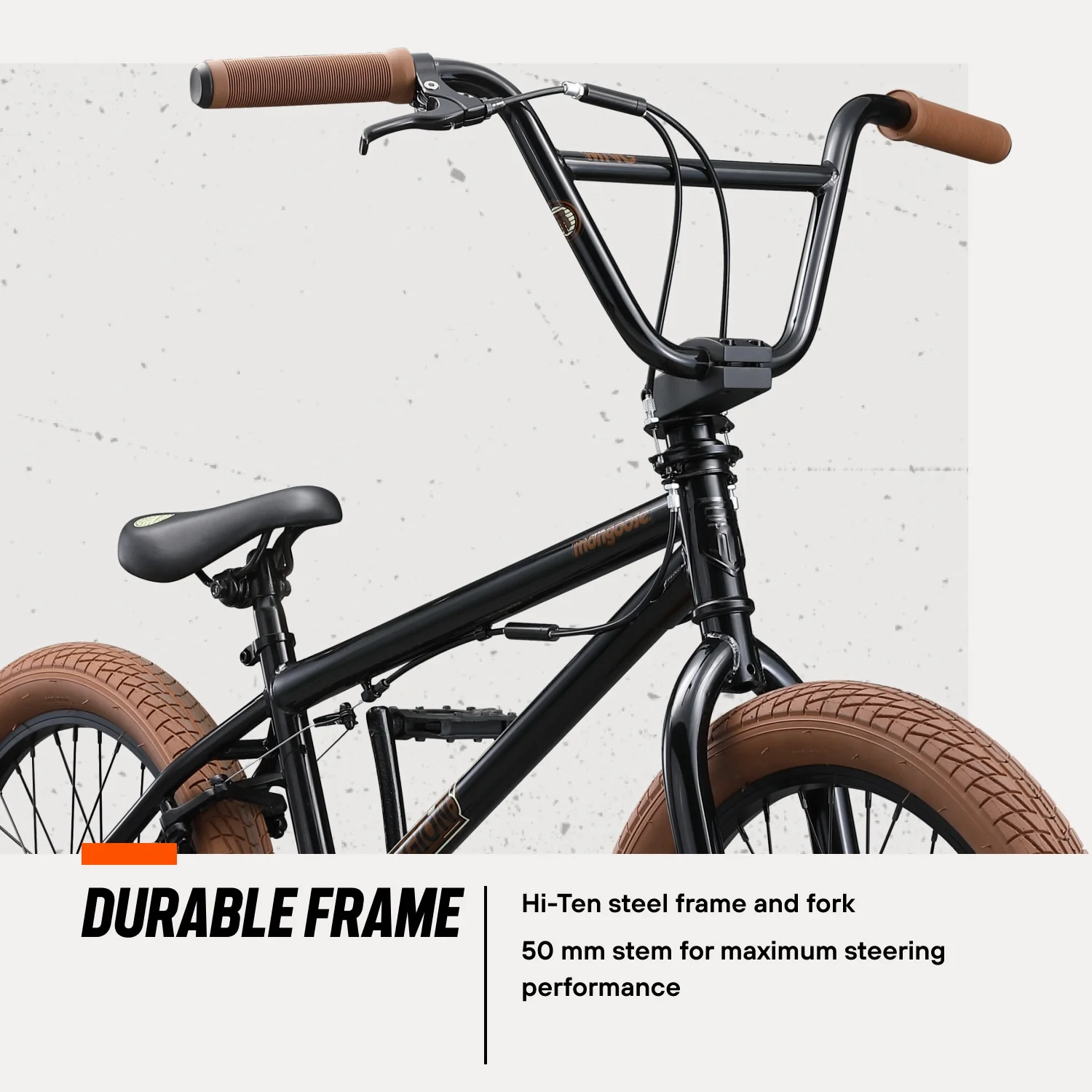 The Mongoose Legion L20 is the perfect kids BMX bike for riders ages 8 and up. Built for park, street, and dirt riding, this durable boys bike features a Hi-Ten steel frame, 8” rise handlebars, and wide 2.3” tires for excellent grip and control. The 25x9T gearing and chromoly cranks provide smooth pedaling, while the alloy U-brake offers precise speed control. Ready to be assembled right out of the box, the Legion L20 comes with a 5-year limited warranty on the frame and a 1-year limited warranty on parts, giving parents peace of mind. Perfect for young riders looking to build skills and have fun, the Mongoose Legion L20 is a reliable and exciting choice for any BMX adventure. View more from us on our brand page.