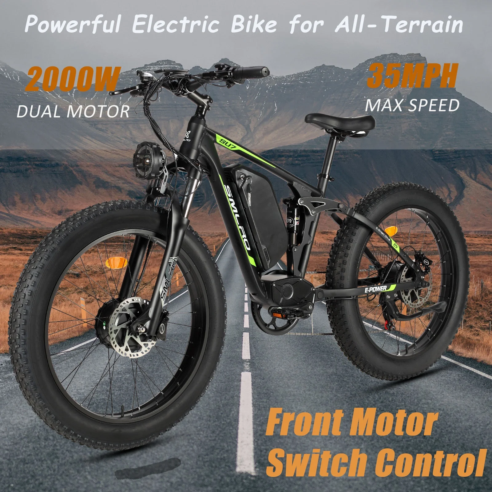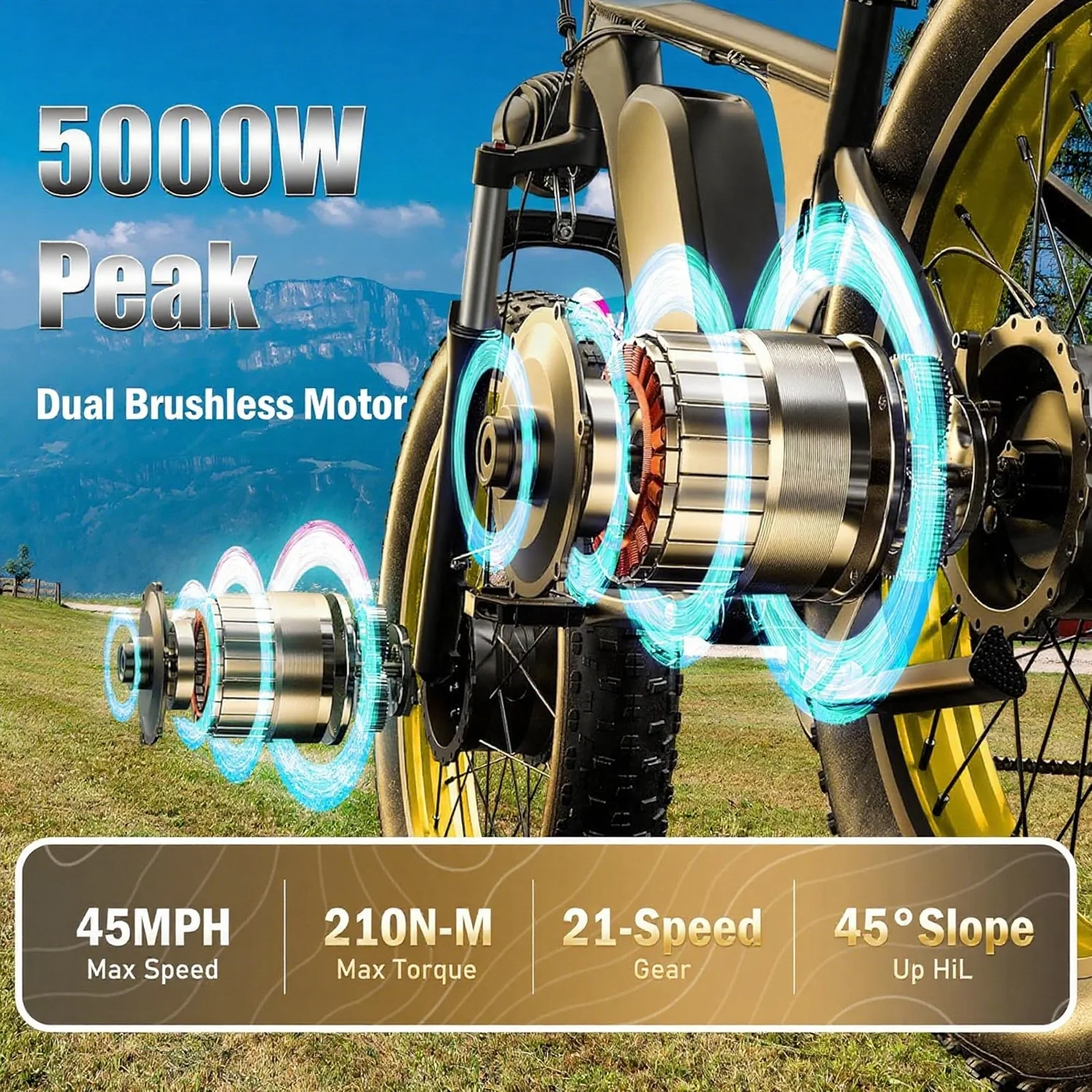 - 5000W Peak Dual Motor Power:Featuring dual 2000W motors (2500W peak each) with 210Nm torque, it ensures unmatched acceleration and hill-climbing capability, which is ideal for snow, sand, and mountain terrain.