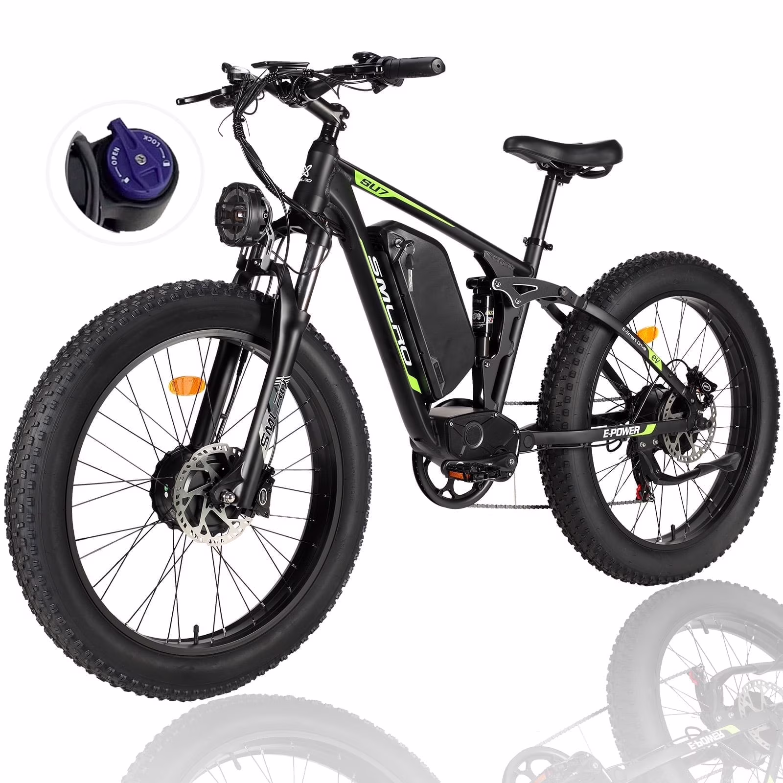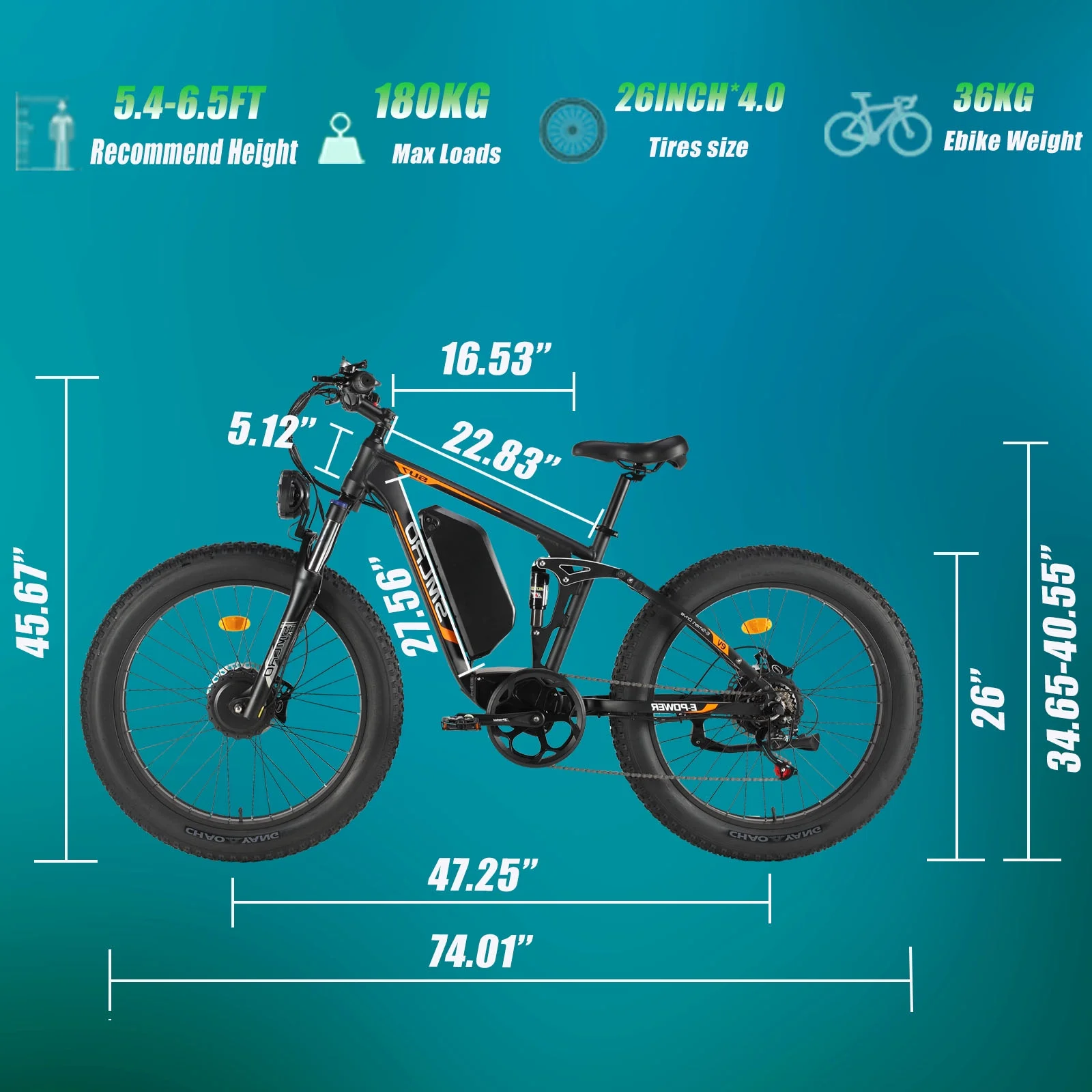 - 26” x 4.0 Fat Tires + Super Suspension:With puncture-resistant fat tires and 120mm travel suspension, it allows you to conquer rugged trails with superior stability and shock absorption.