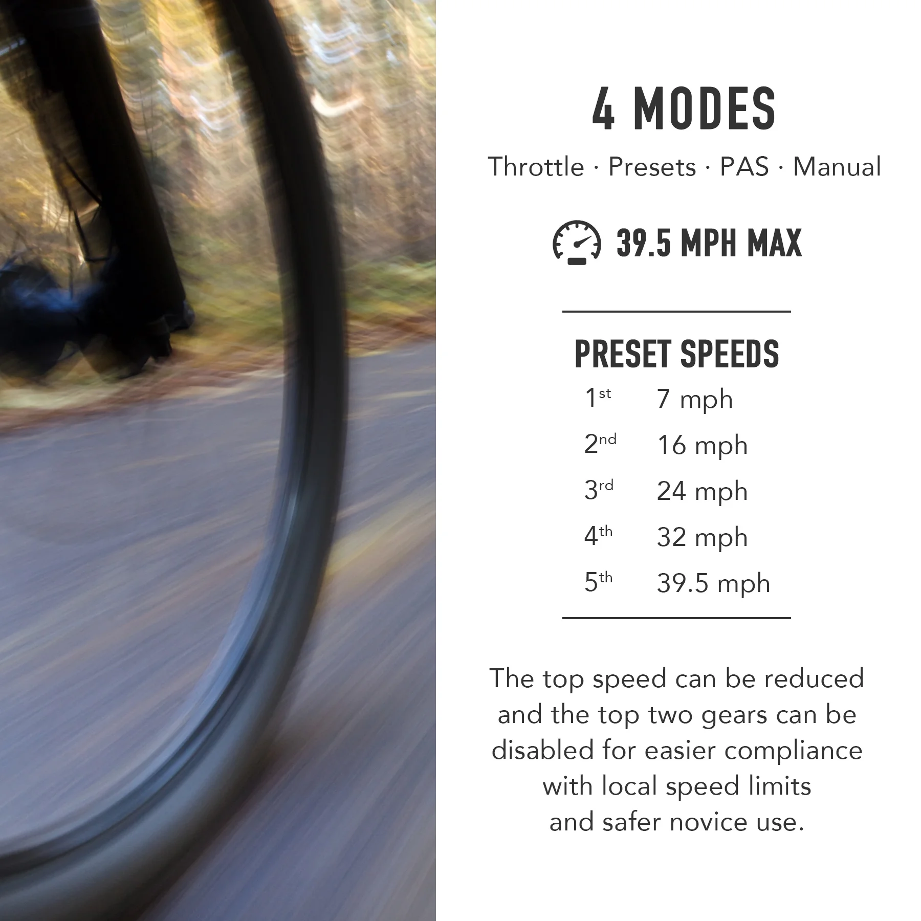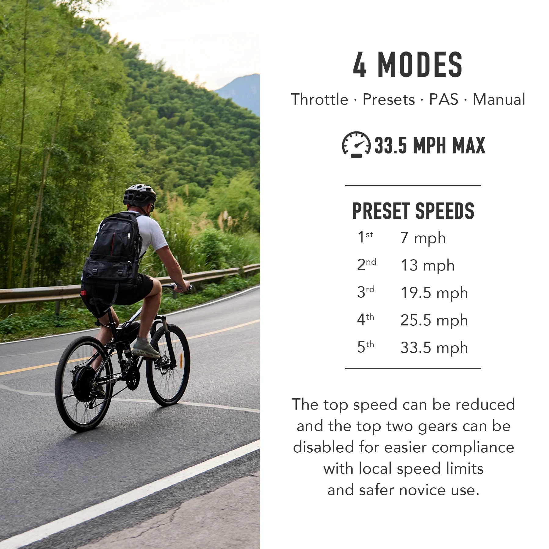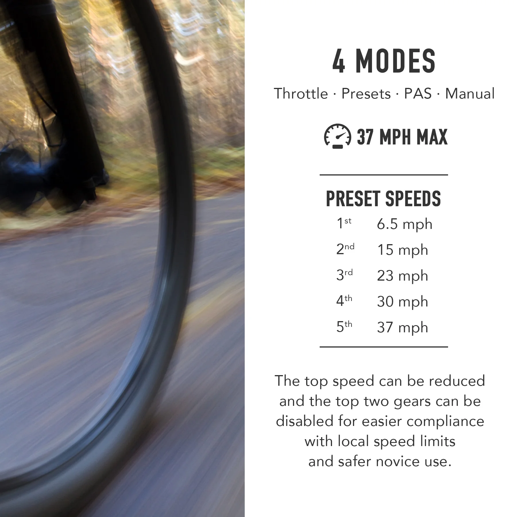 FAMILY FRIENDLY adjustments can limit the top speed or block the 2 fastest settings for safer use and to obey local electric bike speed limits