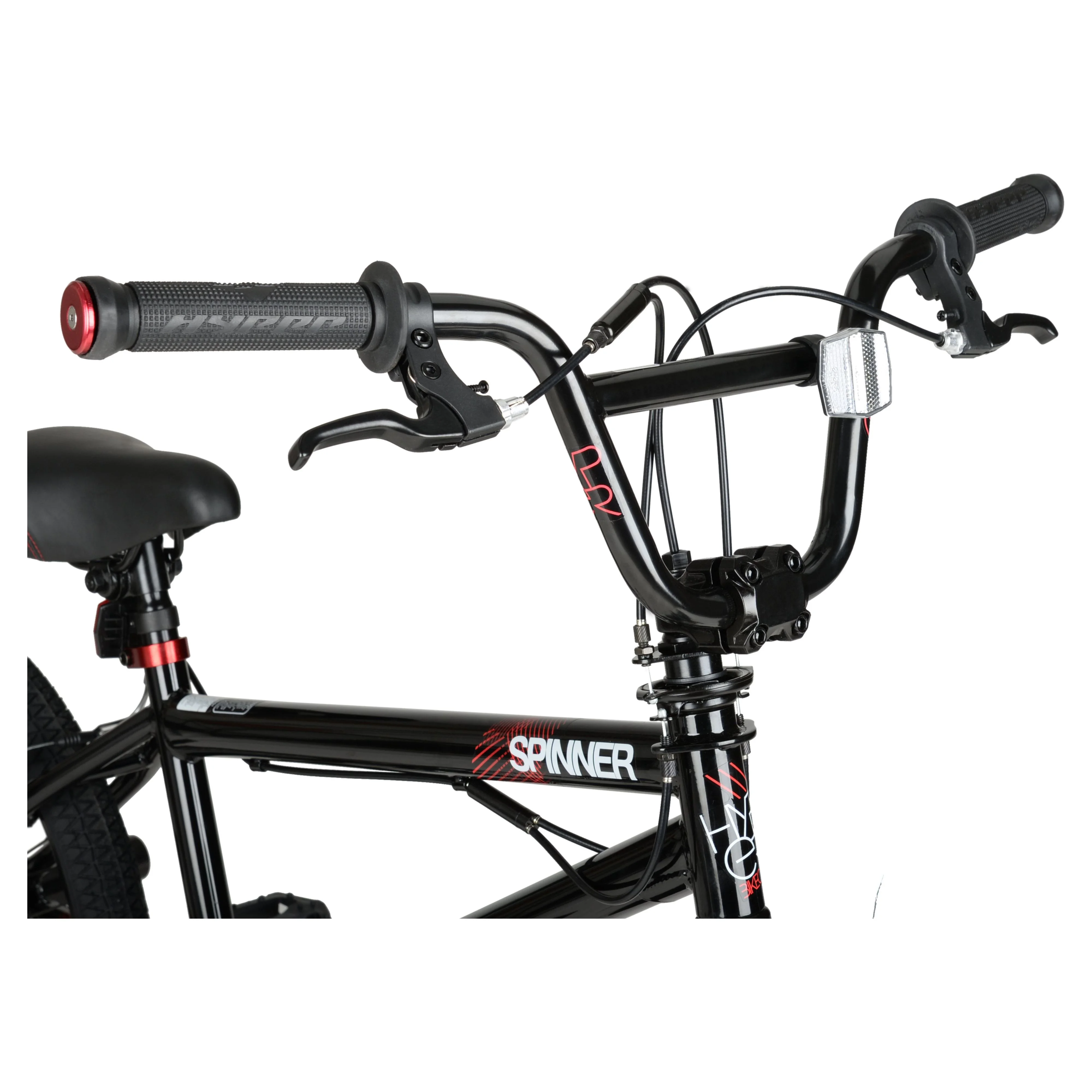 Introducing the Hyper Bicycles 20" Boy's Spinner BMX Bike – the ultimate ride for adventurous young cyclists! Featuring a durable heavy-duty steel BMX frame, this matte black BMX bike ensures exceptional performance and safety with its reliable front caliper and rear v-brakes. Designed for BMX tricks and stunts, it comes equipped with sturdy 48-spoked rims and pegs. Comfort is key, with a deluxe padded seat and gripped handlebars that allow for long, enjoyable rides. The sleek matte black finish, highlighted by vibrant red accents, makes this bike as stylish as it is functional. Perfect for various terrains, the Hyper Bicycles 20" Boy's Spinner BMX bike is ideal for mastering tricks, weekend rides, or simply cruising with friends. Elevate your riding experience with this exceptional BMX bike and discover the excitement waiting around every corner!