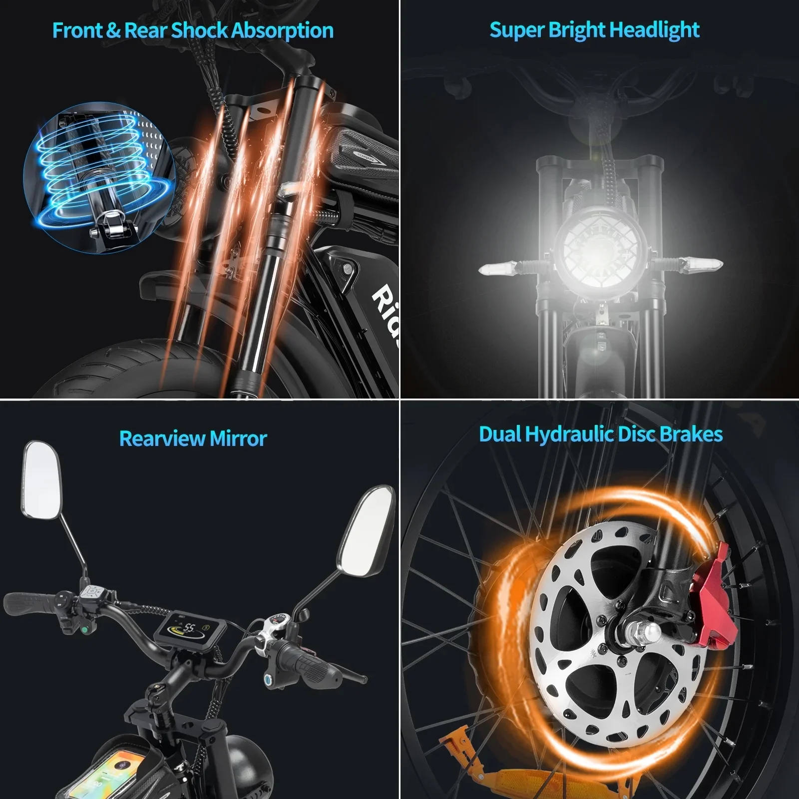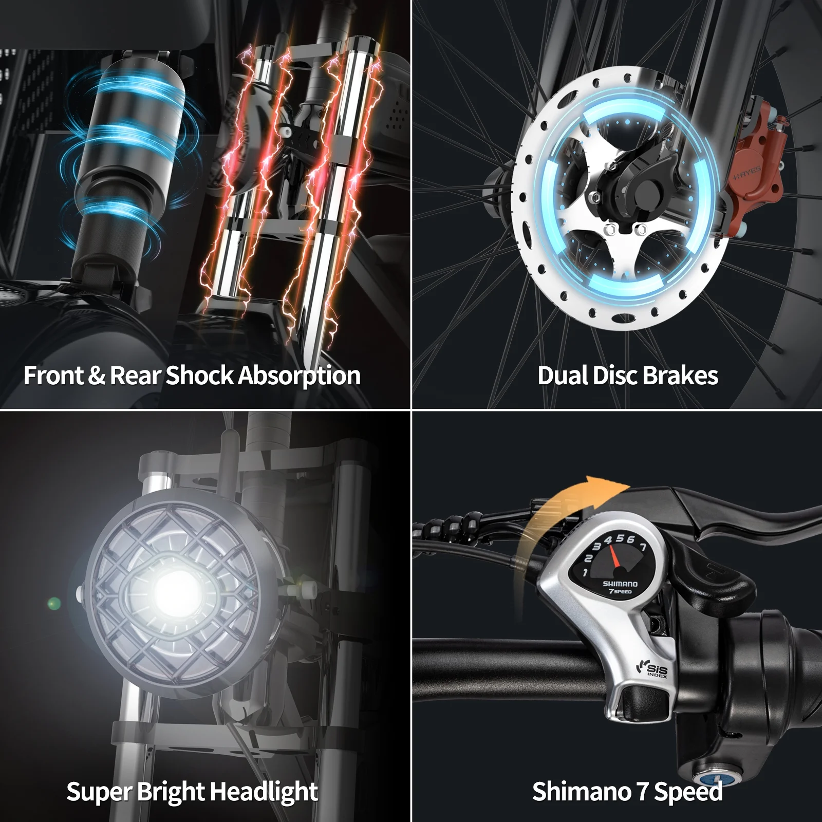 - 【𝐔𝐧𝐢𝐪𝐮𝐞 𝐚𝐧𝐝 𝐈𝐦𝐚𝐠𝐢𝐧𝐚𝐭𝐢𝐯𝐞 𝐃𝐞𝐬𝐢𝐠𝐧】This electric bike for adults features a unique & imaginative design, complete with a cool bike headlight for optimal safety during night rides. The saddle is both delicate & soft, with a strengthened pole & hollowed-out bracket that creates a thrilling sports adventure experience. You'll turn heads with this bike & be the envy of others. Join us & try out the fashion trend.