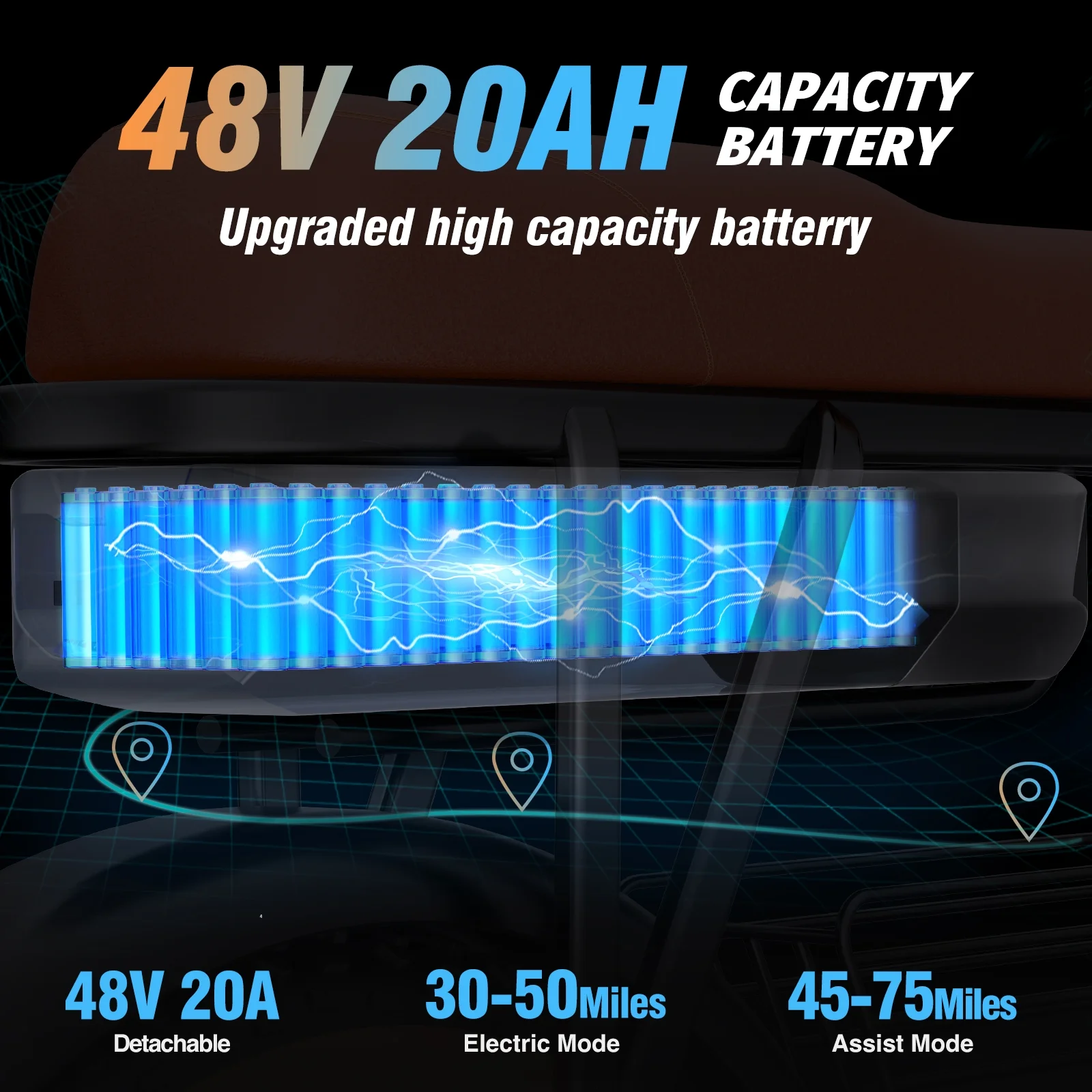 - 【𝐕𝐞𝐫𝐬𝐚𝐭𝐢𝐥𝐞 𝐑𝐢𝐝𝐢𝐧𝐠 𝐌𝐨𝐝𝐞𝐬】The electric dirt bike for adults offers three riding modes: pure electric, electric assist, and pedal. It features a removable 48V 20AH lithium-ion battery, providing a range of up to 50 miles in pure electric mode and up to 75 miles in pedal assist mode(PAS 1 Mode). The UL certified battery incorporates BMS security protection and power-saving capabilities. With a fast charging time of 4-6 hours at 3A, you can quickly get back on the road.
