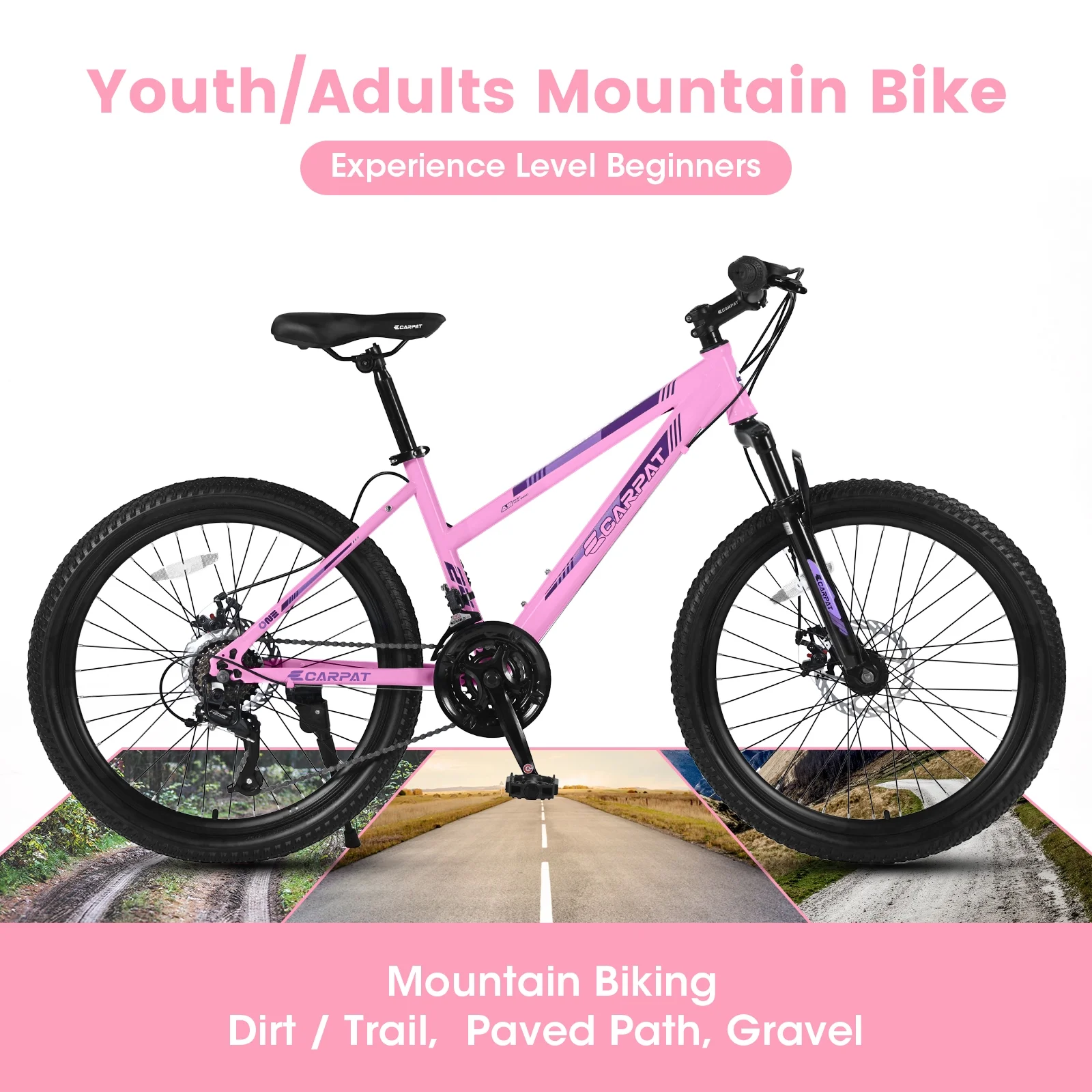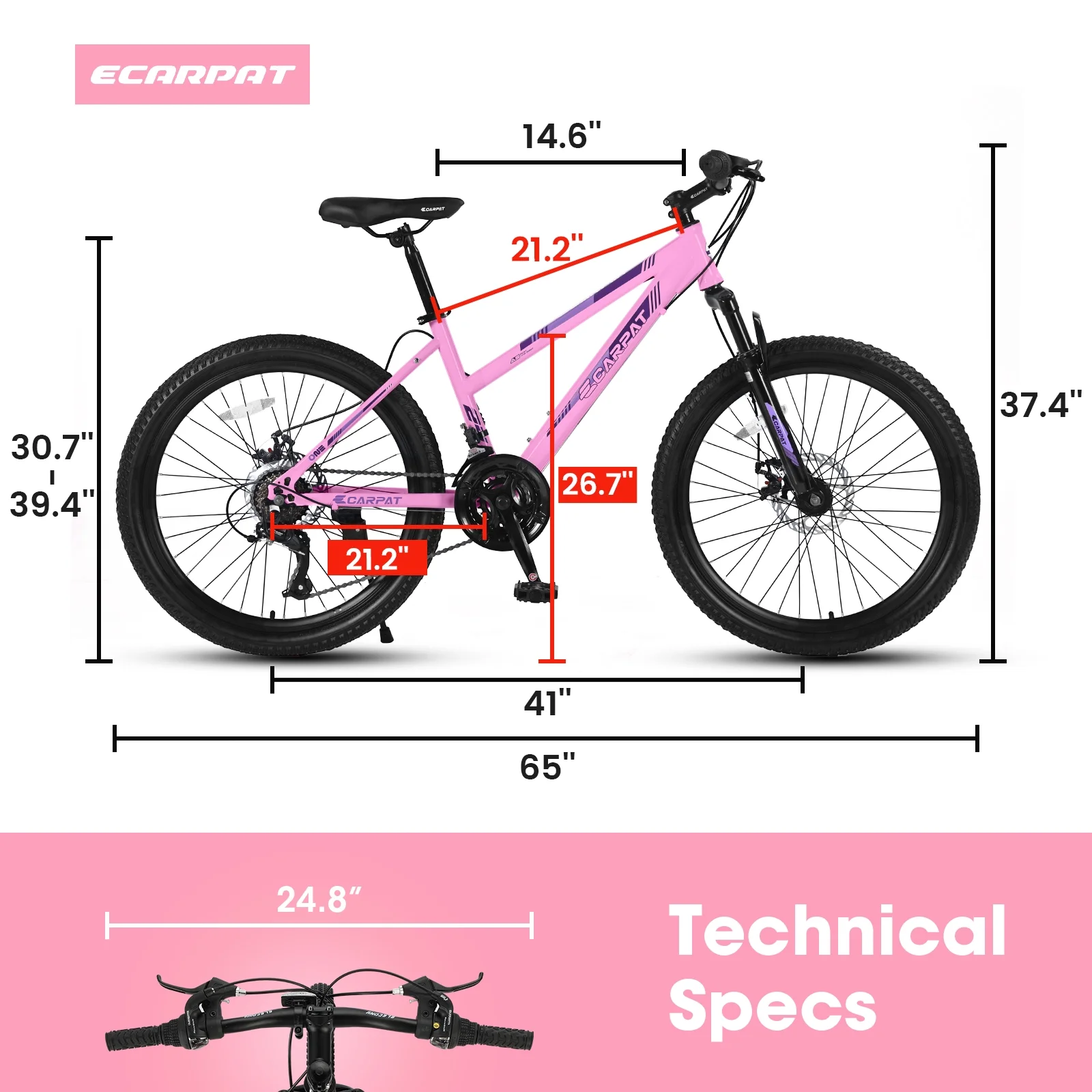 Ecarpat 26 in Mountain Bike Adults Womens Mountain Bicycles with Dual Disc Brakes Shimano 21 - Speed Full Suspension MTB Bicycles for Outdoor Commuting Exercise, Multi Colors