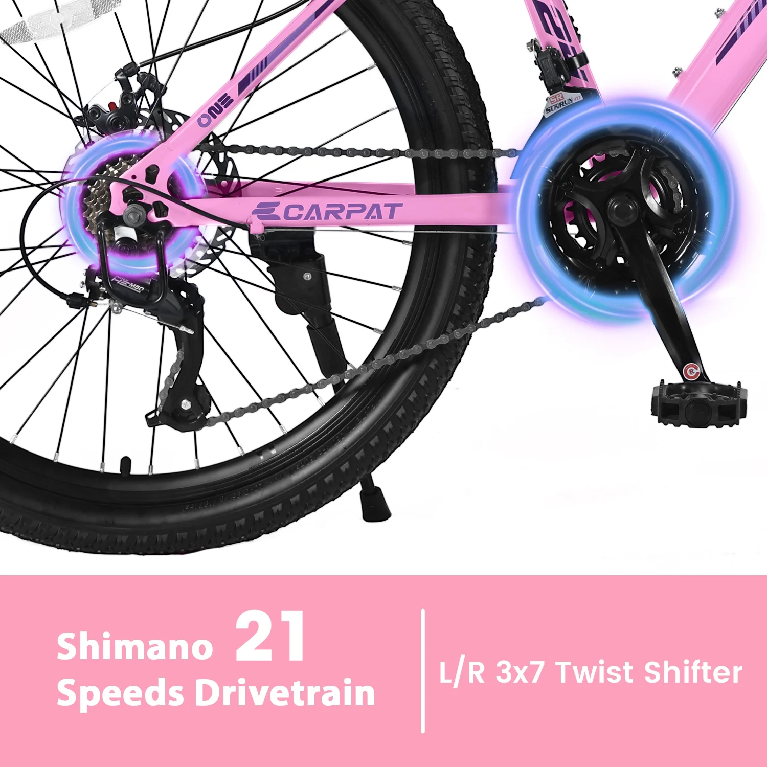 - [21-Speed Shifting Performance for Versatile Terrain Adaptability] The classic 21-speed drivetrain, featuring front and rear derailleurs, allows quick, seamless gear shifts. From urban commutes to rugged trails, riders can adapt effortlessly to any terrain for a smooth, efficient ride.