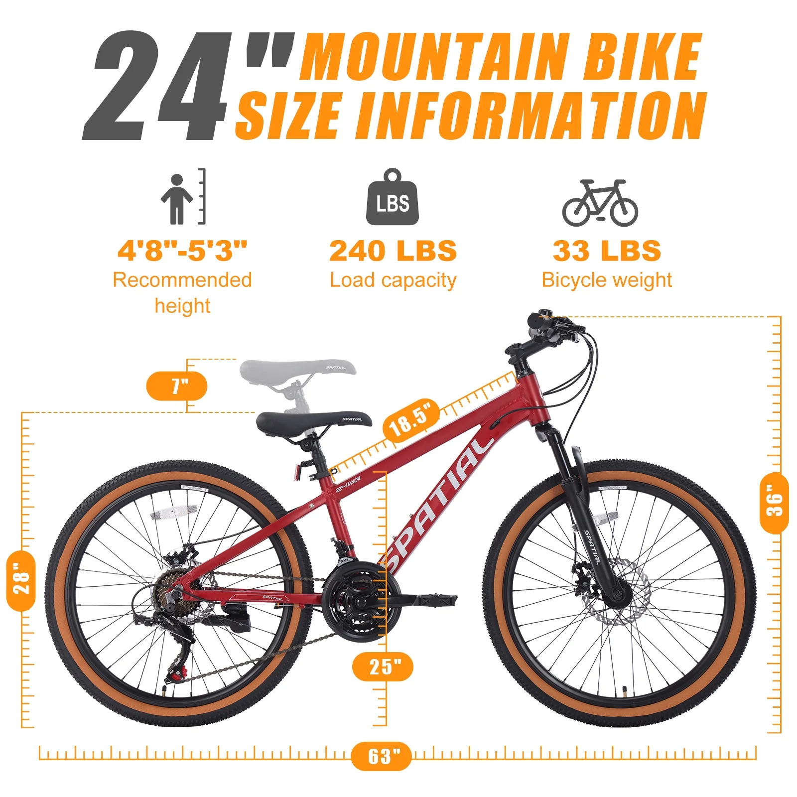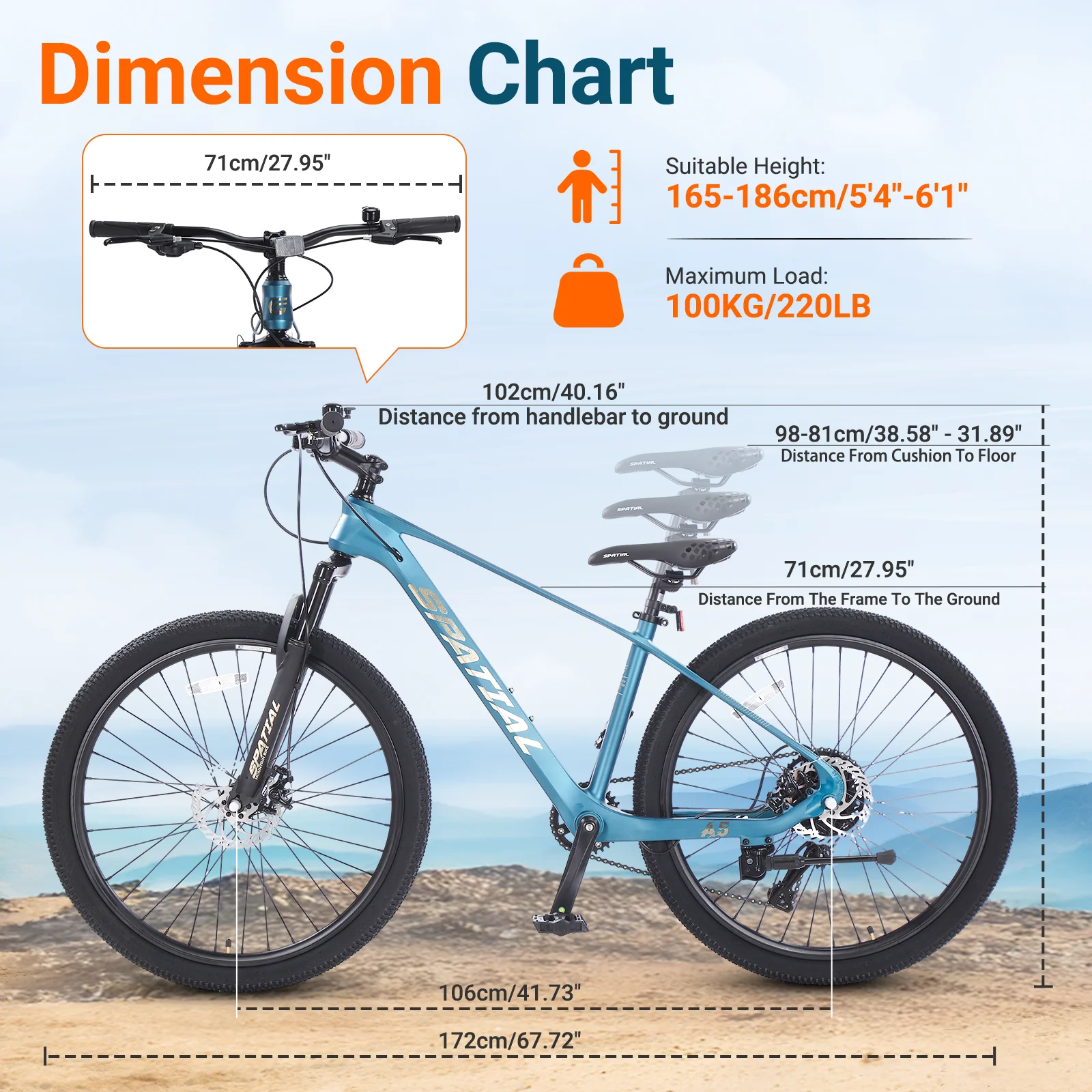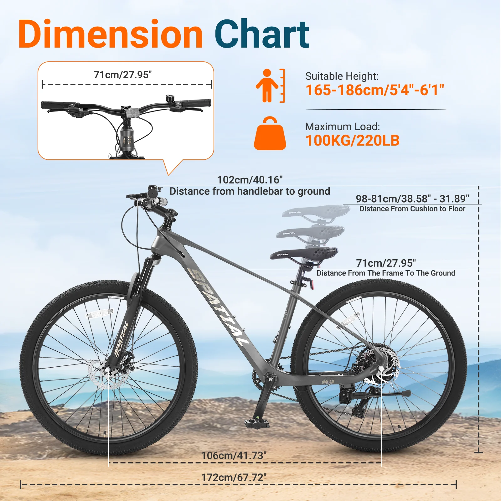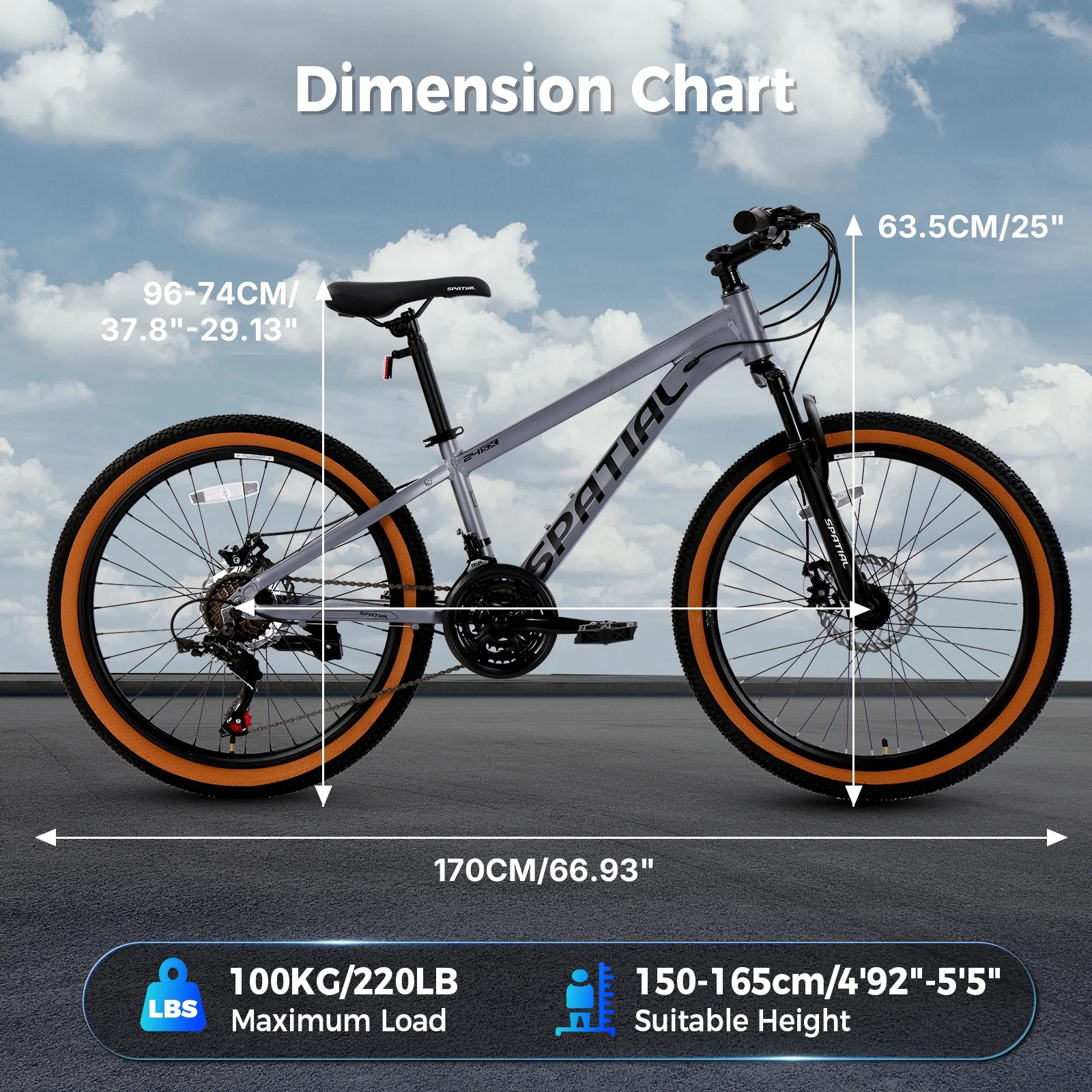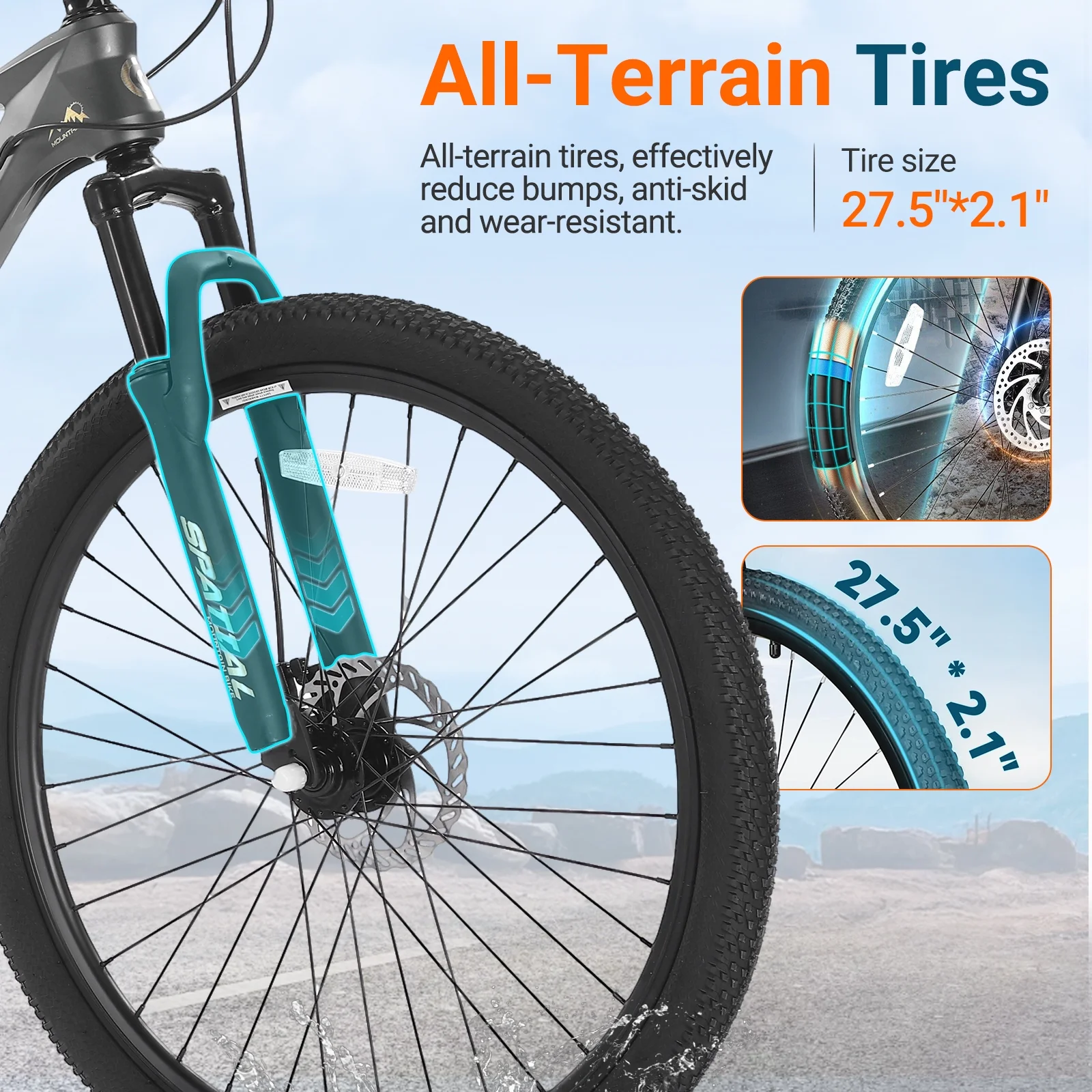 - 【26" x 2.10" Tires】These wider tires provide enhanced stability,a smoother ride over bumps,and superior grip on dirt paths,gravel,or pavement. Fits riders between 4'92"-5'5".