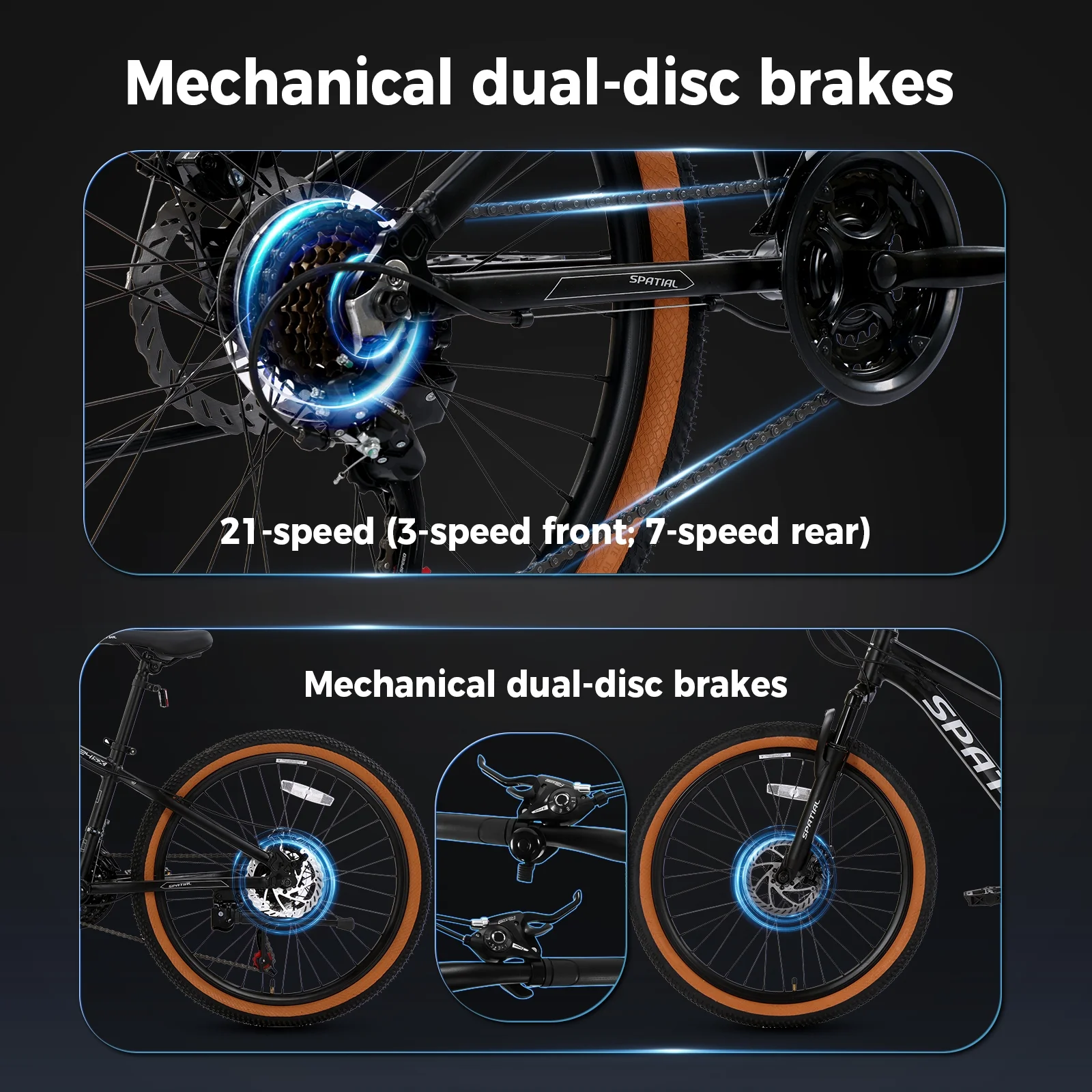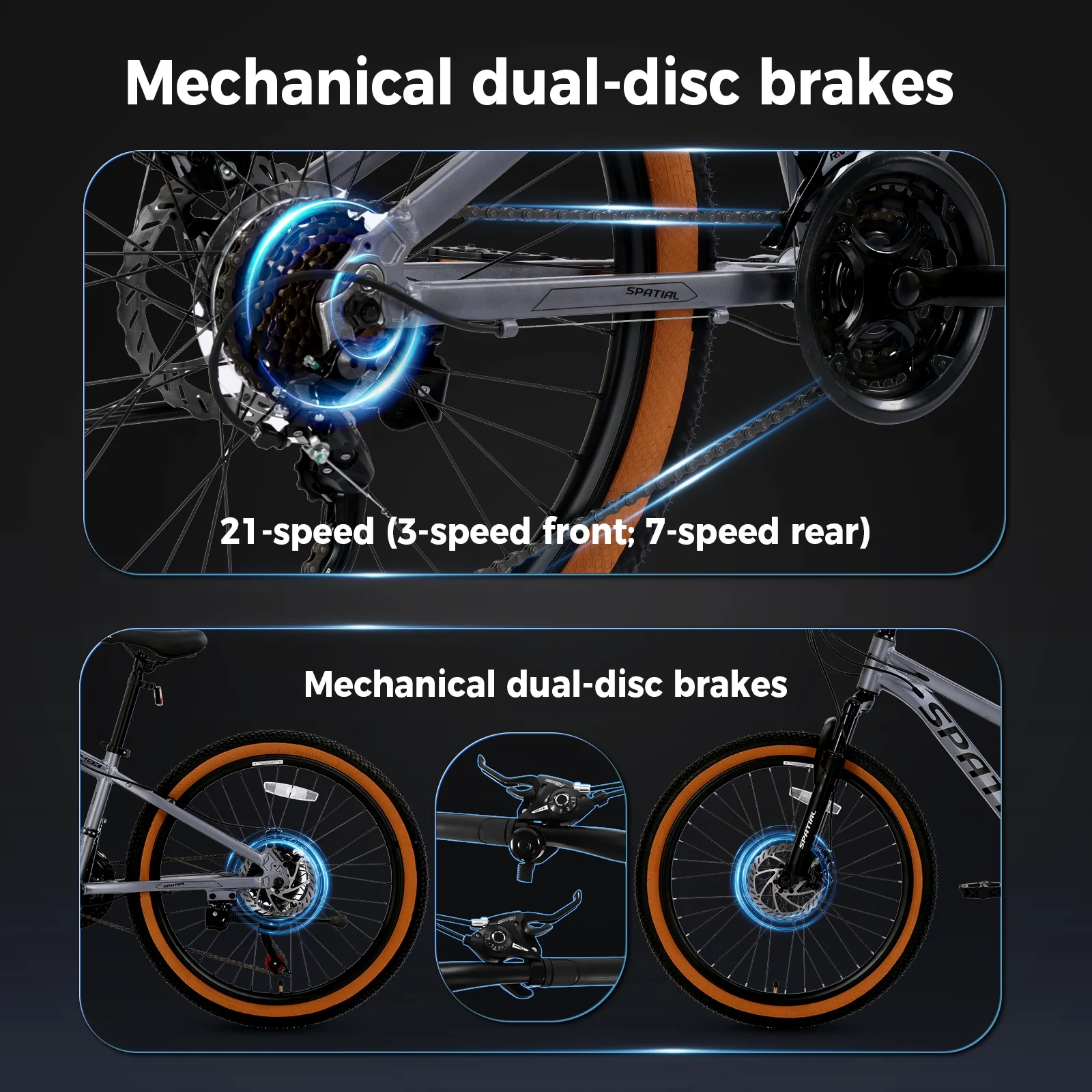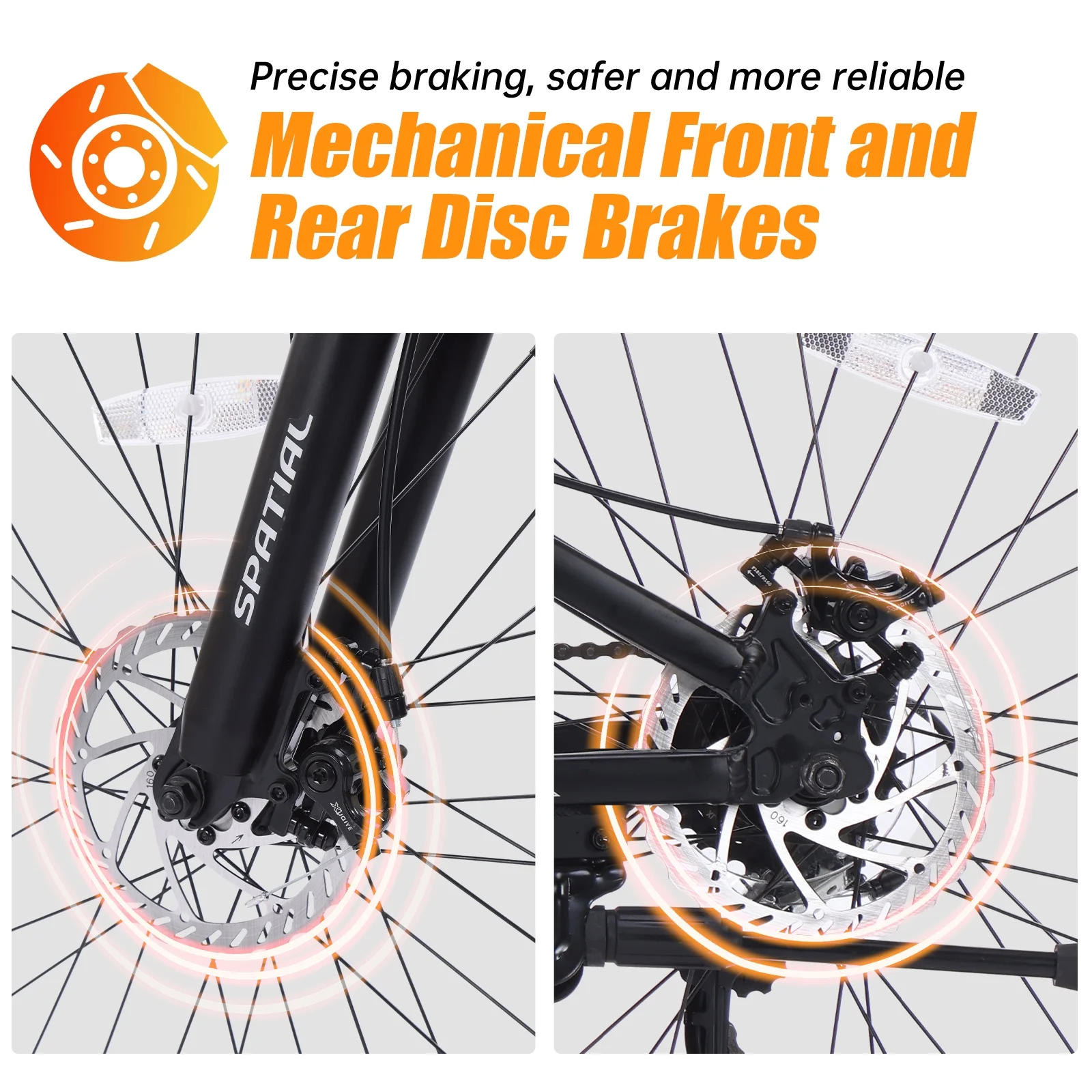- 【Reliable Dual Disc Brakes】 Experience strong, consistent stopping power in all weather conditions wet or dry. Feel safer and more in control on descents and during sudden stops.
