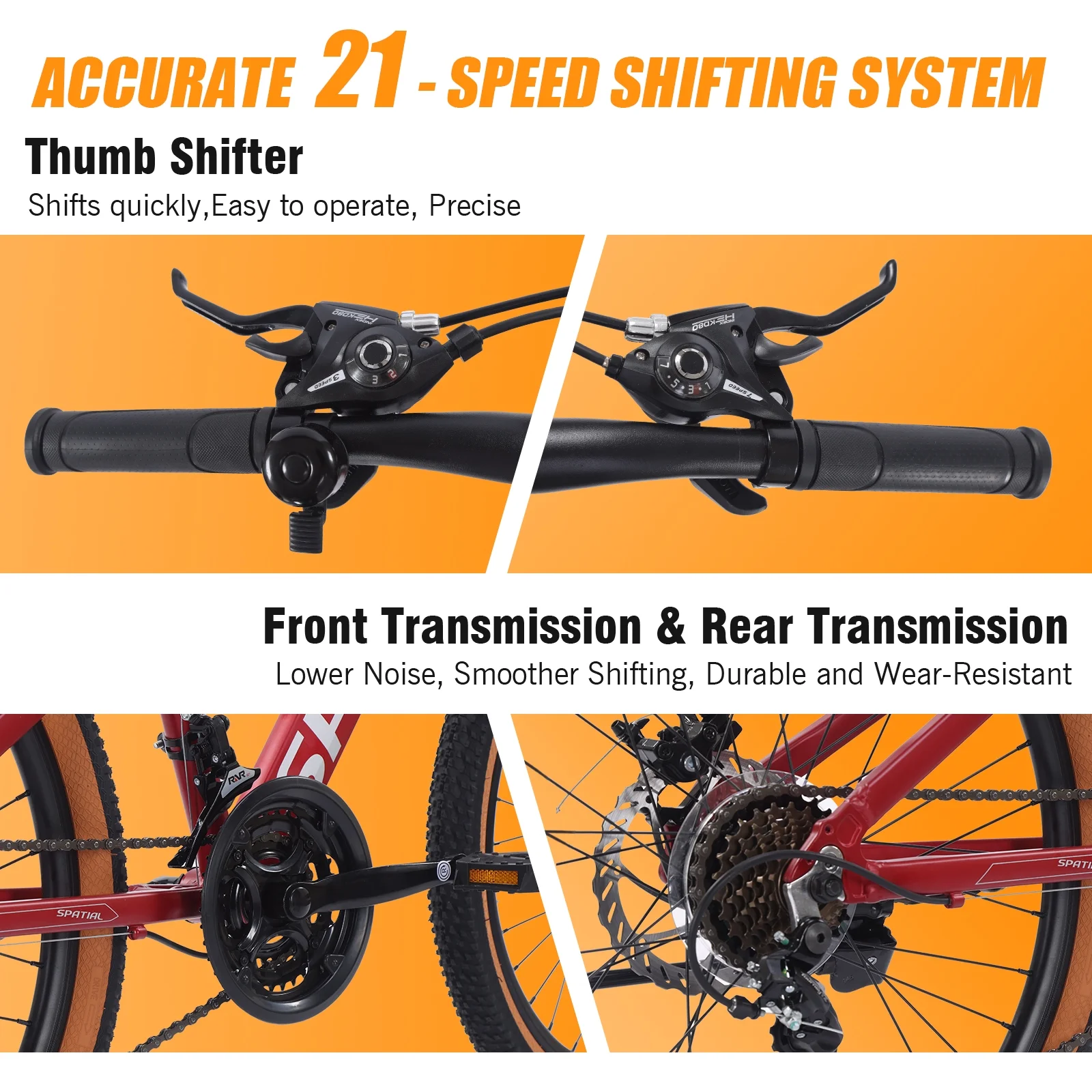 - 【Smooth Gear Shifting】The 26 inch mountain bike is equipped with a 21 speed gear that offers a wide range of speed options for a flexible riding experience.