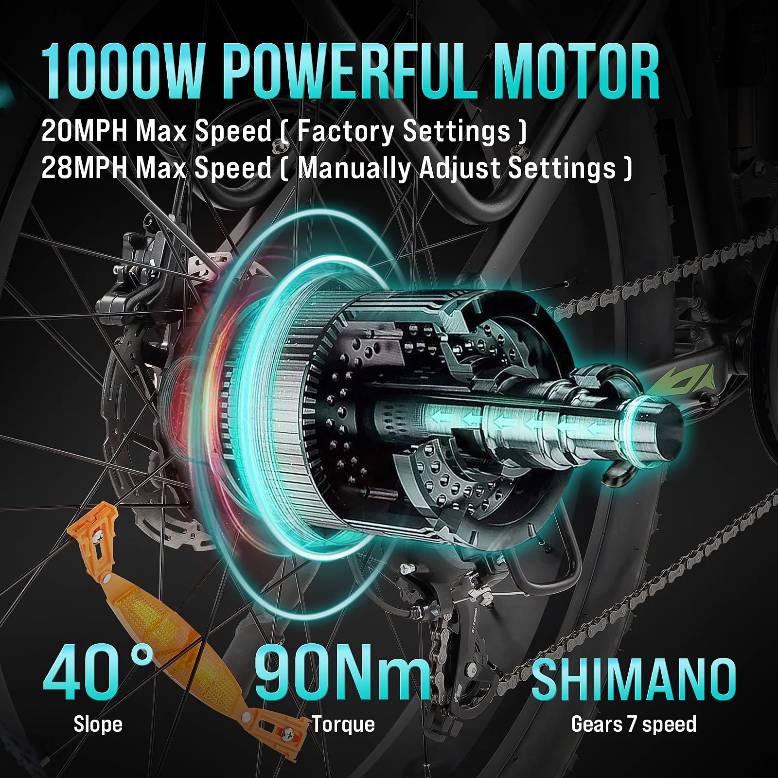 - Exceptional Speed and Performance--Experience thrilling speed and power with our electric bike, featuring a powerful 1000W (Peak 1500W) brushless motor that propels you up to 28MPH. The versatile 7-Speed Gear system allows you to conquer any terrain with ease.
