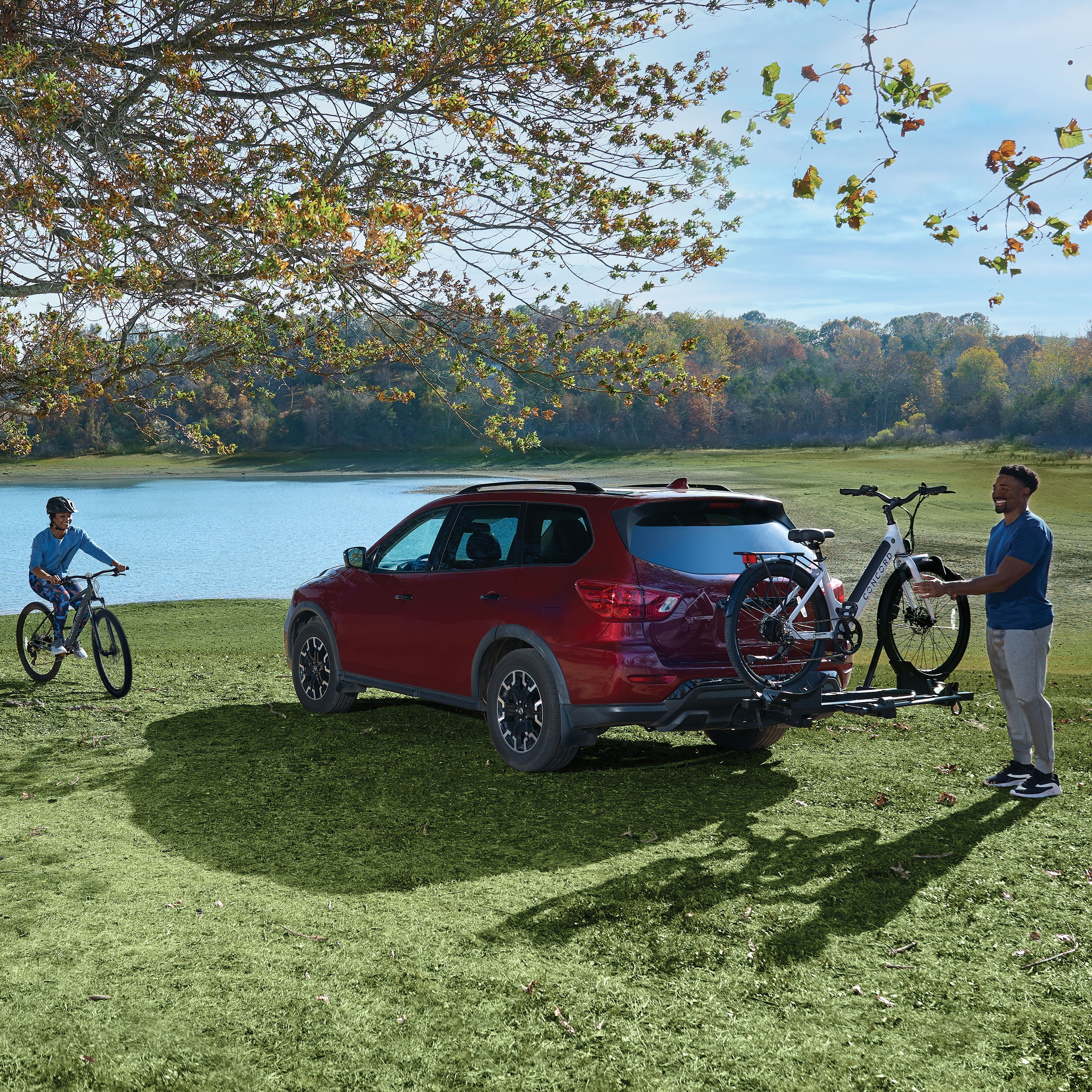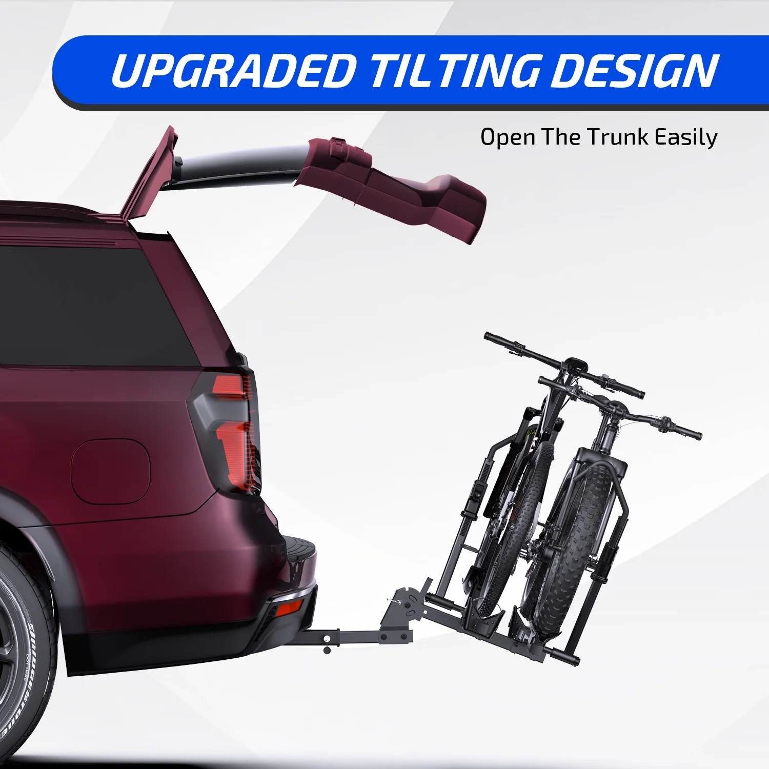 - Tilts down with bikes loaded to access cargo area