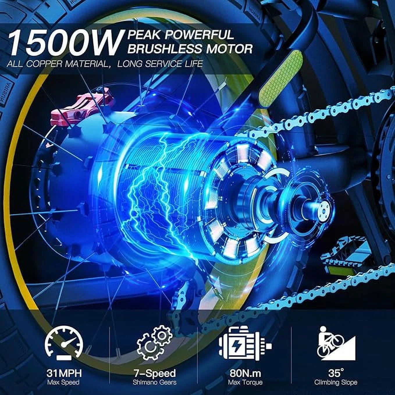- 【High Safety Performance】①20" x 4.0" Fat Tires (All Terrain, Directional Tread, High-Density) have high wear resistance and super grip ability, and the tread design reduces rolling friction and side slip, adds protection while cornering in various roads and weather conditions, ensuring smooth riding. ②Efficient Hydraulic Disc Braking system for both front and rear wheels, braking more timely, high-speed emergency braking can also stop in seconds, give you more control over your ride.