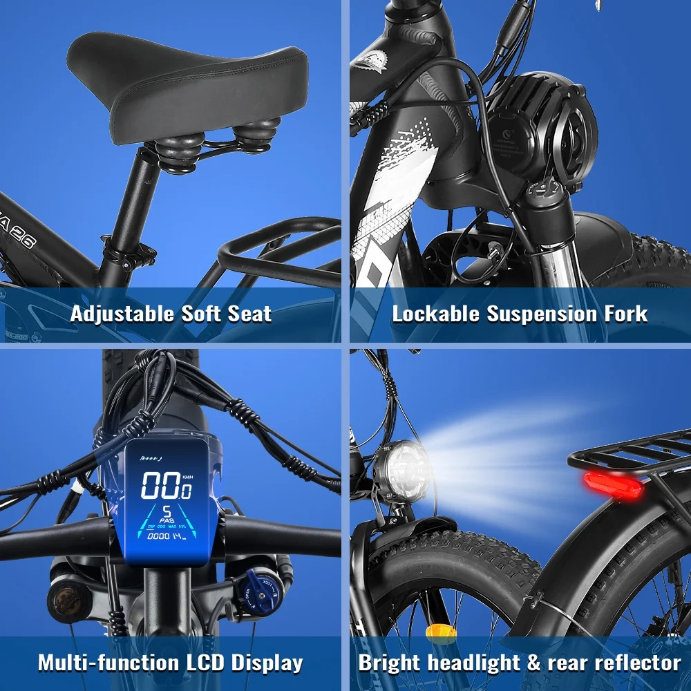 - 【3 Intelligent Riding Modes and 7-Speed Shift】This electric bikes for men provides three flexible riding modes: electric mode, pedal mode (5 speeds) and manual mode. The 7-speed shift system allows you to easily adapt to different riding conditions-whether you are shuttling in the city or galloping on mountain trails, you can enjoy the fun of riding.