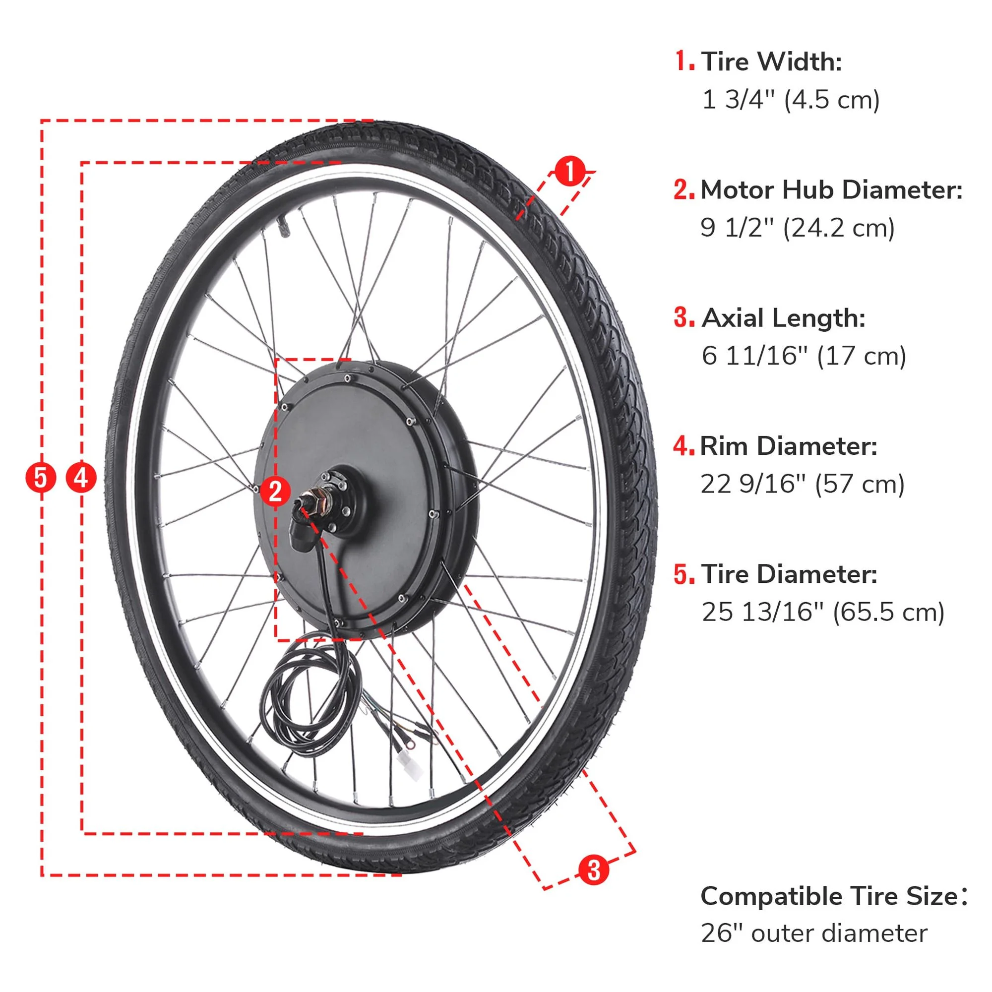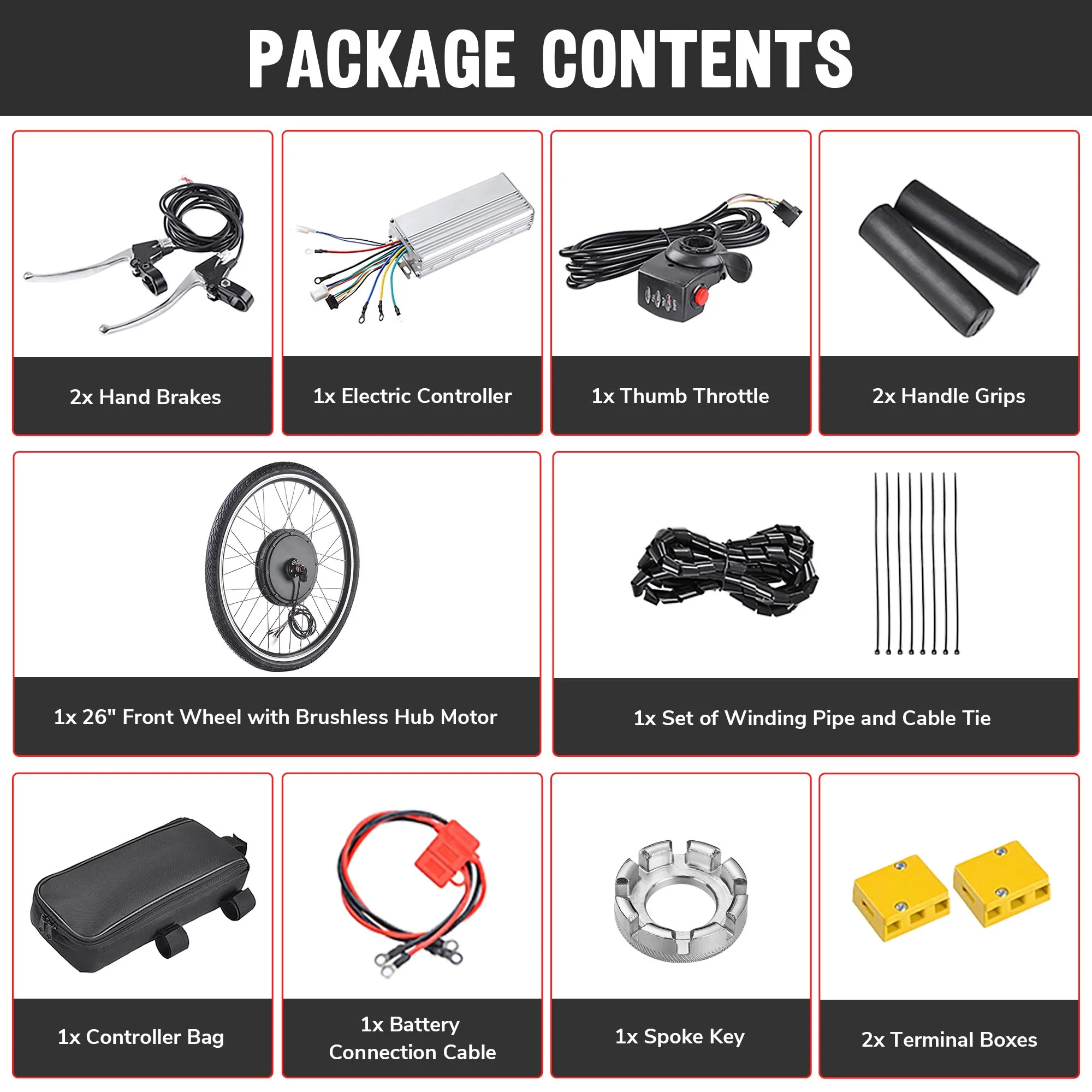 - 1x 26" Front Wheel with Brushless Hub Motor
