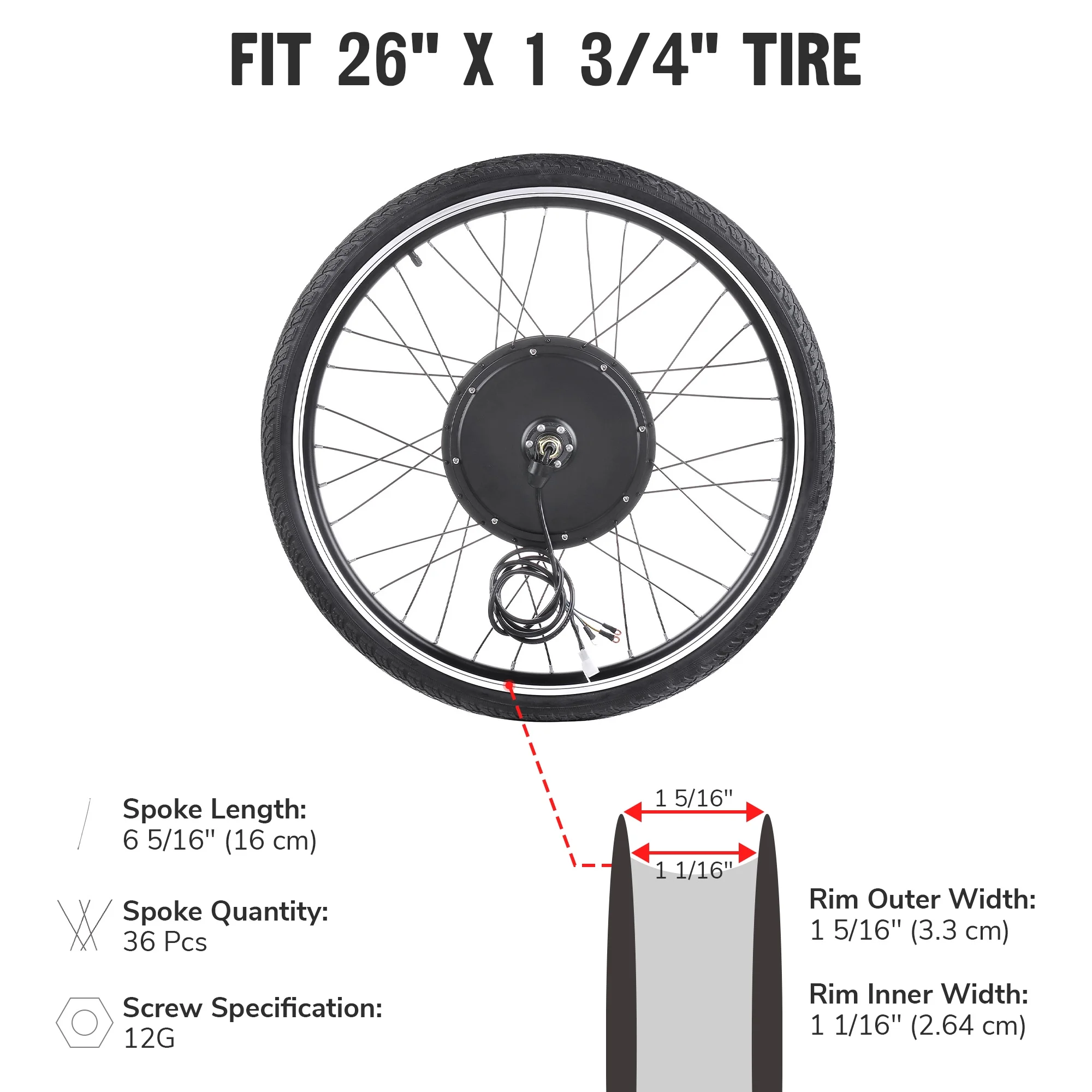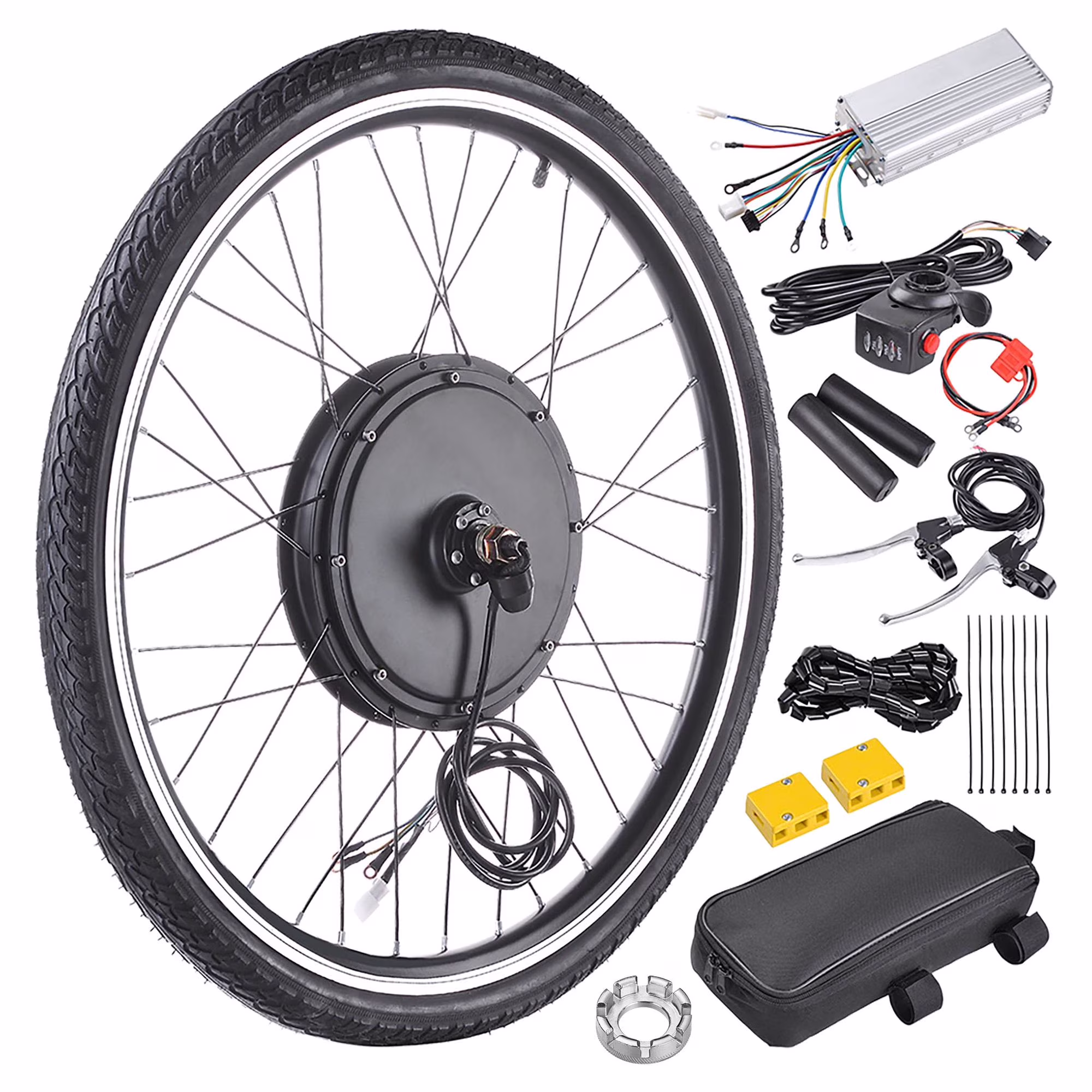 1000W 26" Front Wheel Electric Bicycle Conversion Kit 48V E-Bike Hub Motor Set: