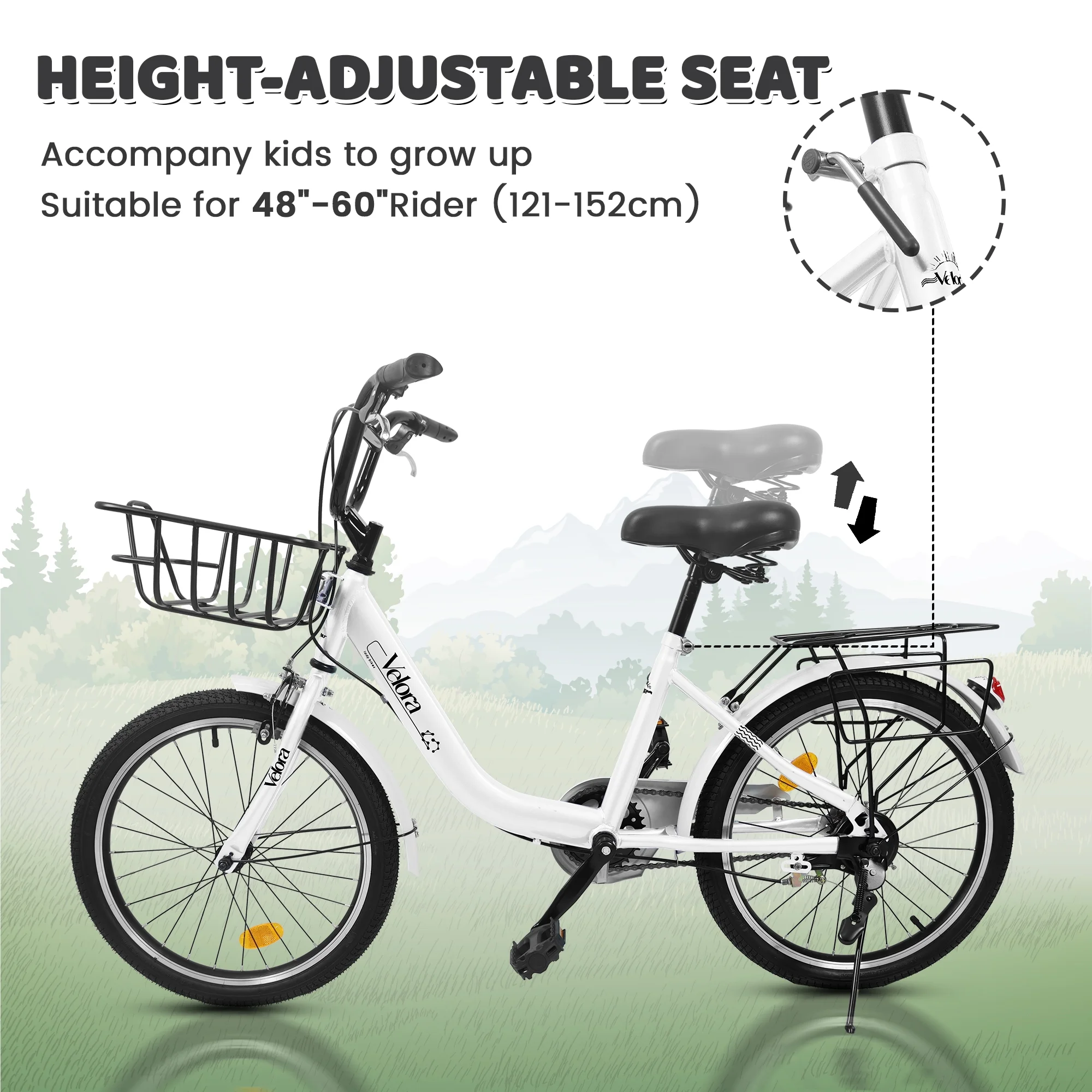 - [Smooth & Low-Maintenance Riding] The single-speed (1-speed) drivetrain simplifies riding for beginners, eliminating the need for gear shifting while providing a smooth, hassle-free experience. Paired with aluminum alloy rims and 20x2.125 clincher tires, this bike offers reliable traction and stability on pavement, trails, or sidewalks.