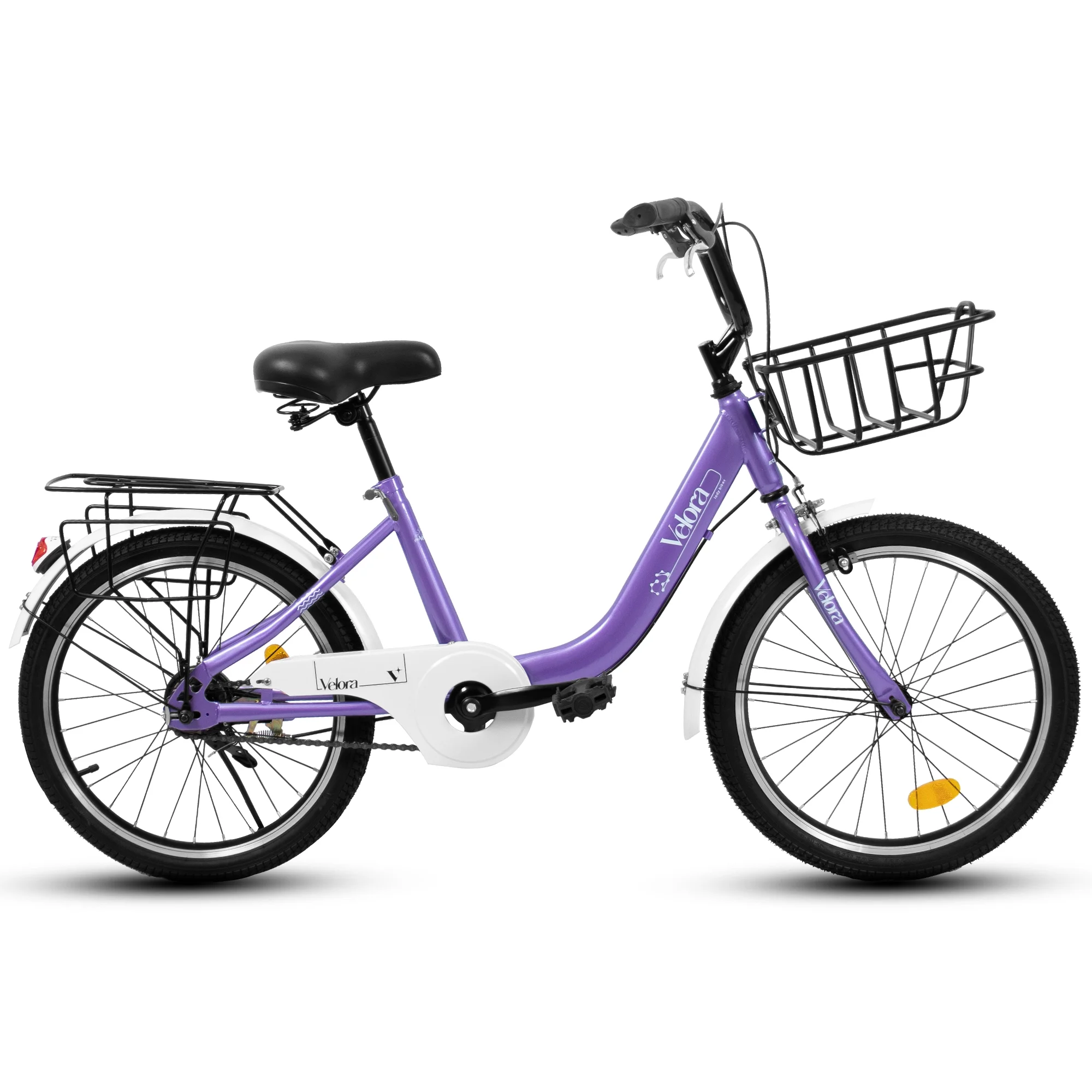 20 in Kids Bike for Boys Girls, 1 Speed Children Bicycle with Basket, Rear Seat, Chain Guard, Coaster Brake and V - Brake, Steel Frame Kids Bike for Ages 6 - 12 Years Old Birthday Gift, Purple