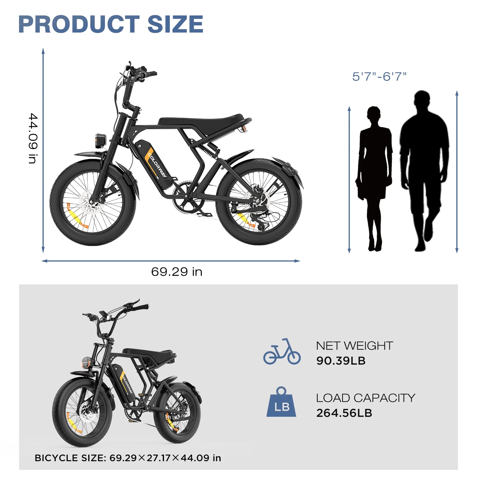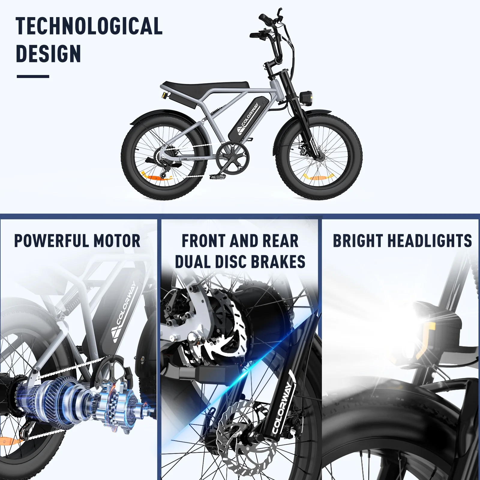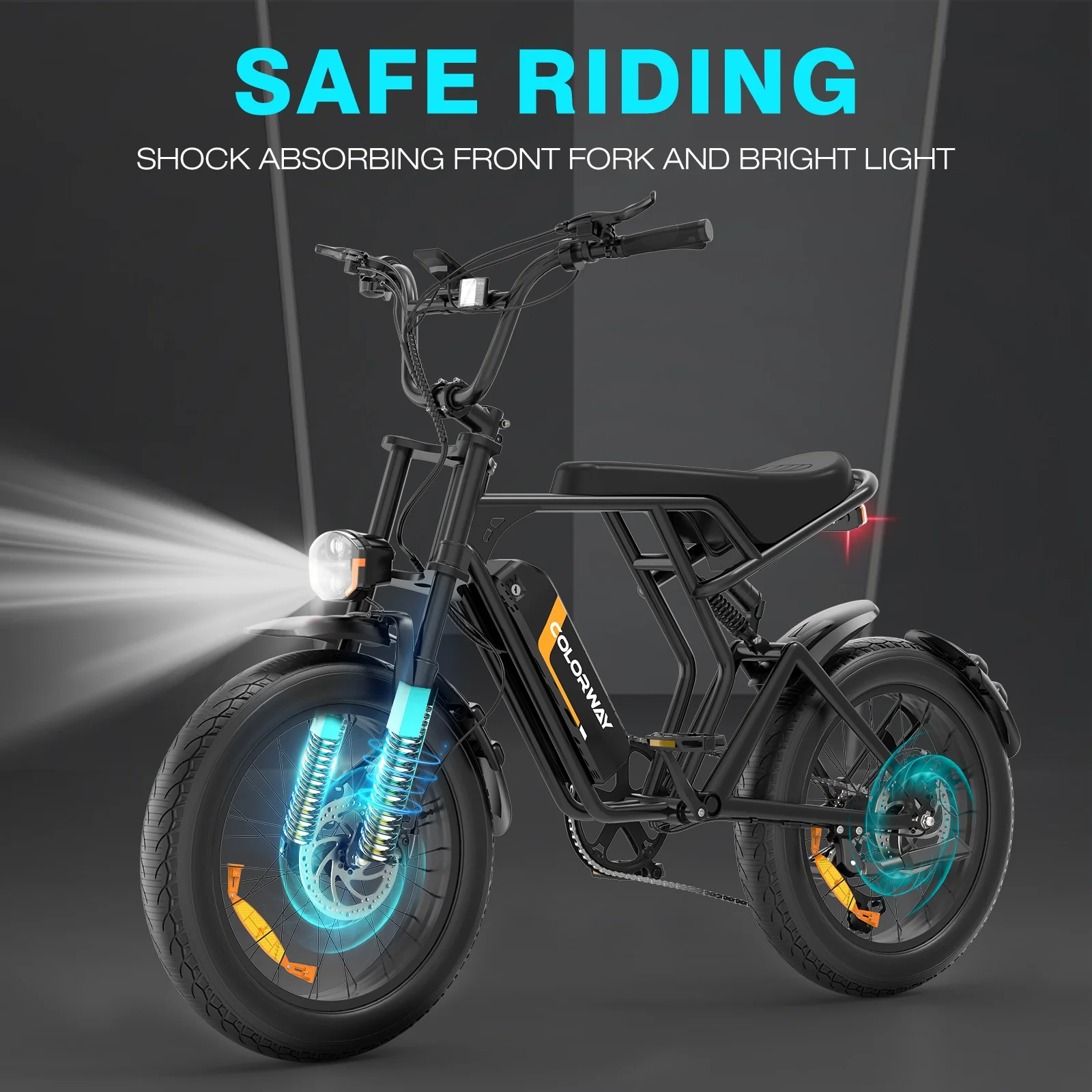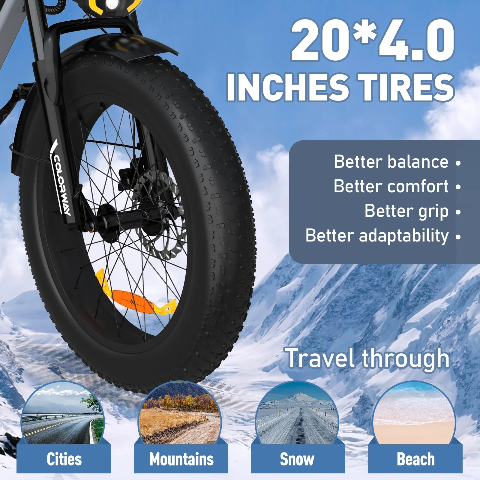 - 【750W E Bike】This electric bike adopts750W 48V rear motor, which can provide strong power and the top speed can reach 19.9MPH. COLORWAY electric bike cross to power you through any terrain (dirt, street, mountain, beach, snow).
