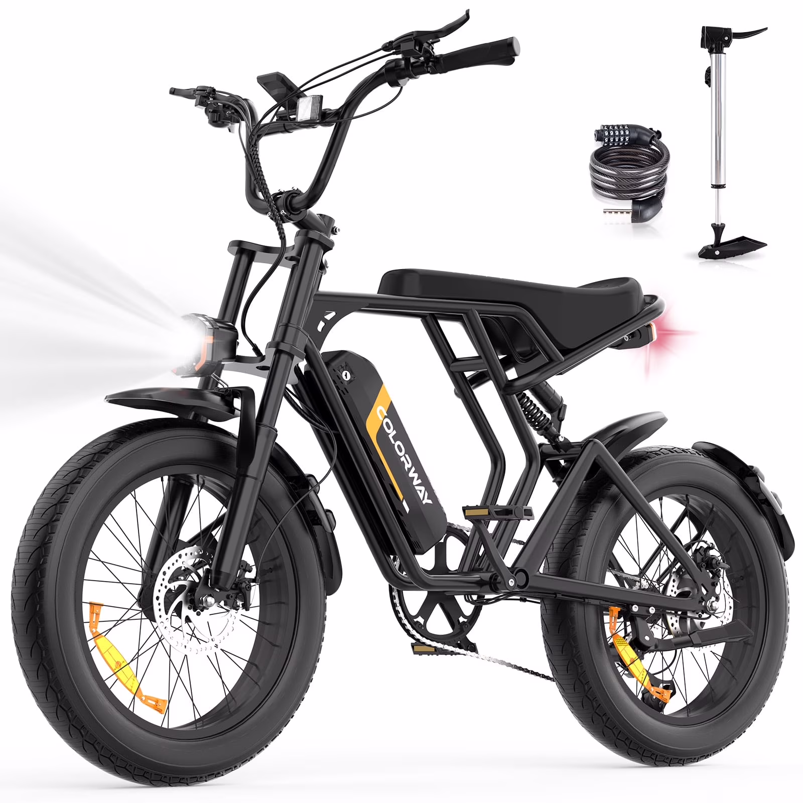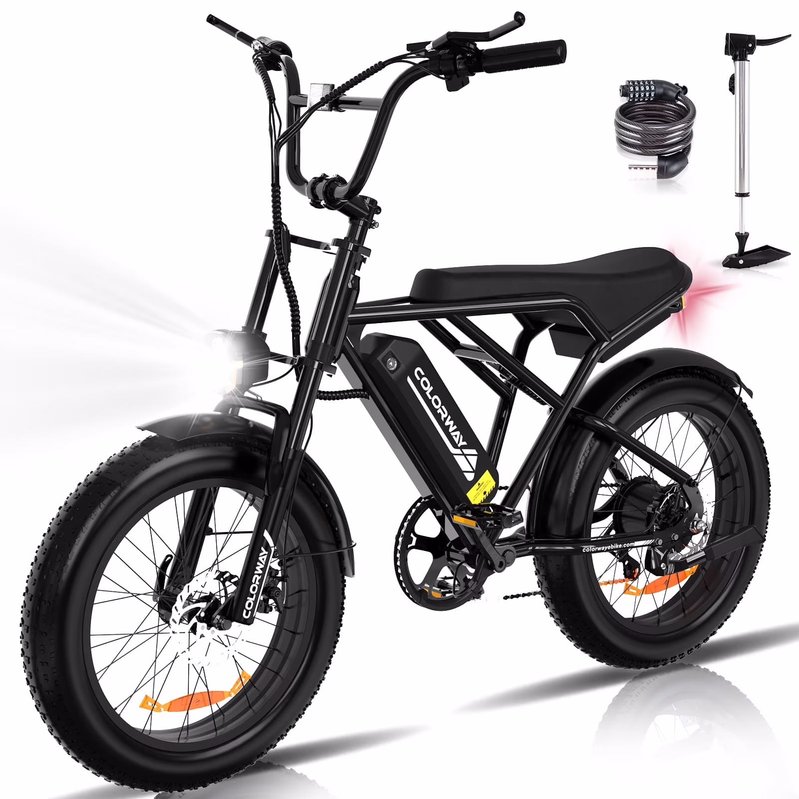 - 【Good Choice for Adventure and Tourism】This electric bicycle adopts a steel frame body, which has the characteristics of low density and high strength.. And it has a bright front light and a rear warning tail light, which can escort you safely when you go home at night.